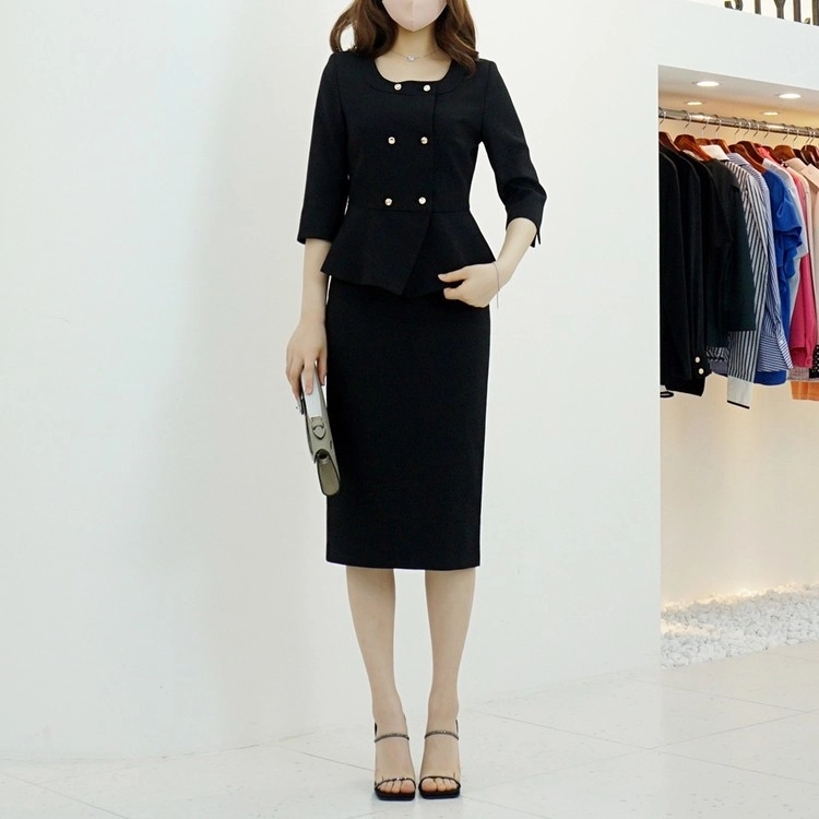 스퀘어넥 7부 더블자켓 스커트 여름 정장세트