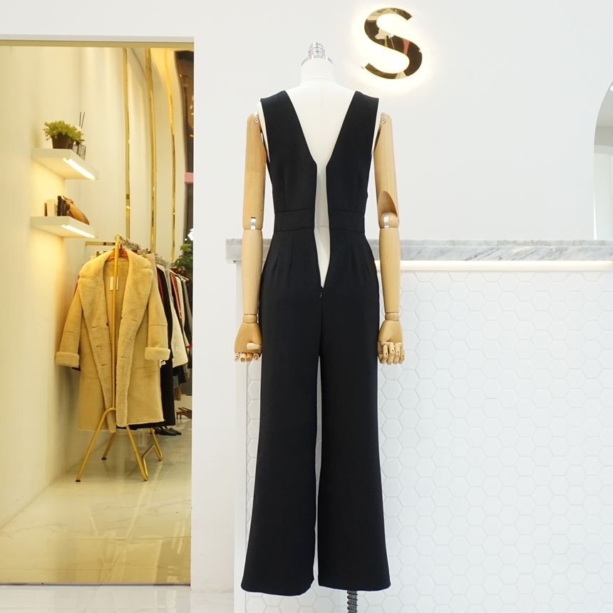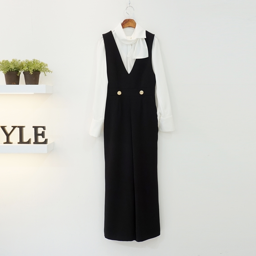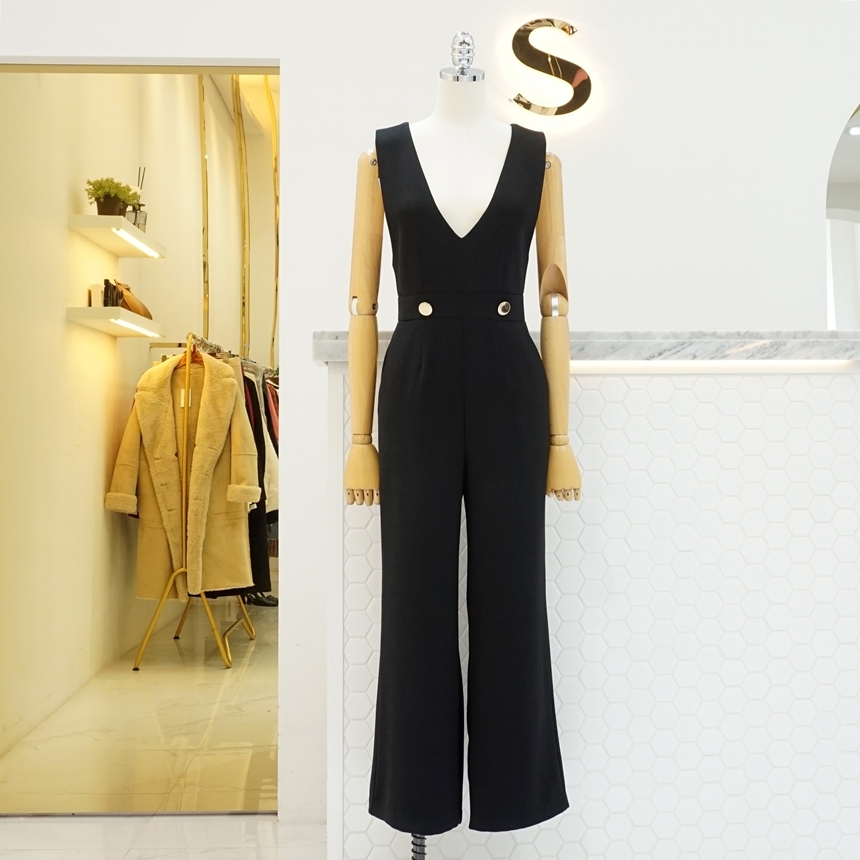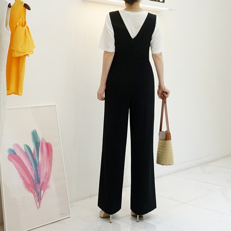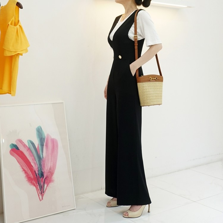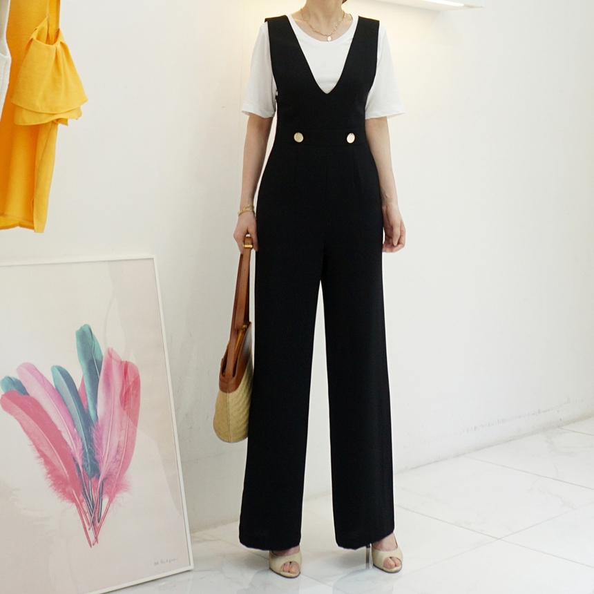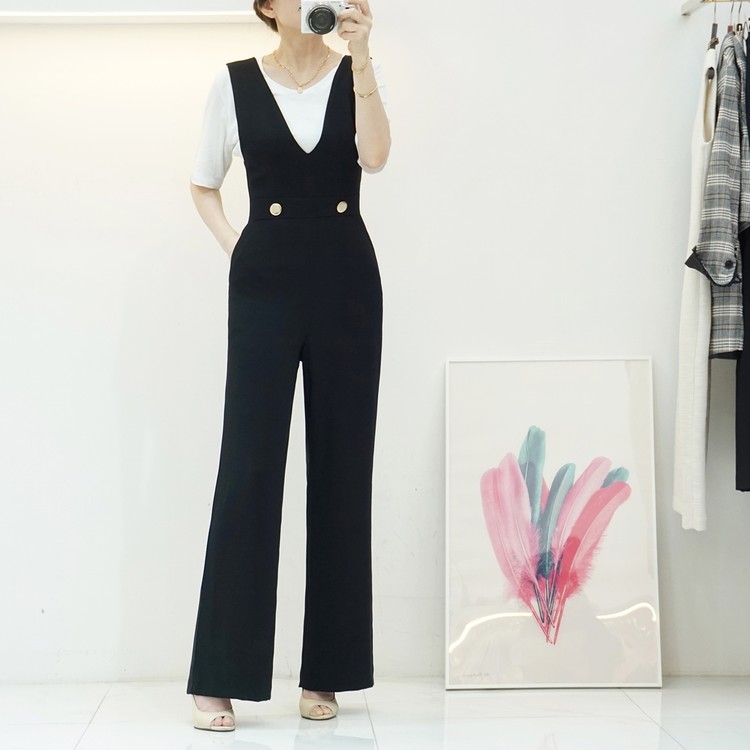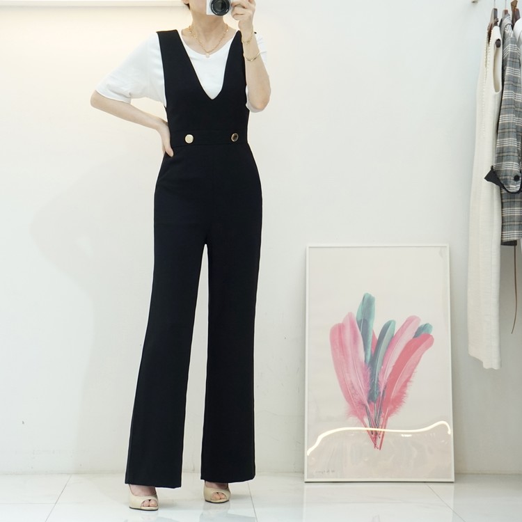 여름 브이넥 골드버튼 멜빵 점프수트 정장 팬츠