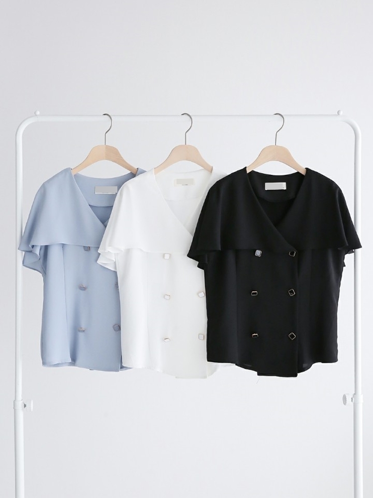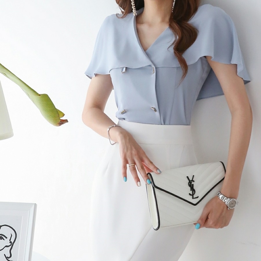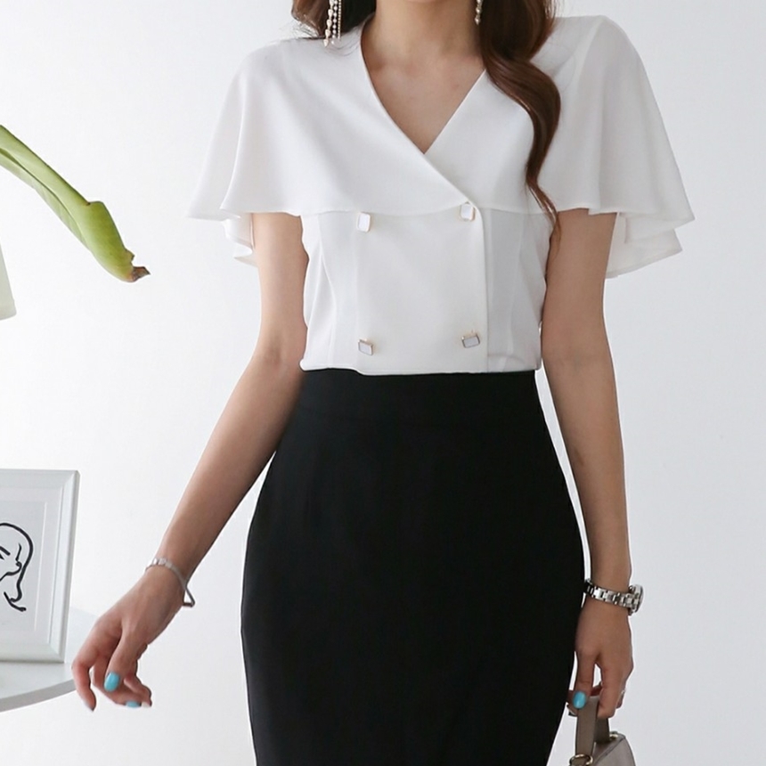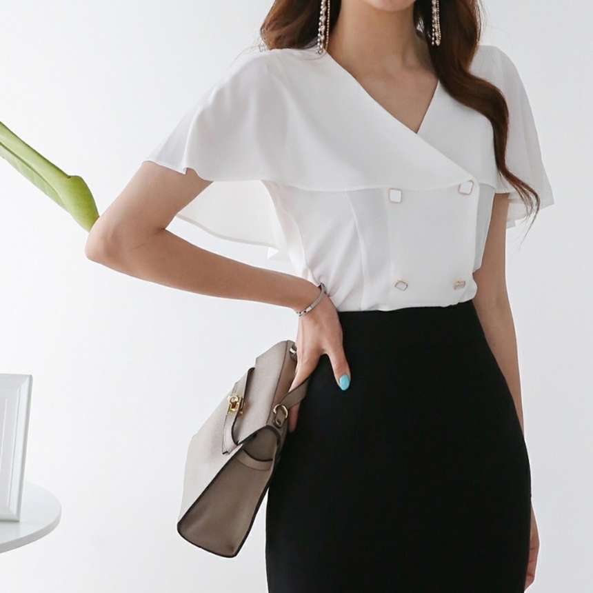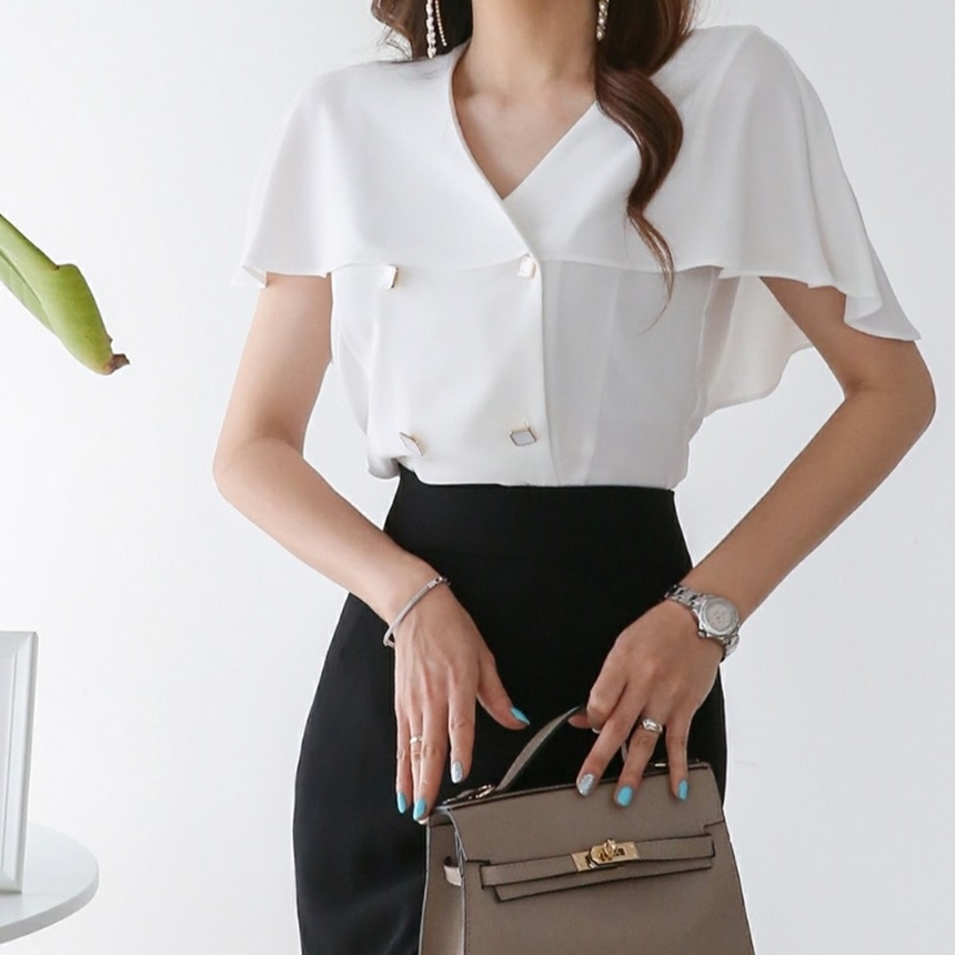 여름 케이프 브이넥 쉬폰 블라우스