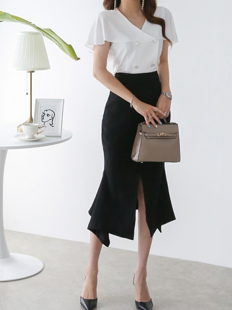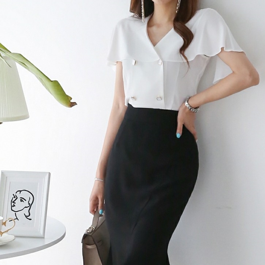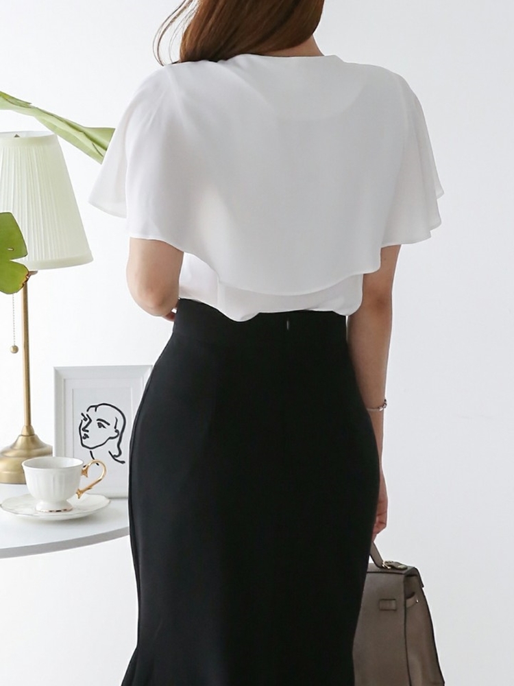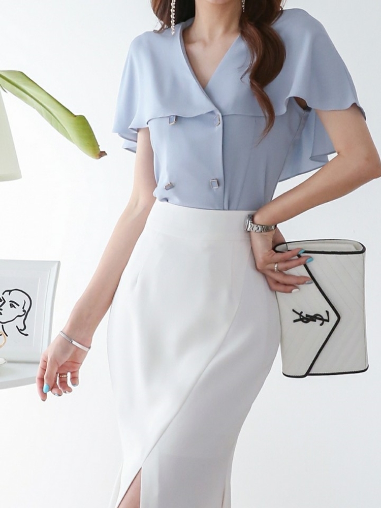 여름 케이프 브이넥 쉬폰 블라우스