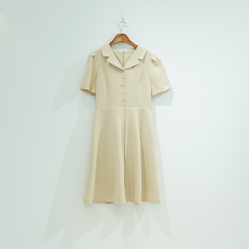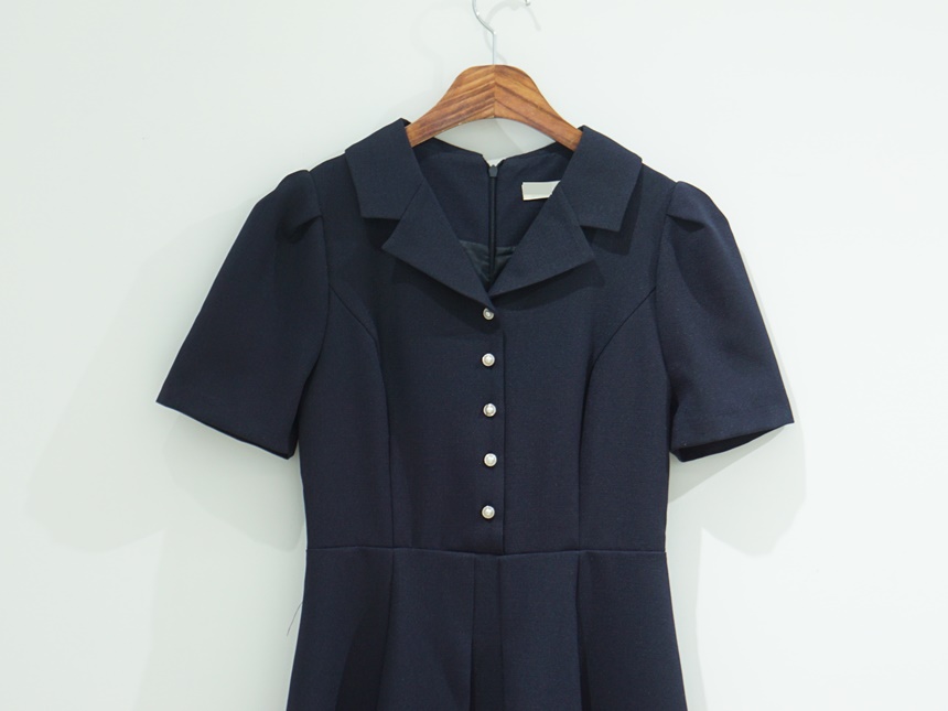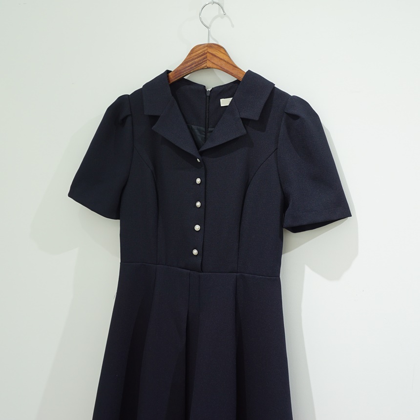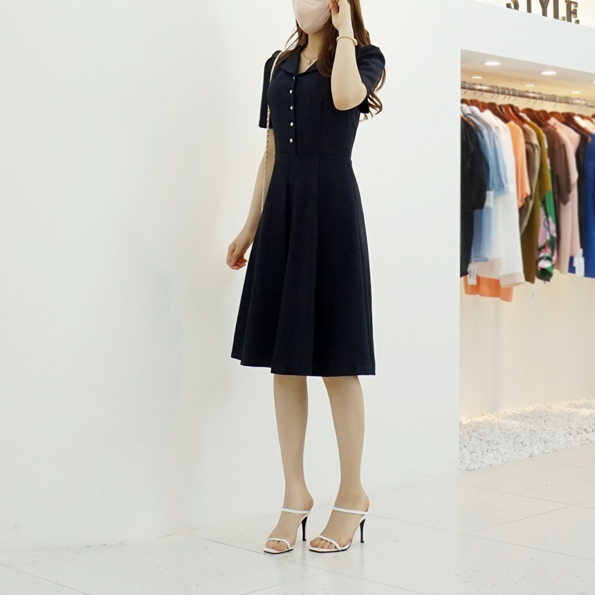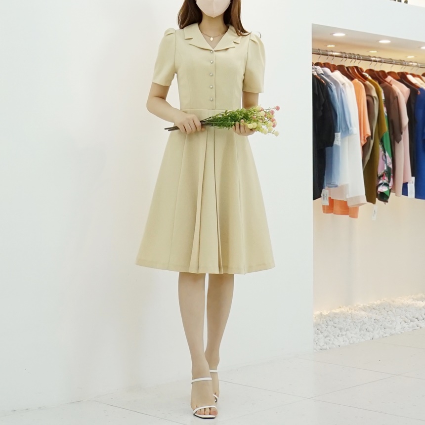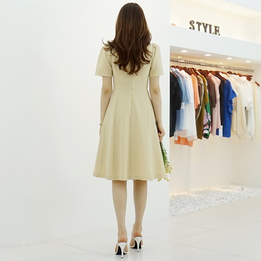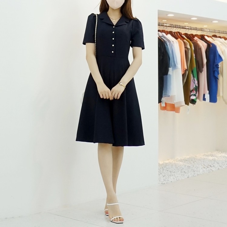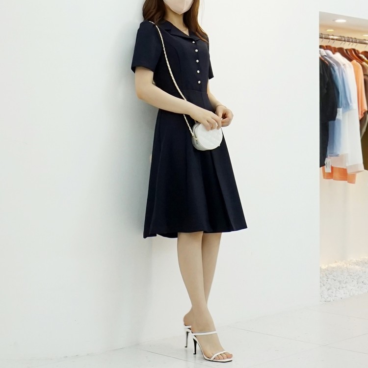 A라인 오픈 카라 플레어 반팔 정장원피스