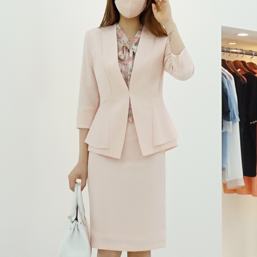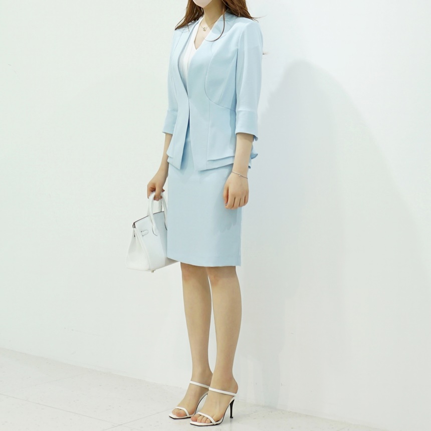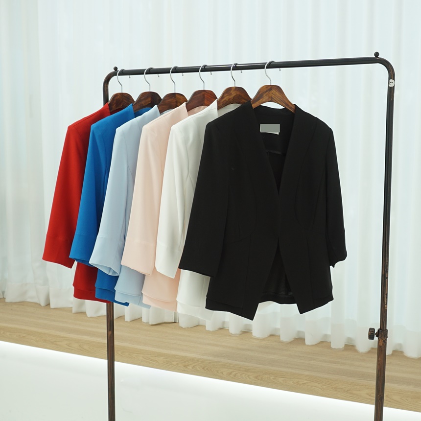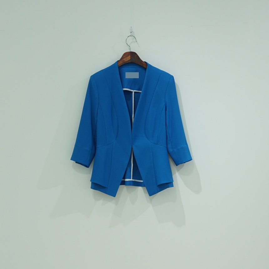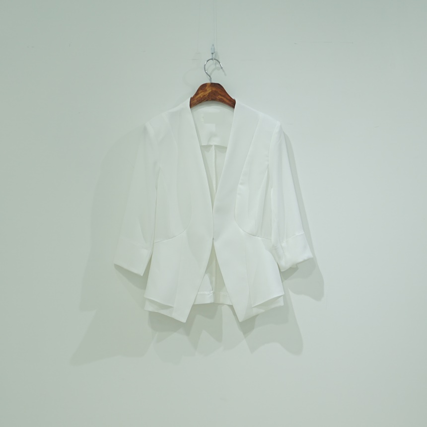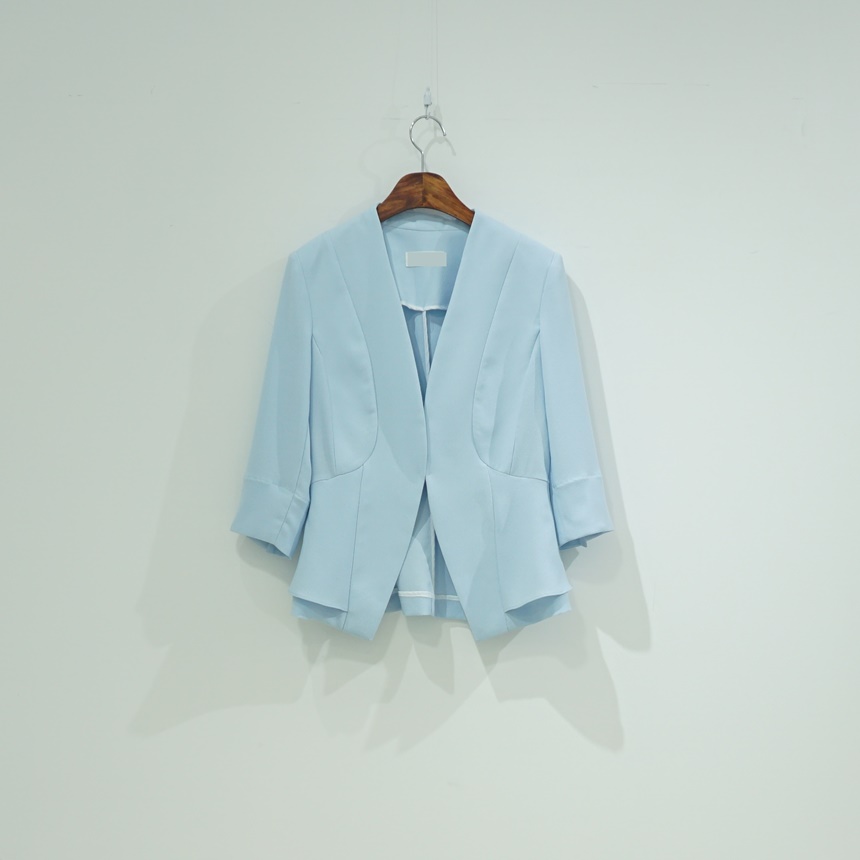여름 정장자켓 7부 노카라 페플럼 스판 재킷