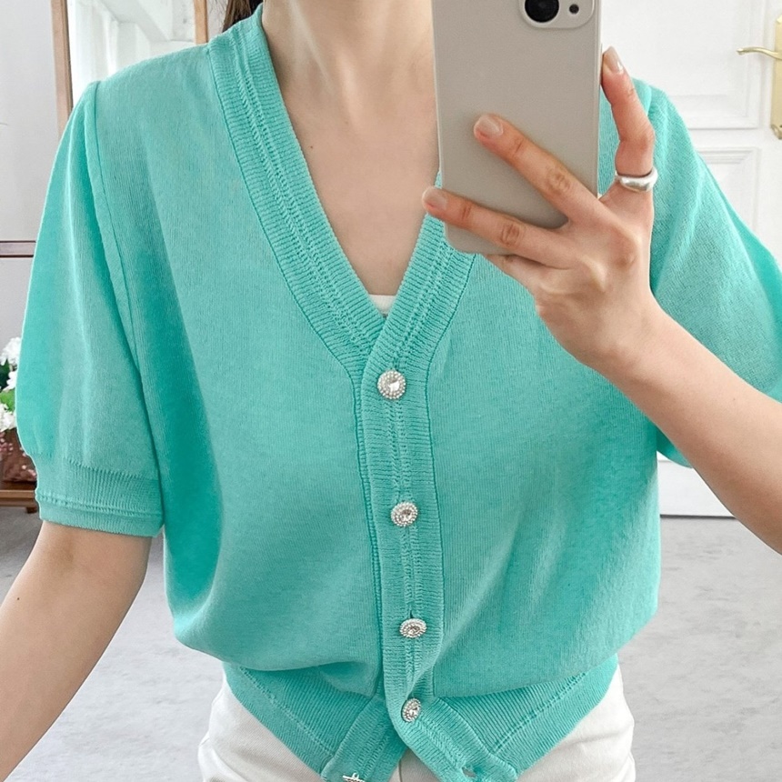 브이넥 니트 데일리 여름 아우터