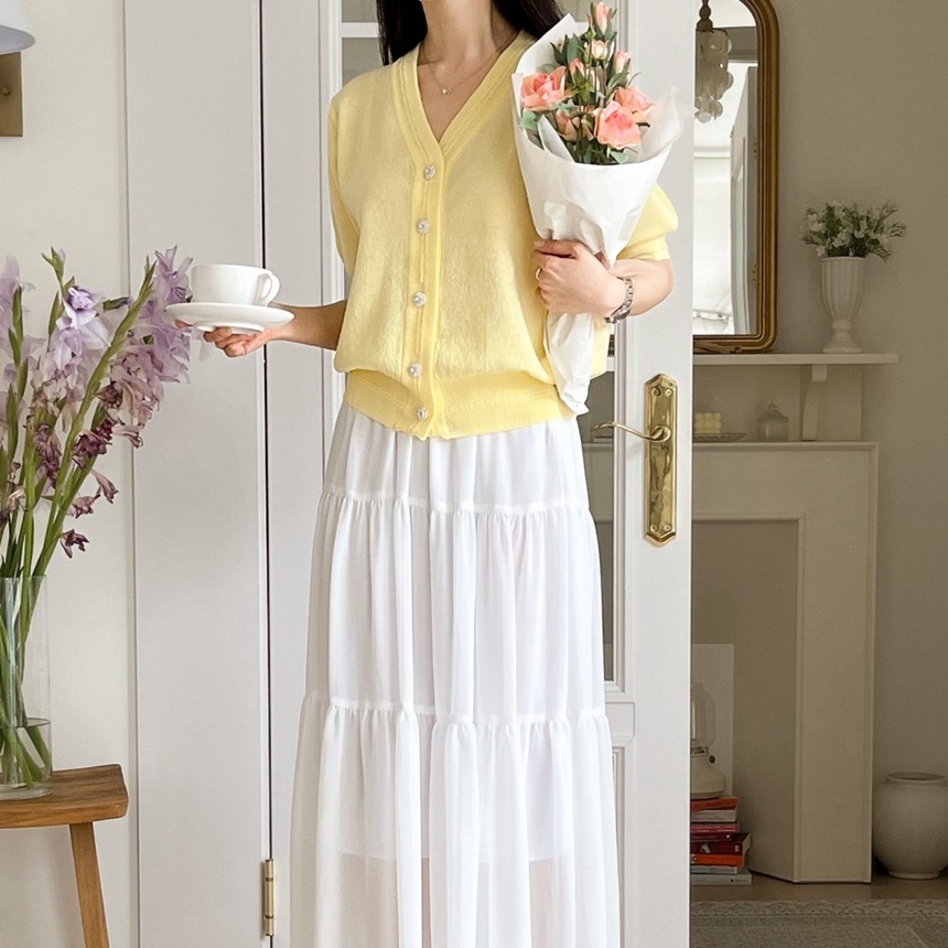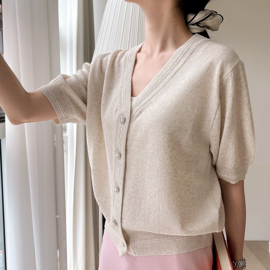 여성 린넨 반팔 가디건