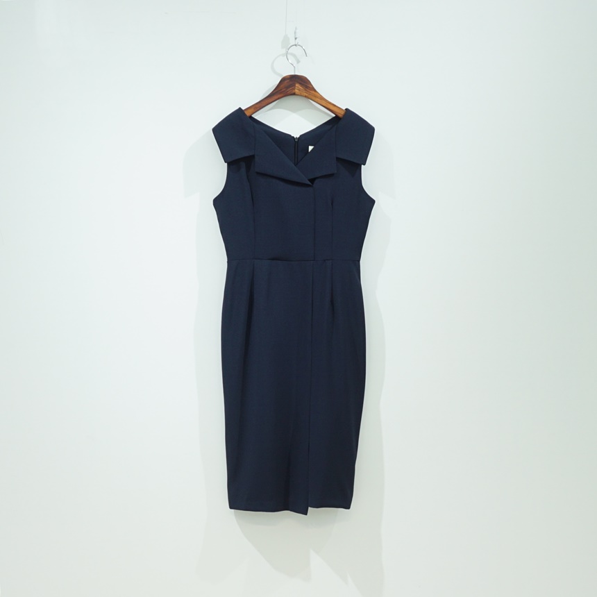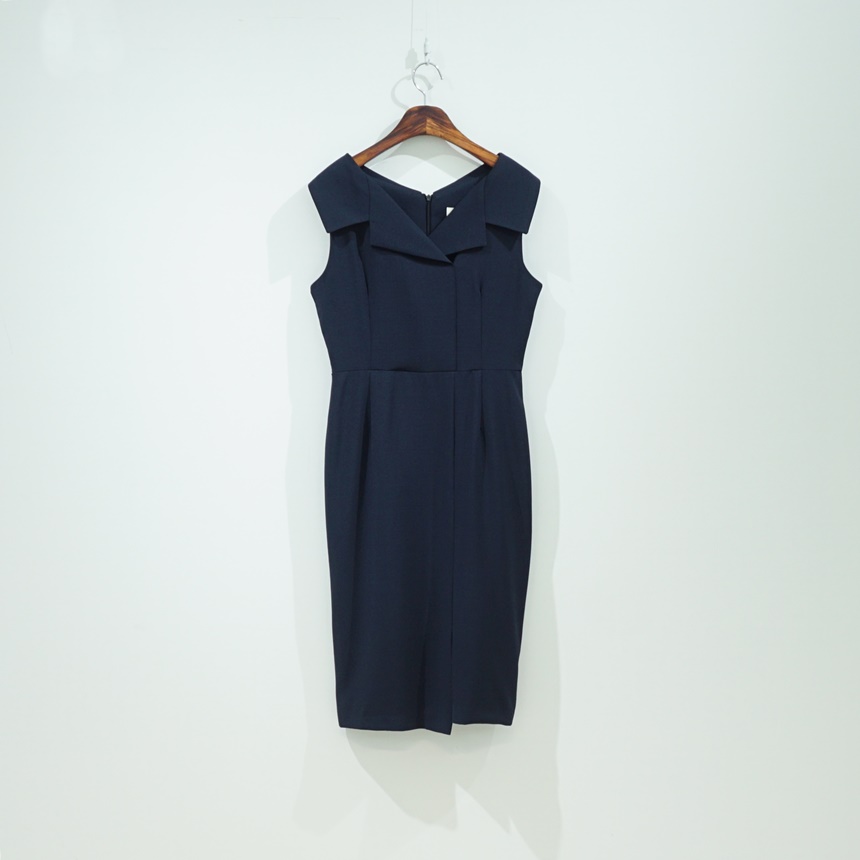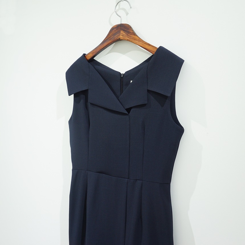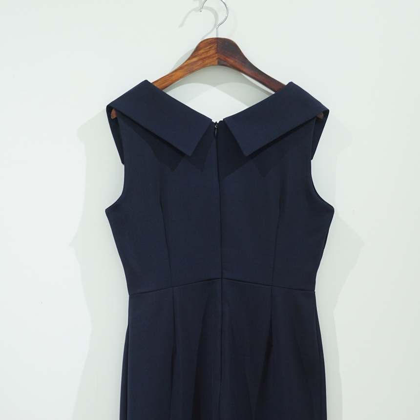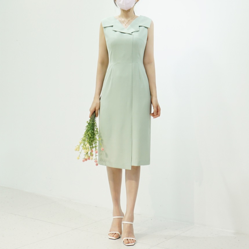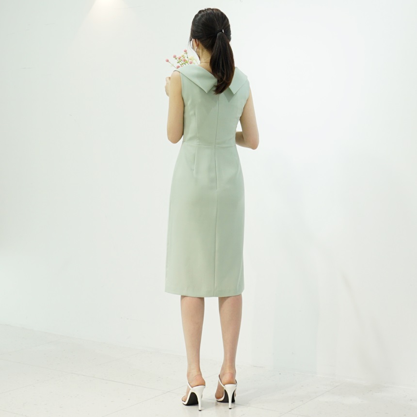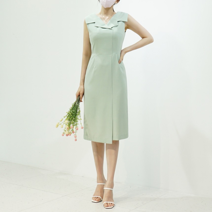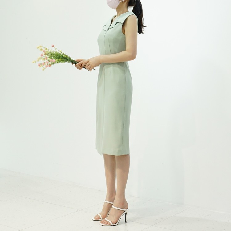 오픈 카라 H라인 민소매 정장 미디 원피스