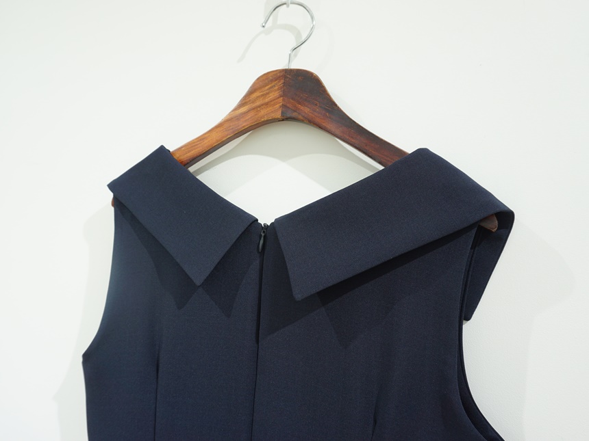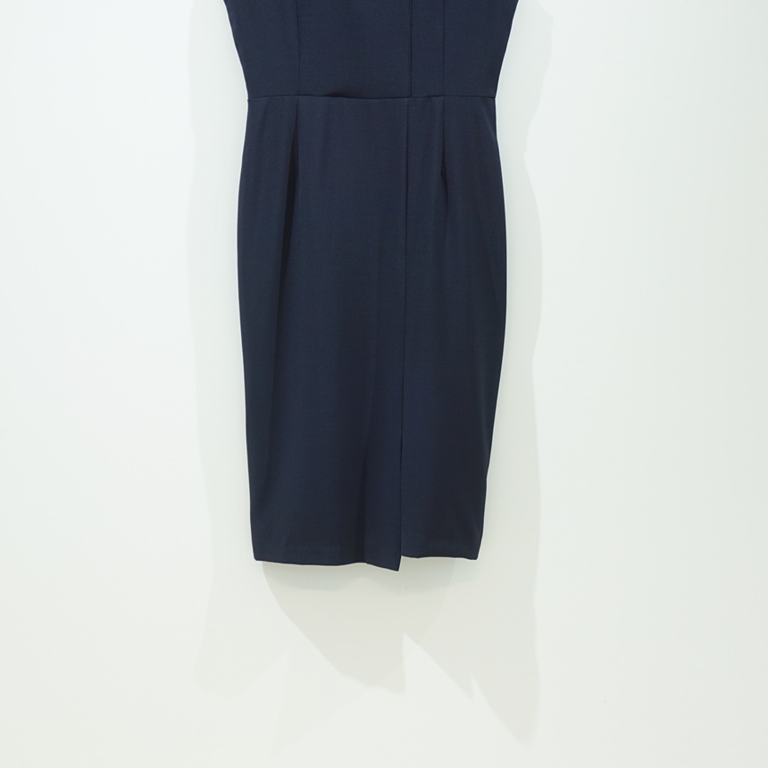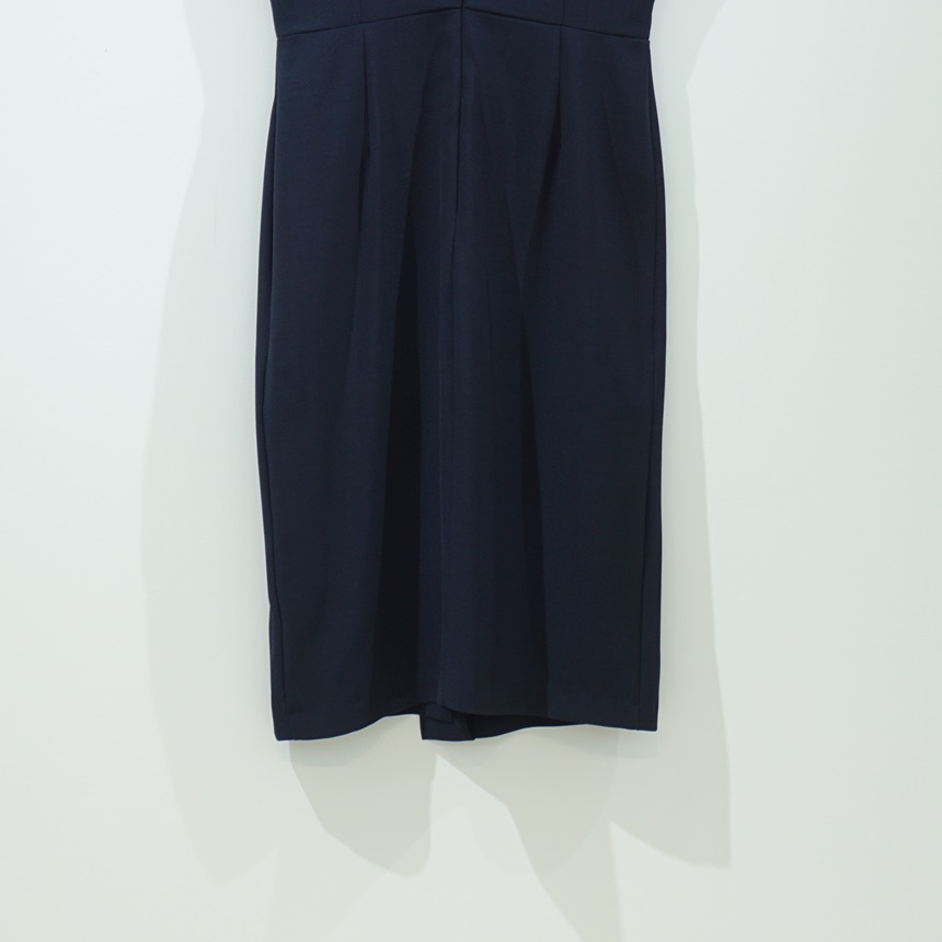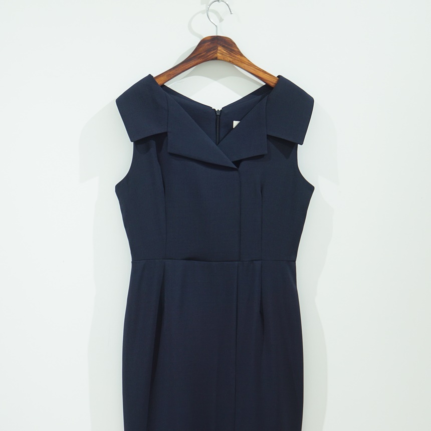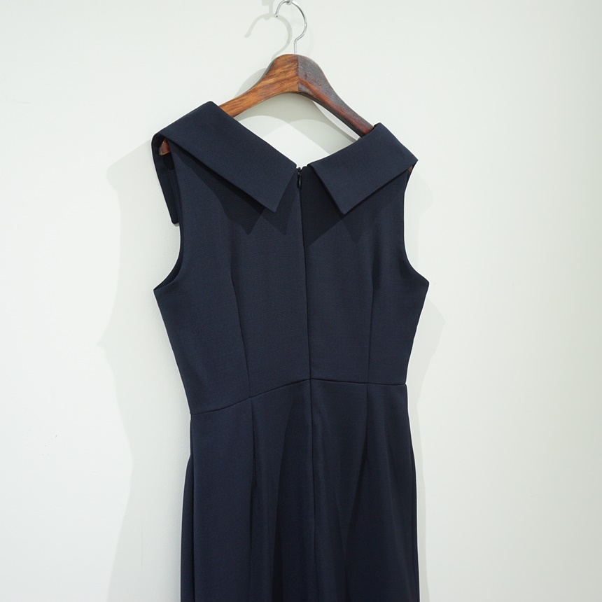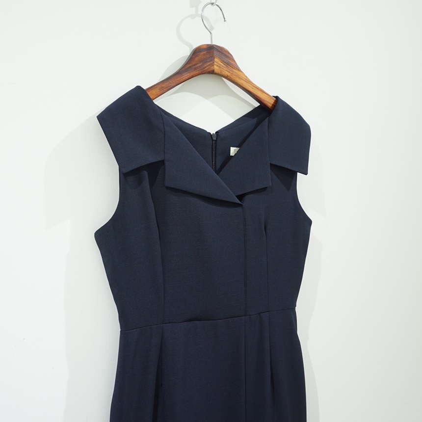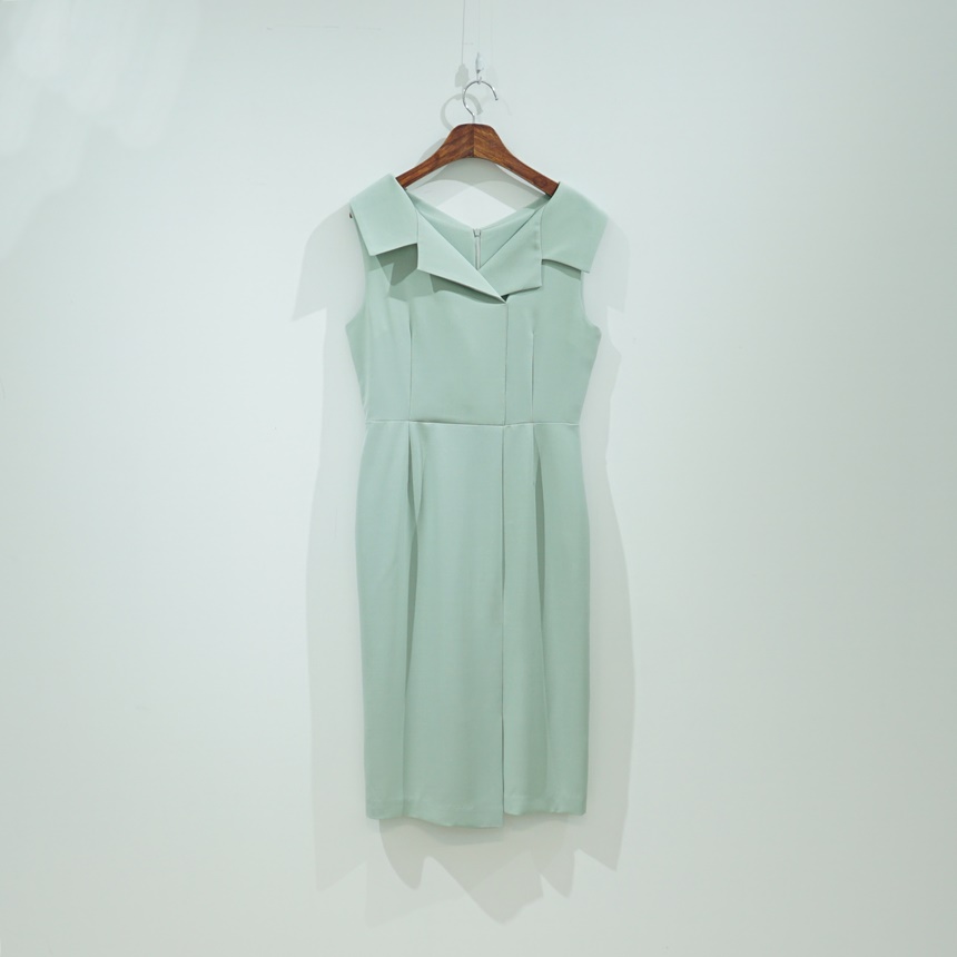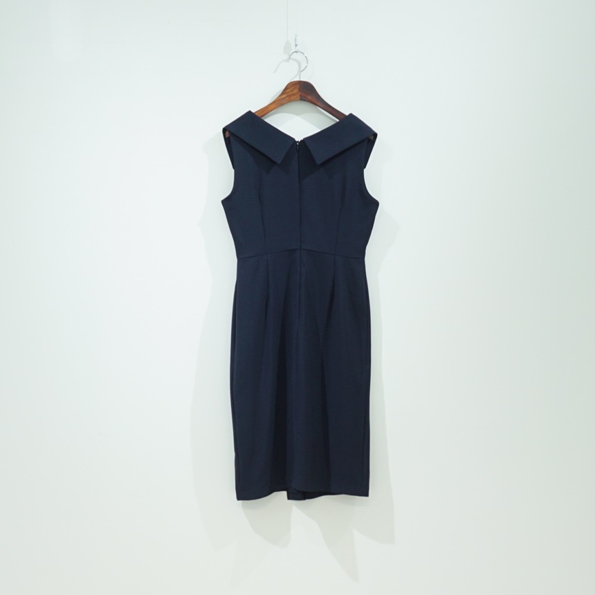 오픈 카라 H라인 민소매 정장 미디 원피스