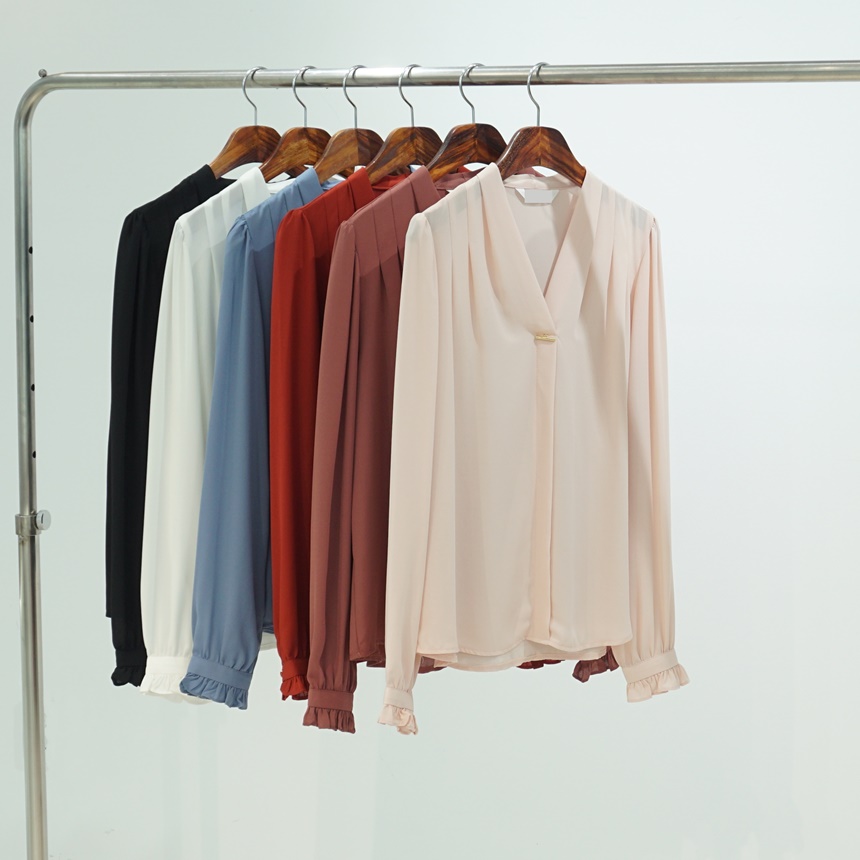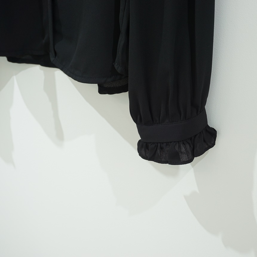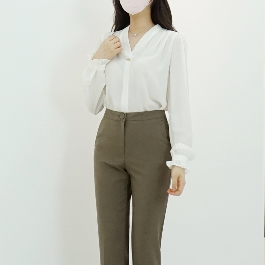 숄더 라인을 따라 더해진 핀턱 디테일로