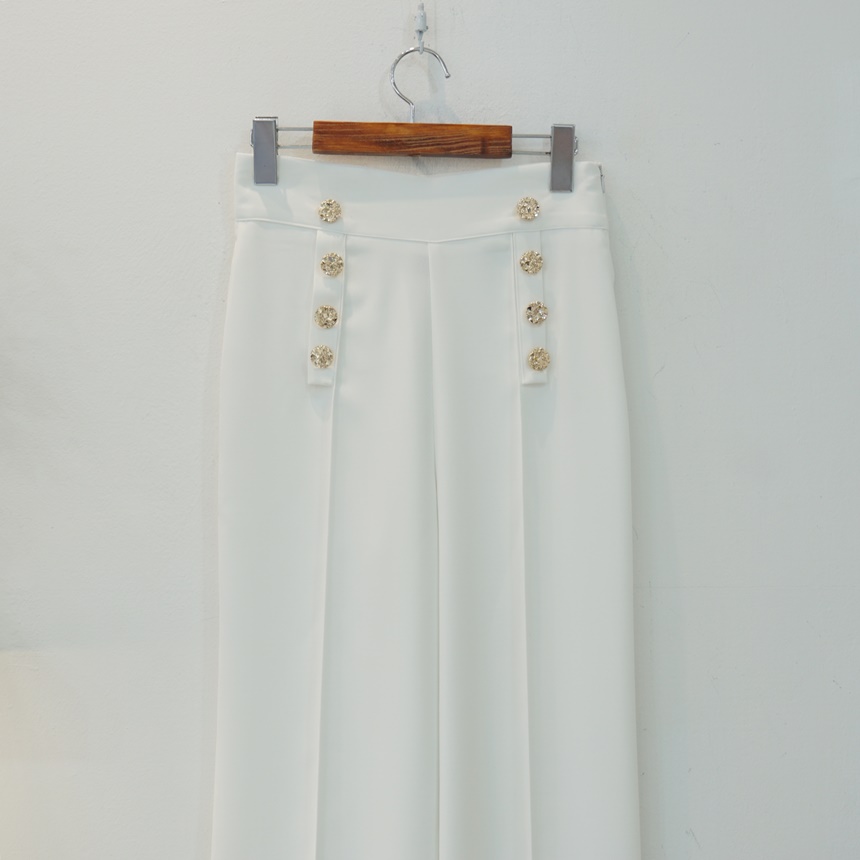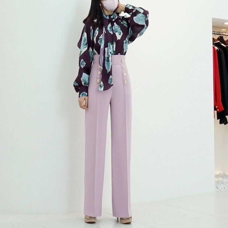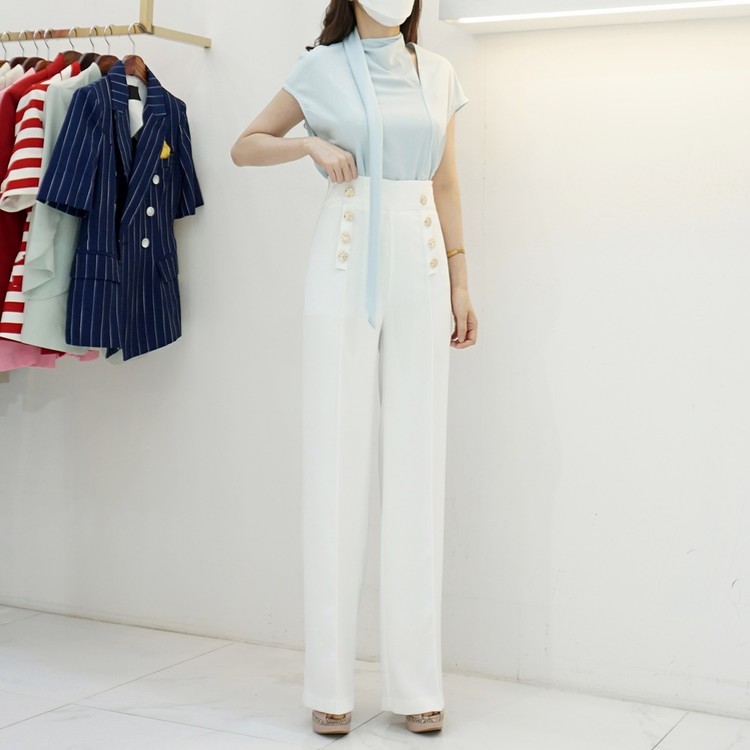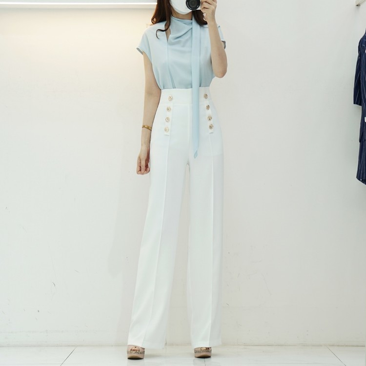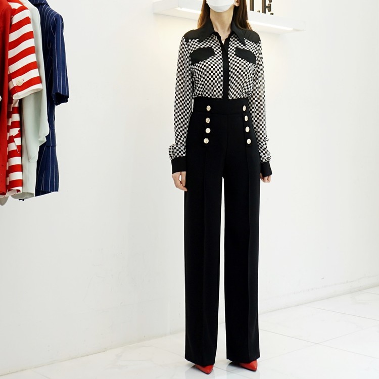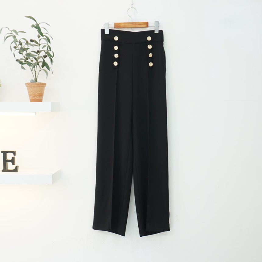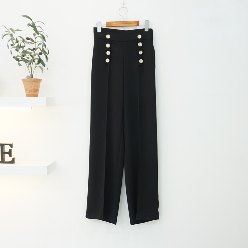 하이웨스트 금장 더블 버튼 일자핏 롱 슬랙스 팬츠