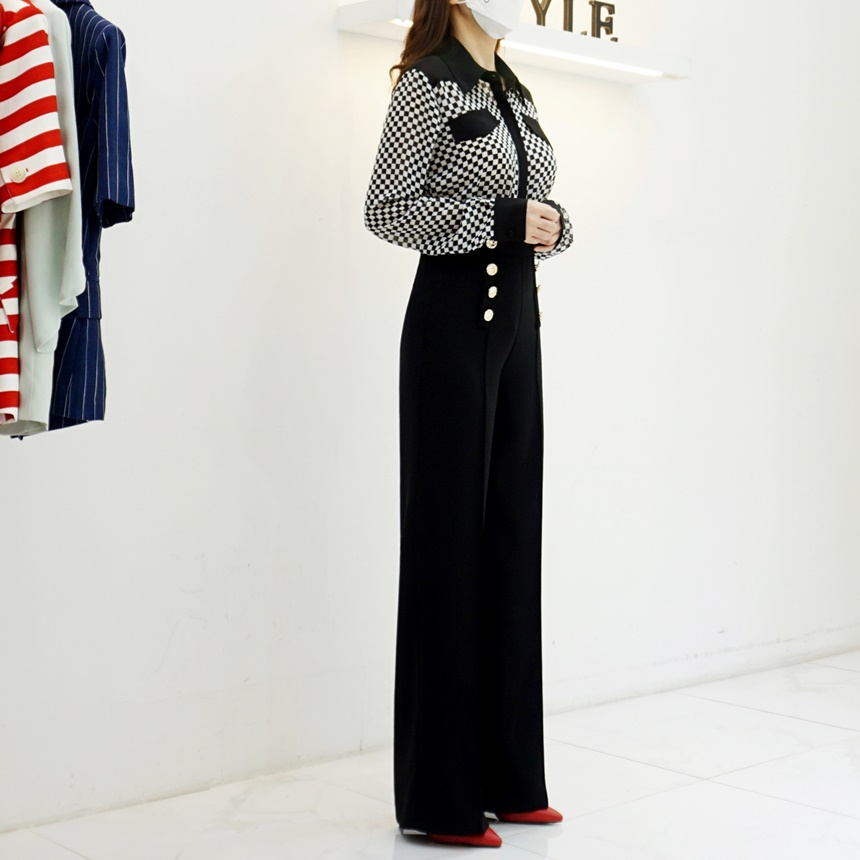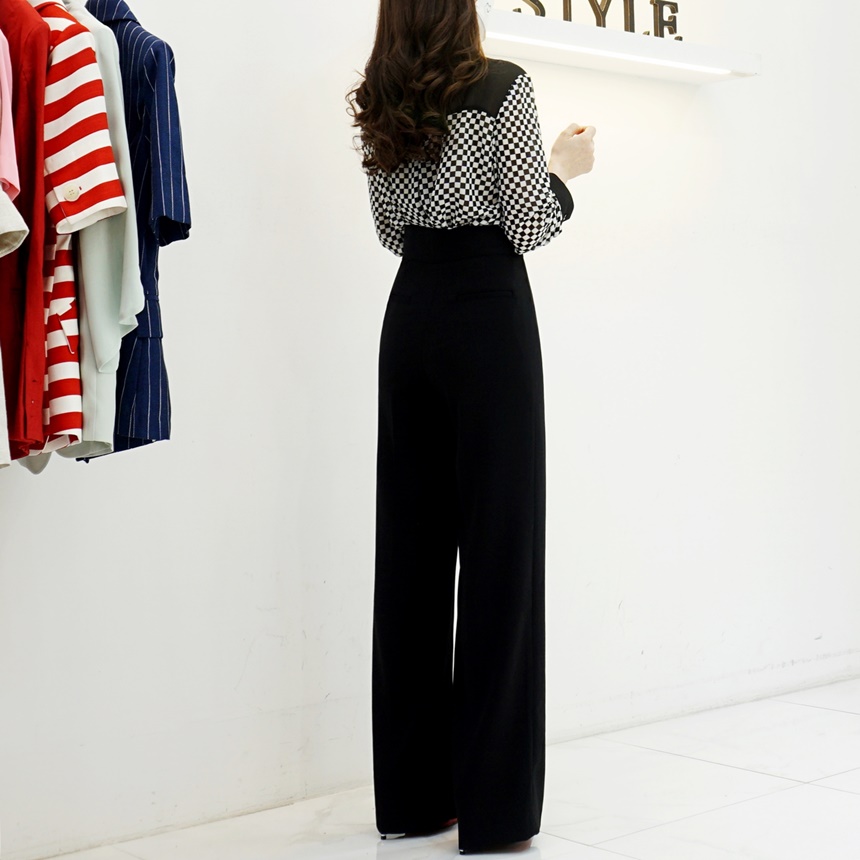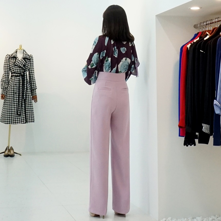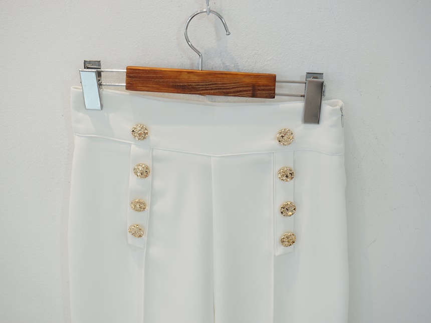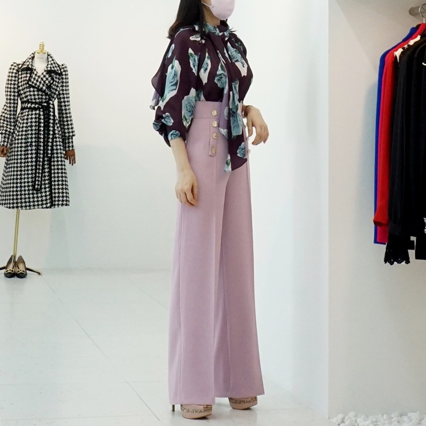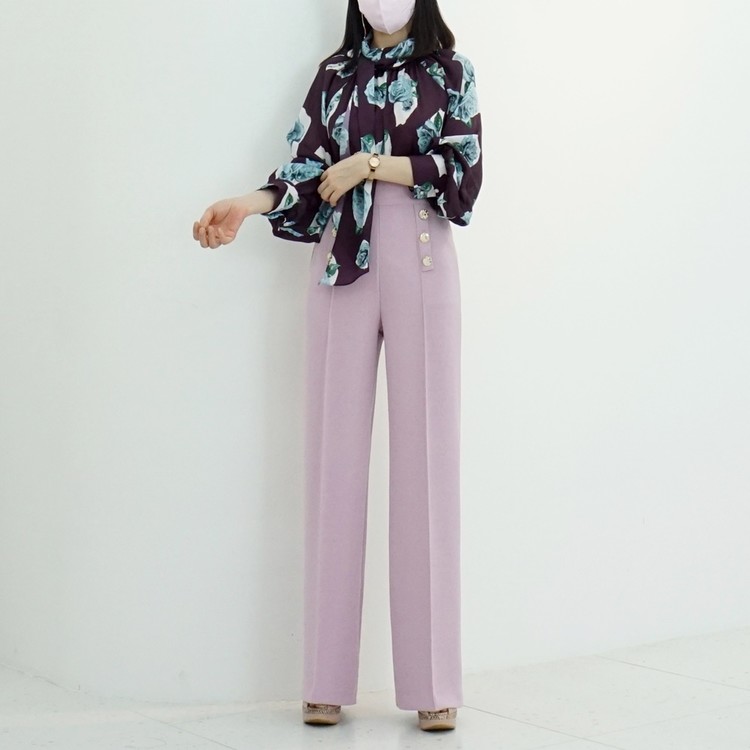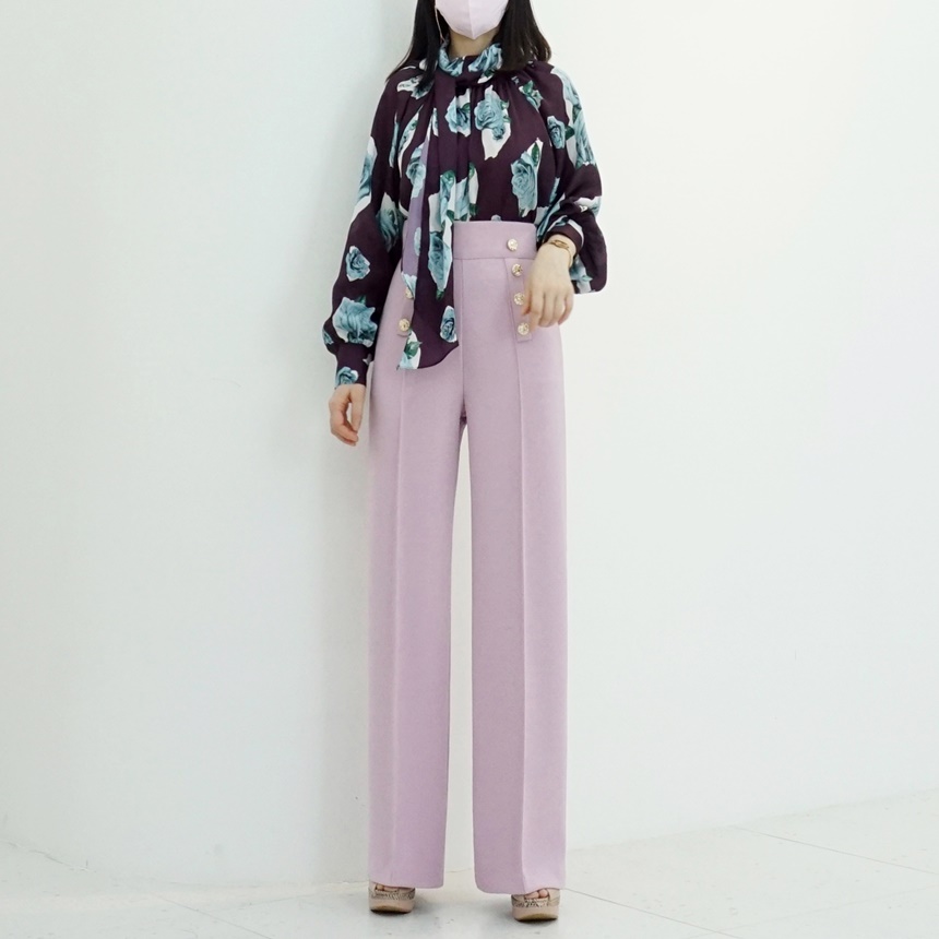 하이웨스트 금장 더블 버튼 일자핏 롱 슬랙스 팬츠