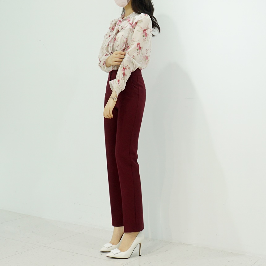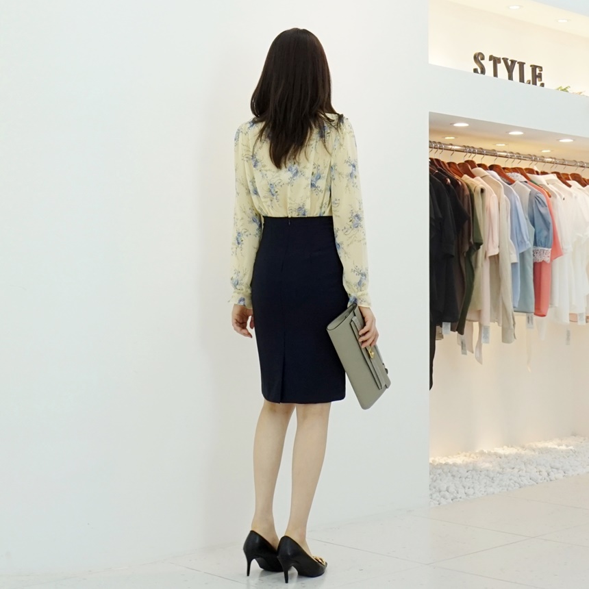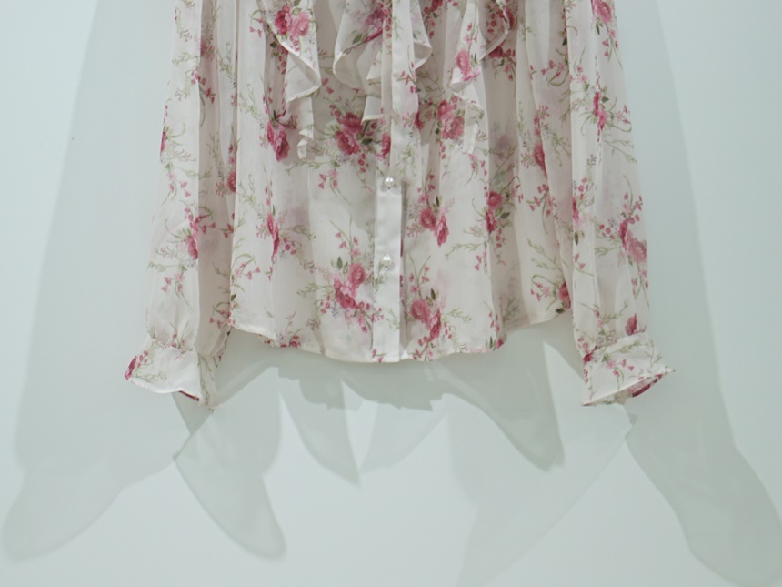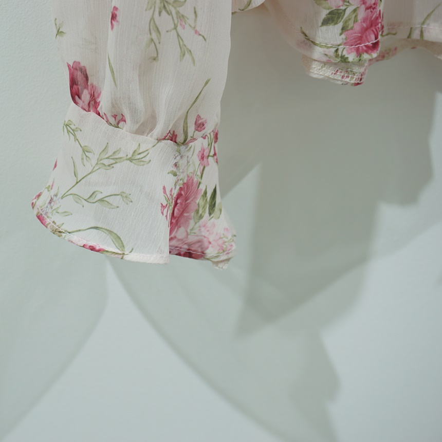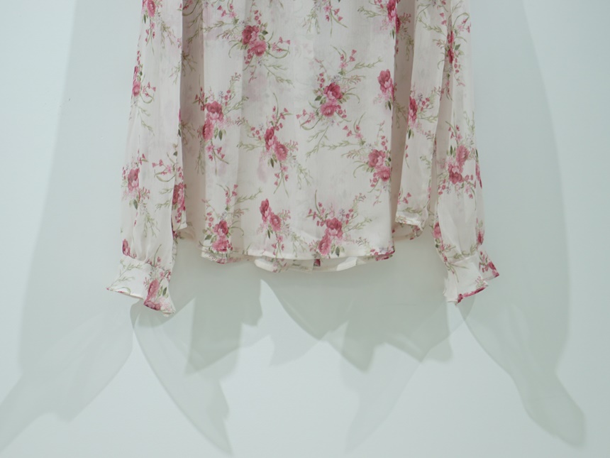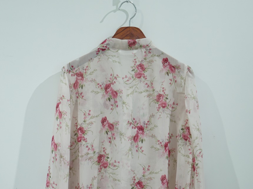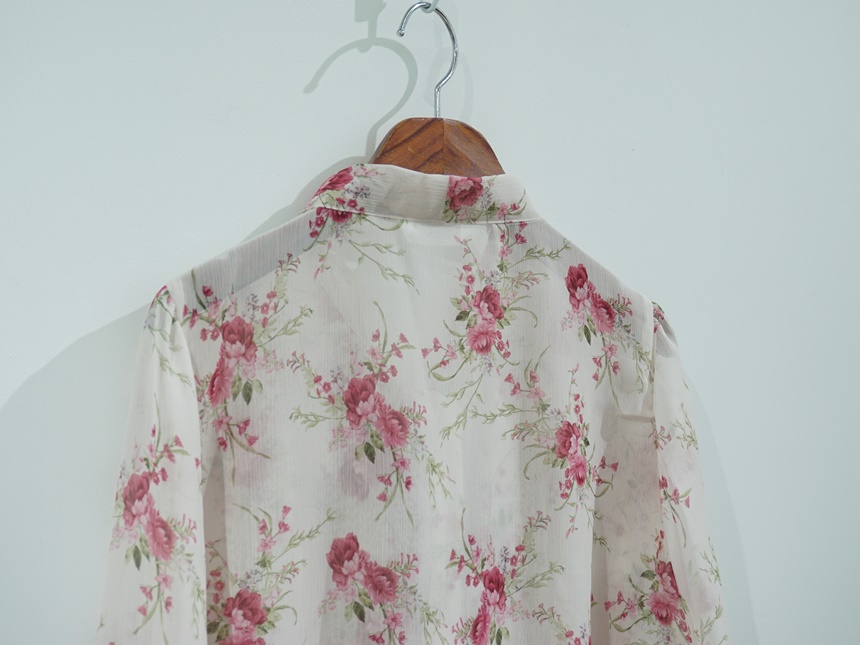 리본 타이 플라워 쉬폰 블라우스