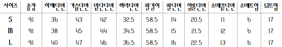 <사이즈> S, M, L