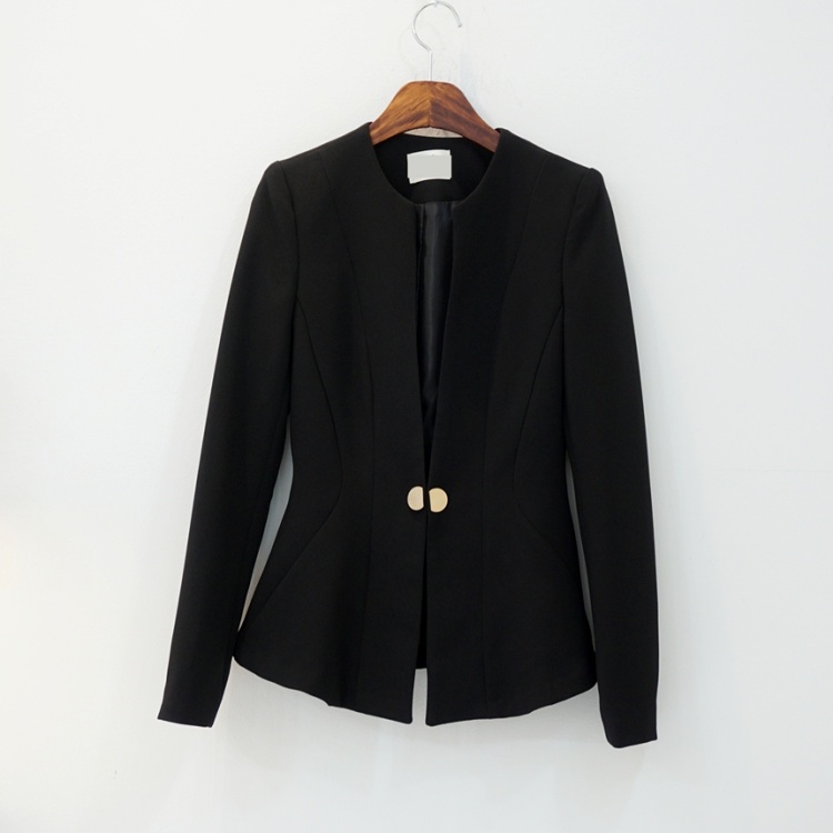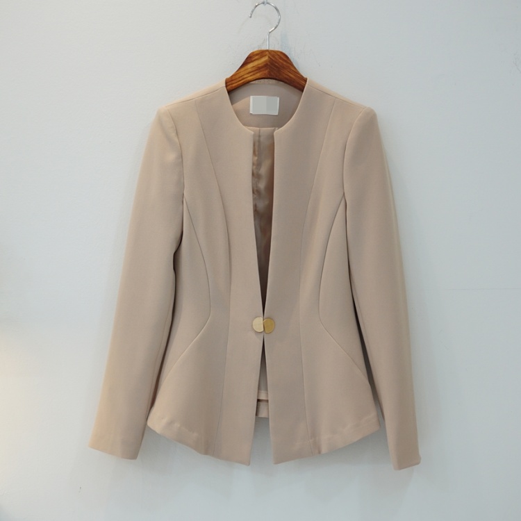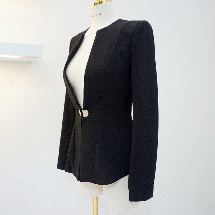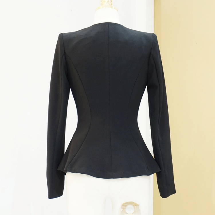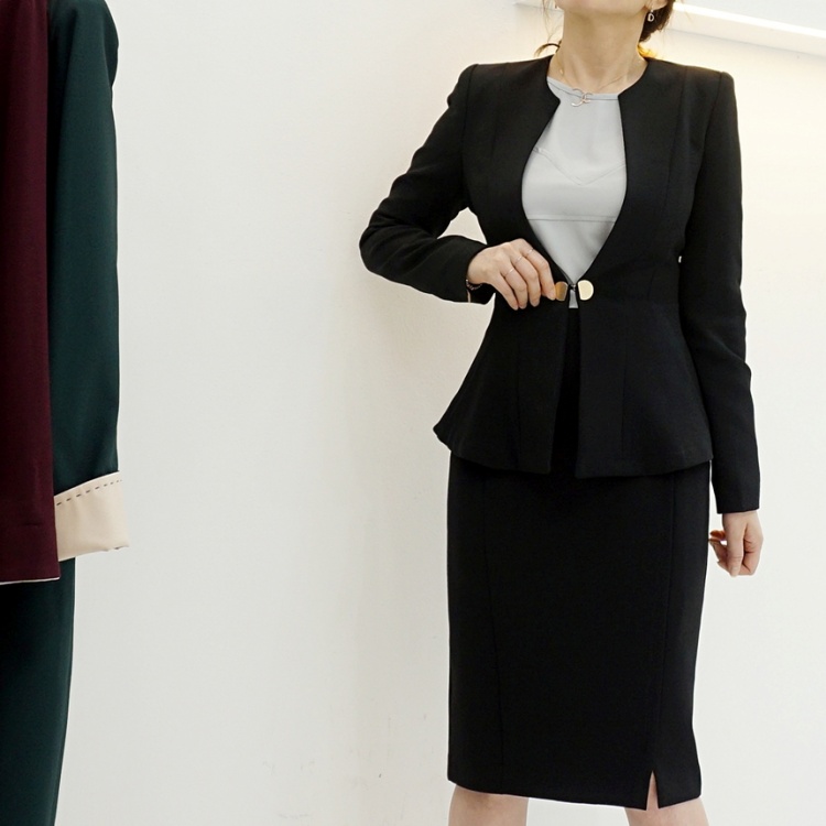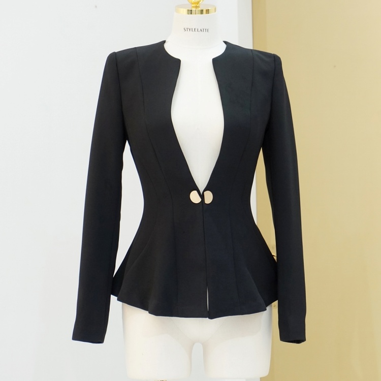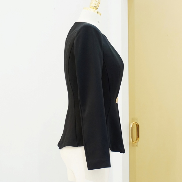 오피스룩 골드버튼 페플럼 노카라 자켓