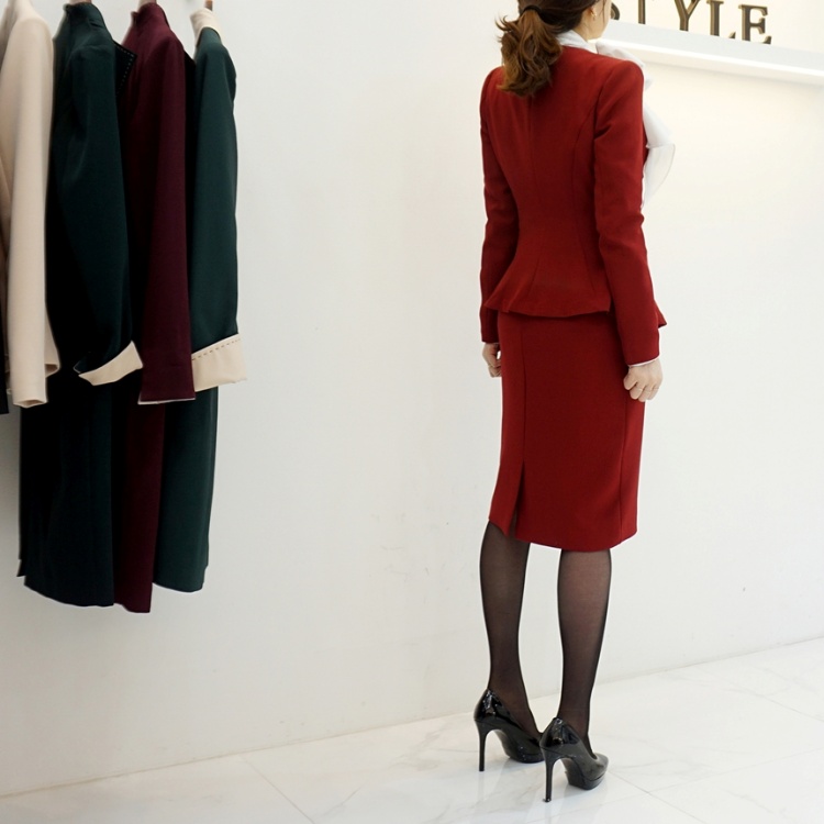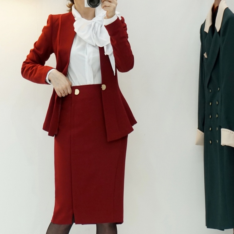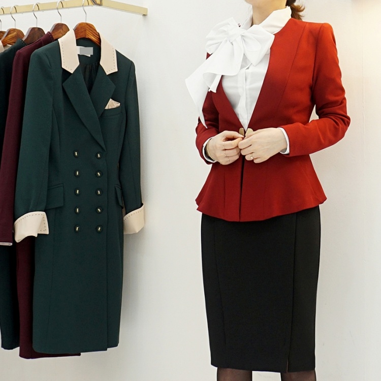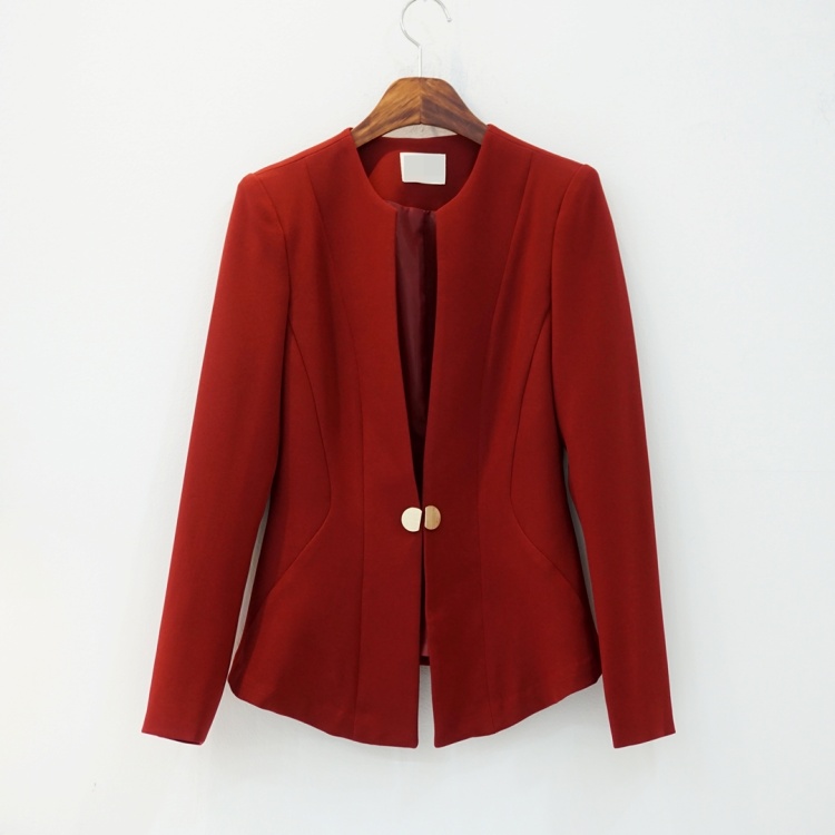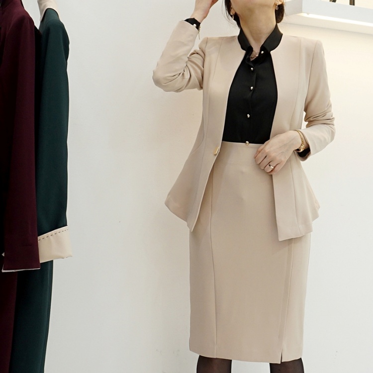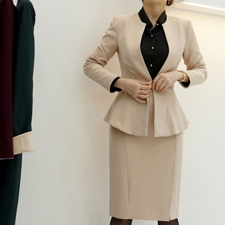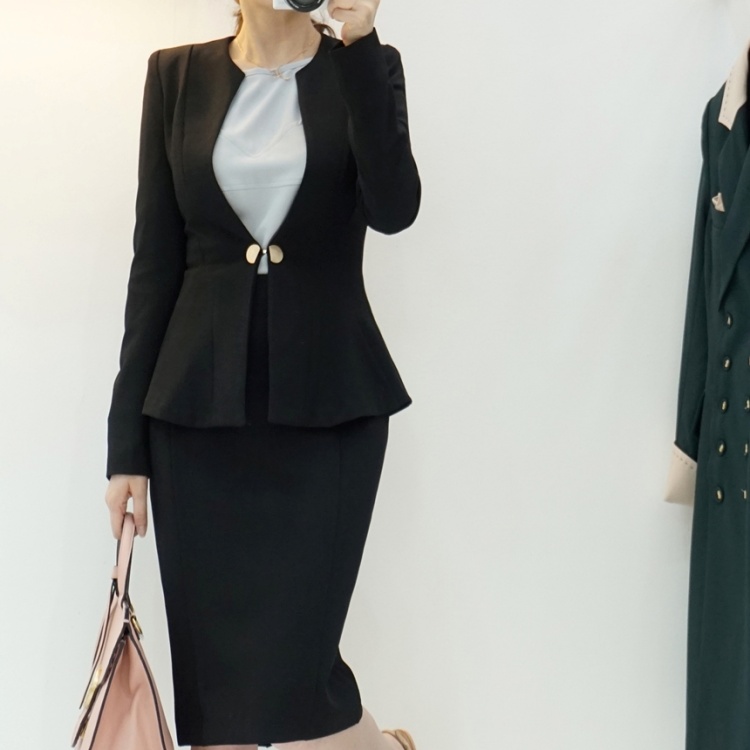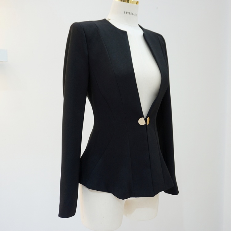 오피스룩 골드버튼 페플럼 노카라 자켓