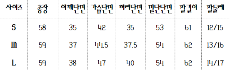 <자켓사이즈표>