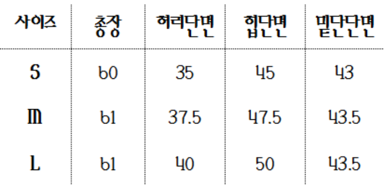 하단 사이즈 표를