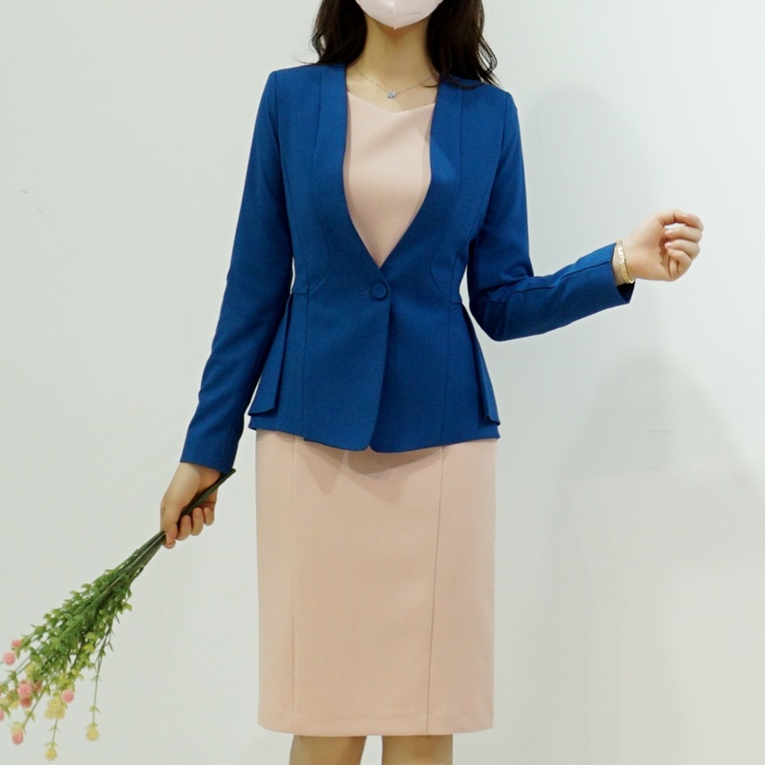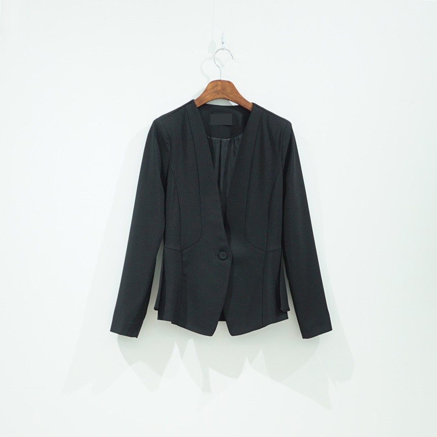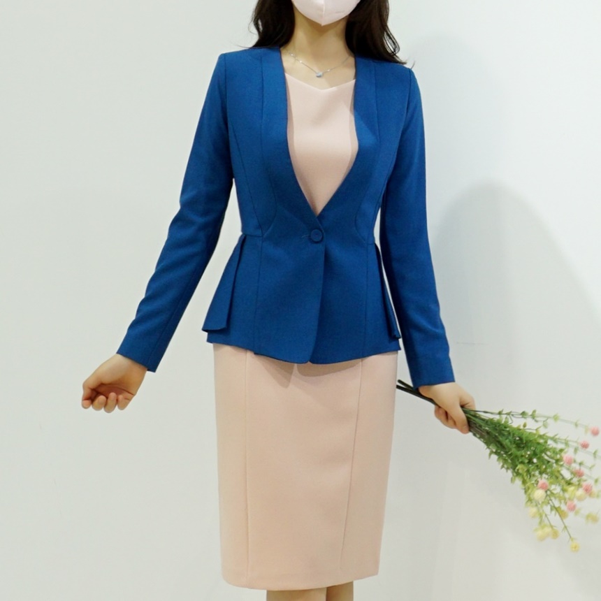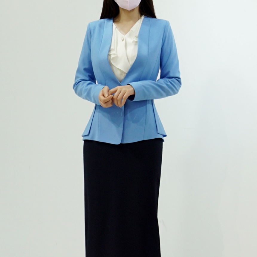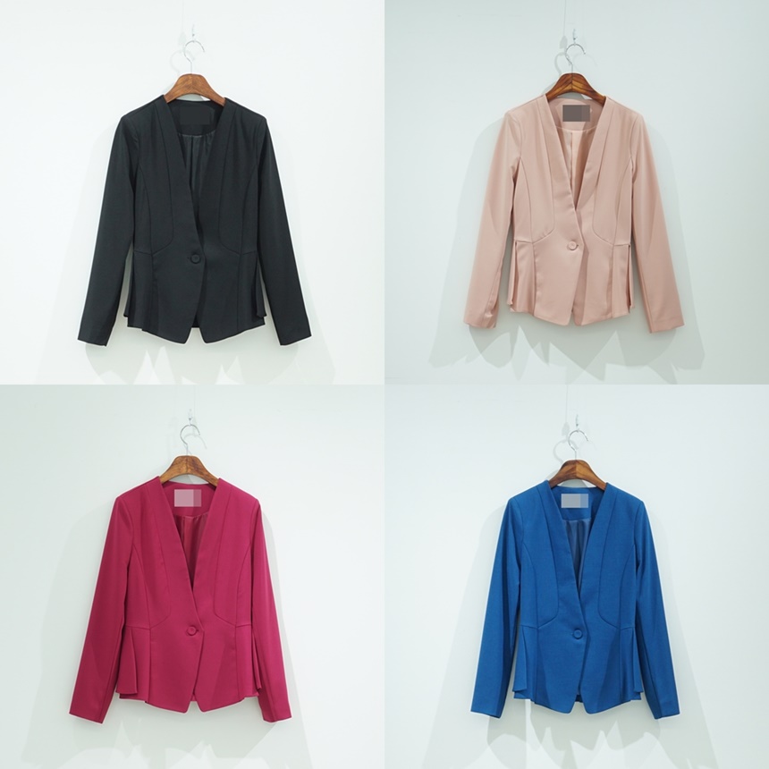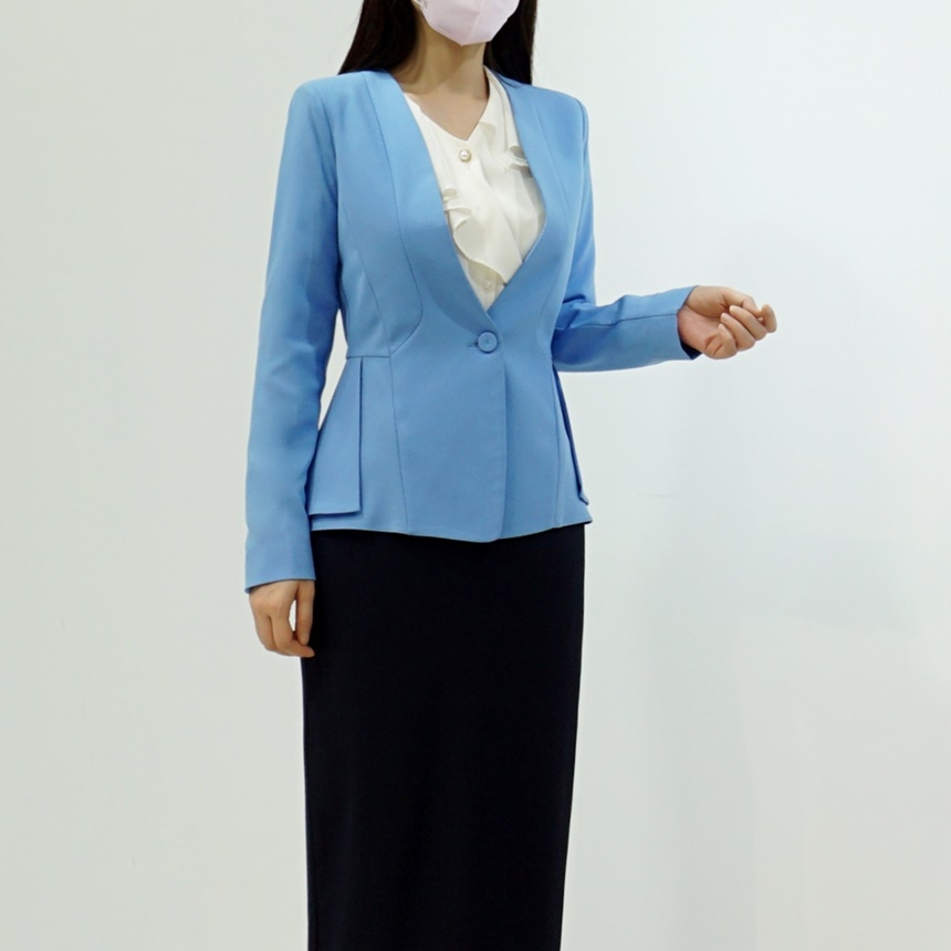 노카라 원버튼 이중 페플럼 스판 여성 정장자켓