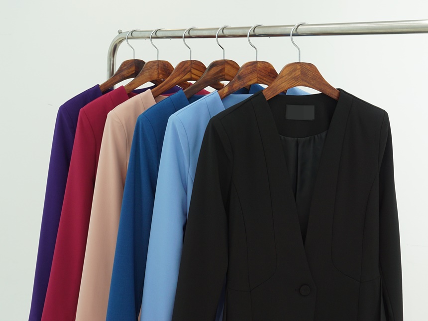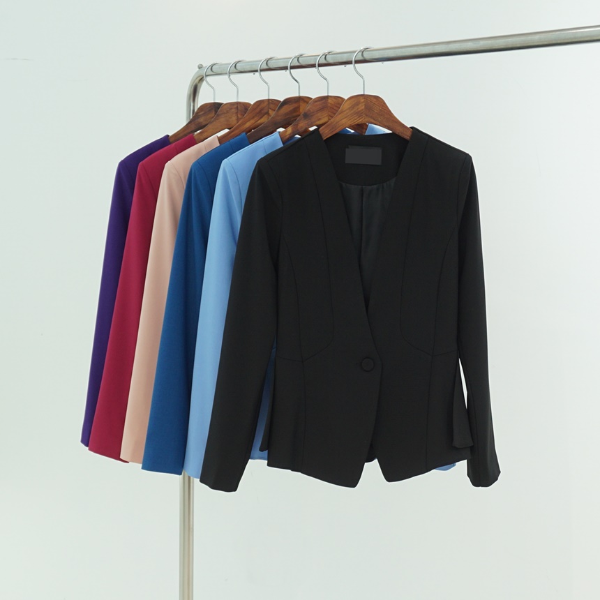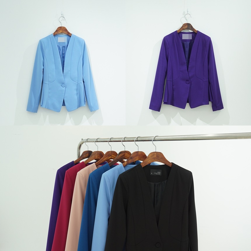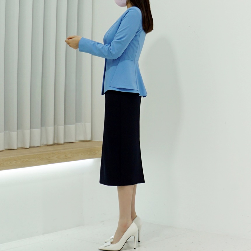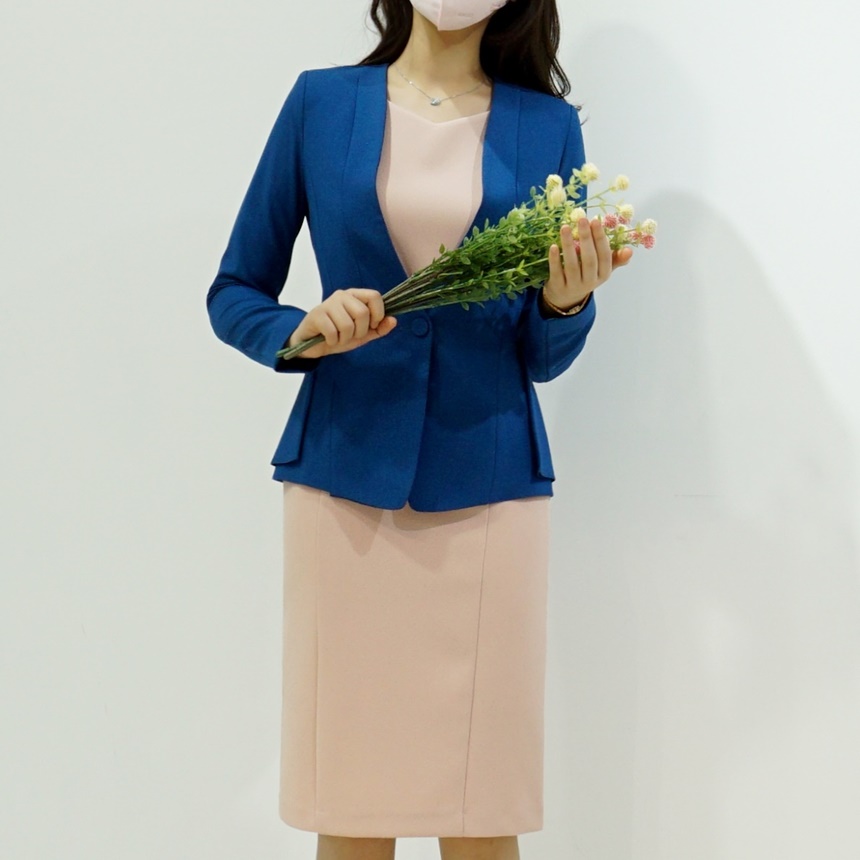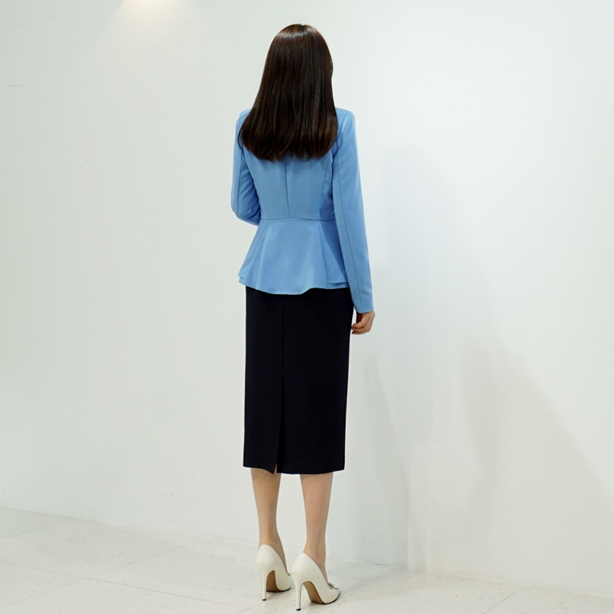 노카라 원버튼 이중 페플럼 스판 여성 정장자켓