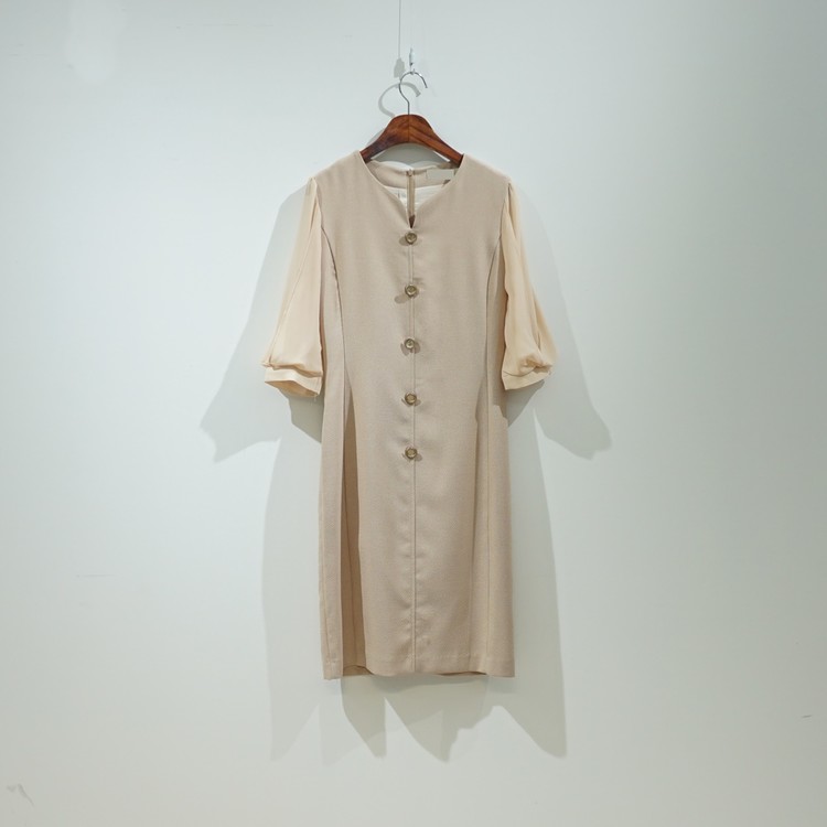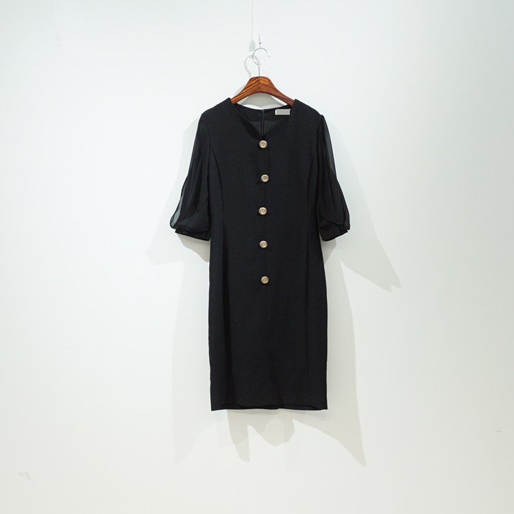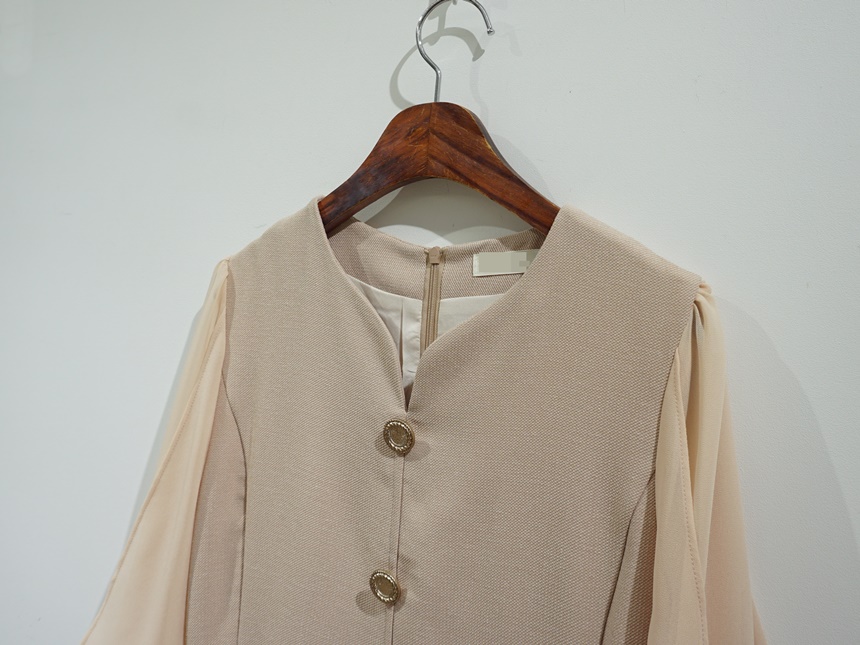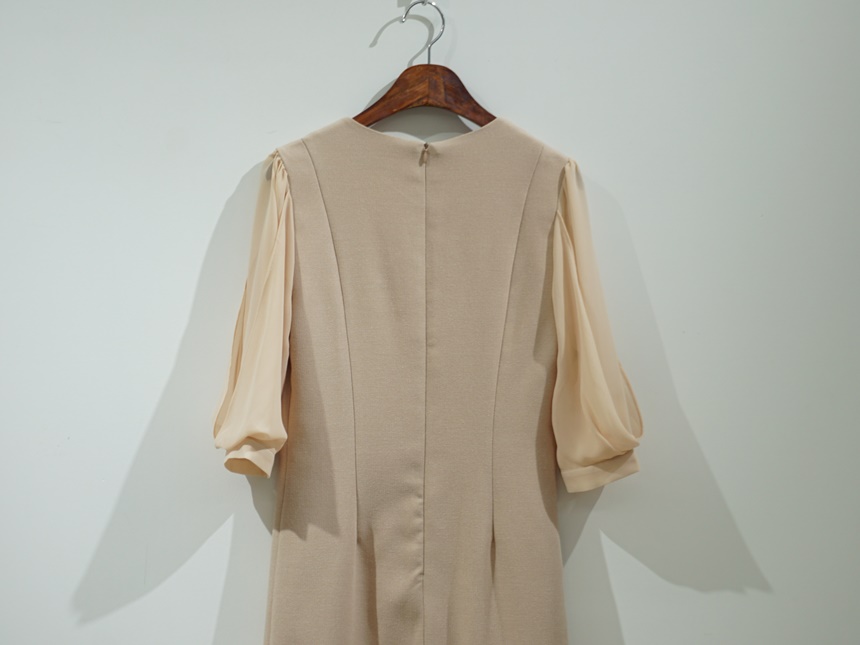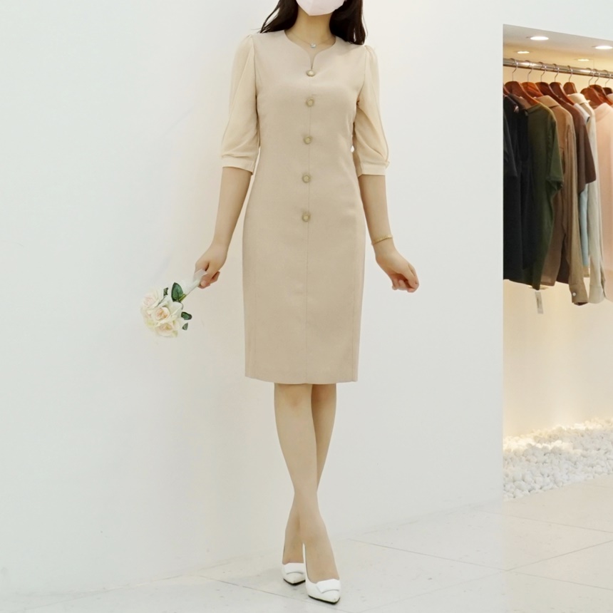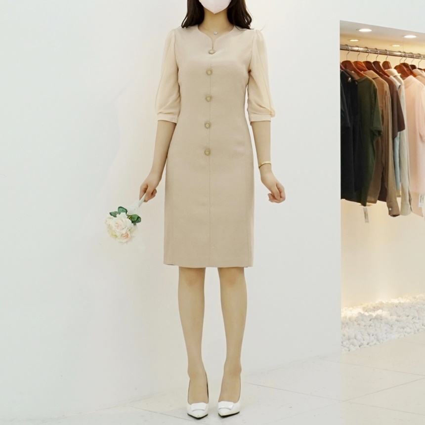 H라인 미디 하트넥 쉬폰소매 스판 정장 원피스