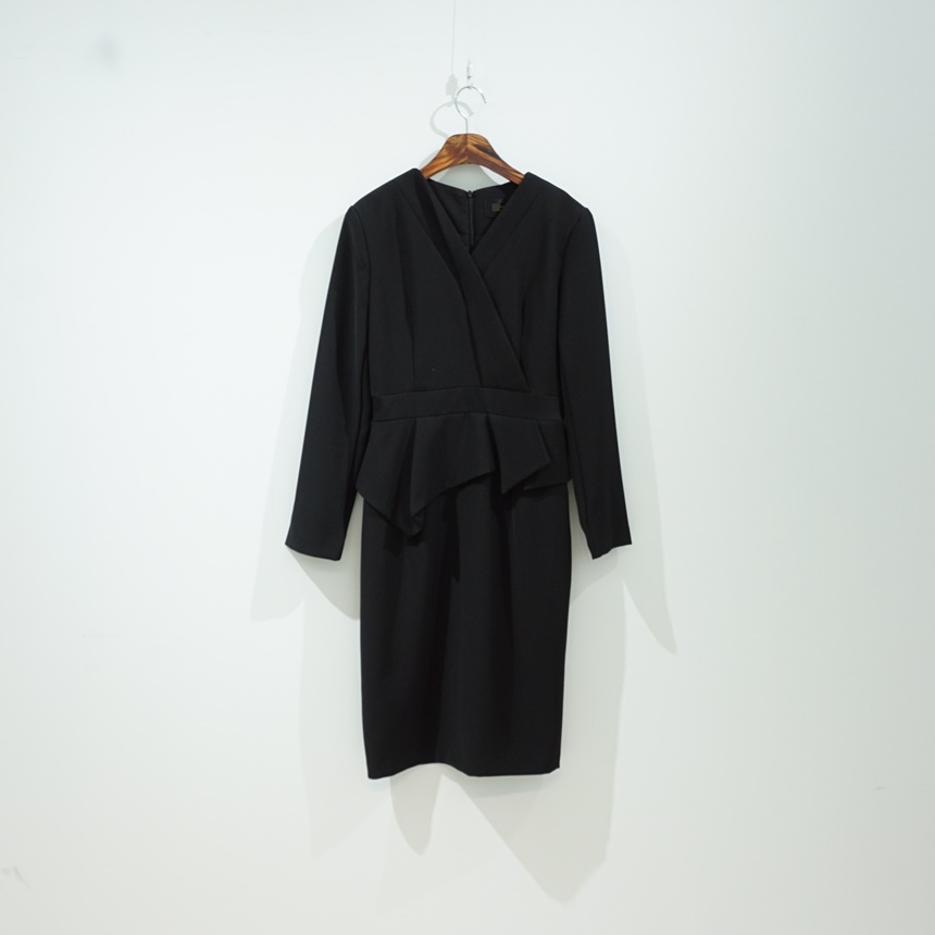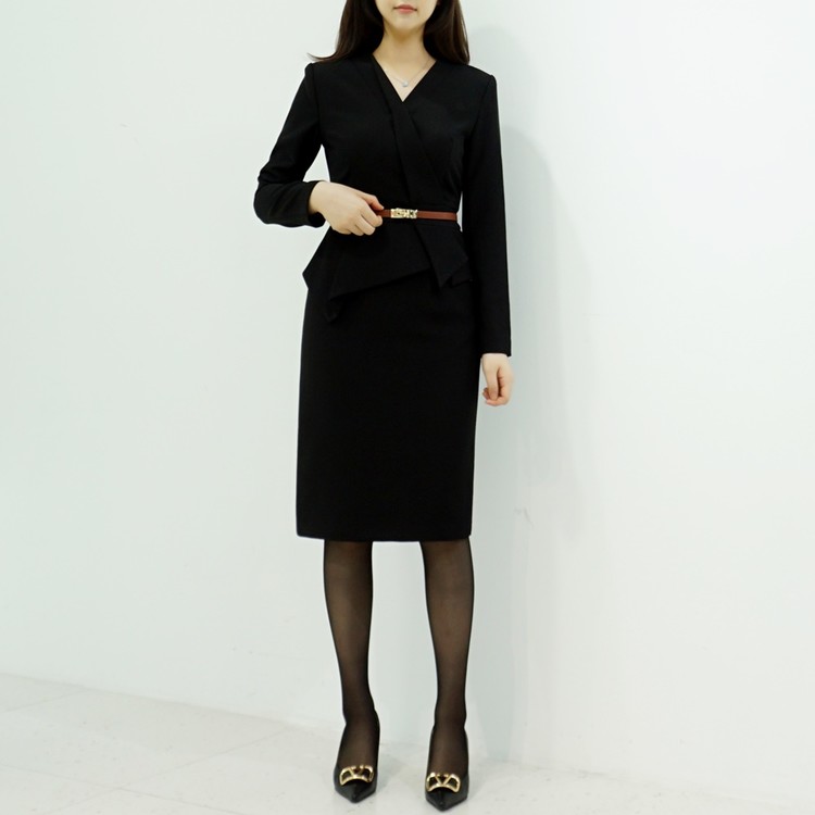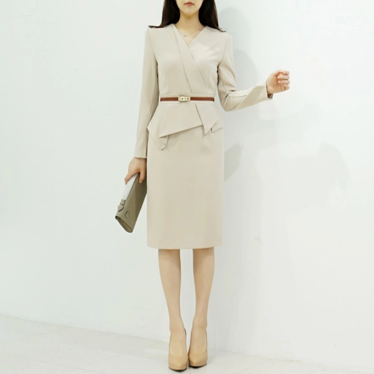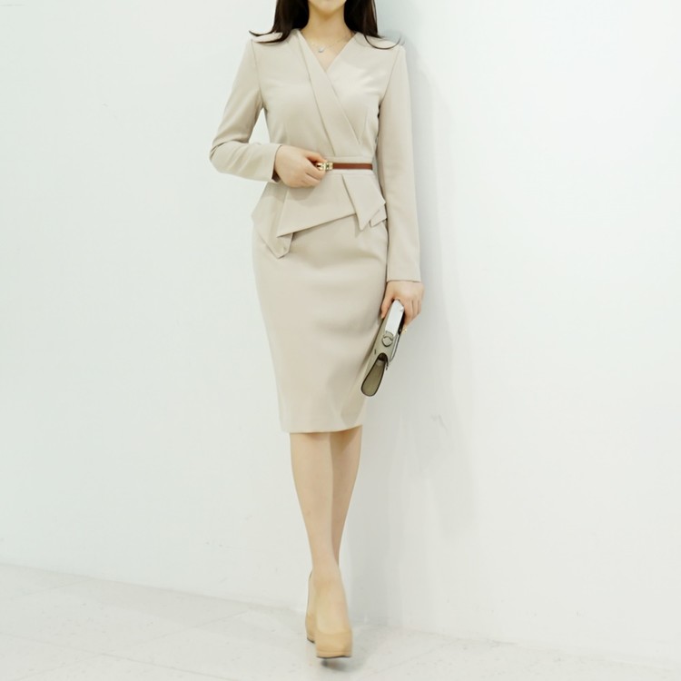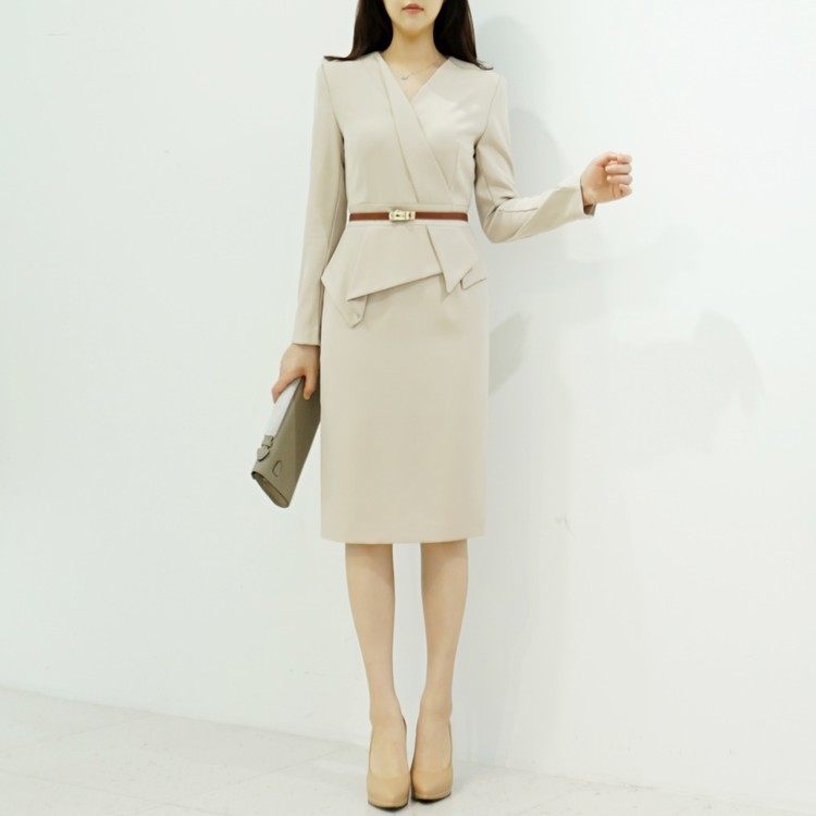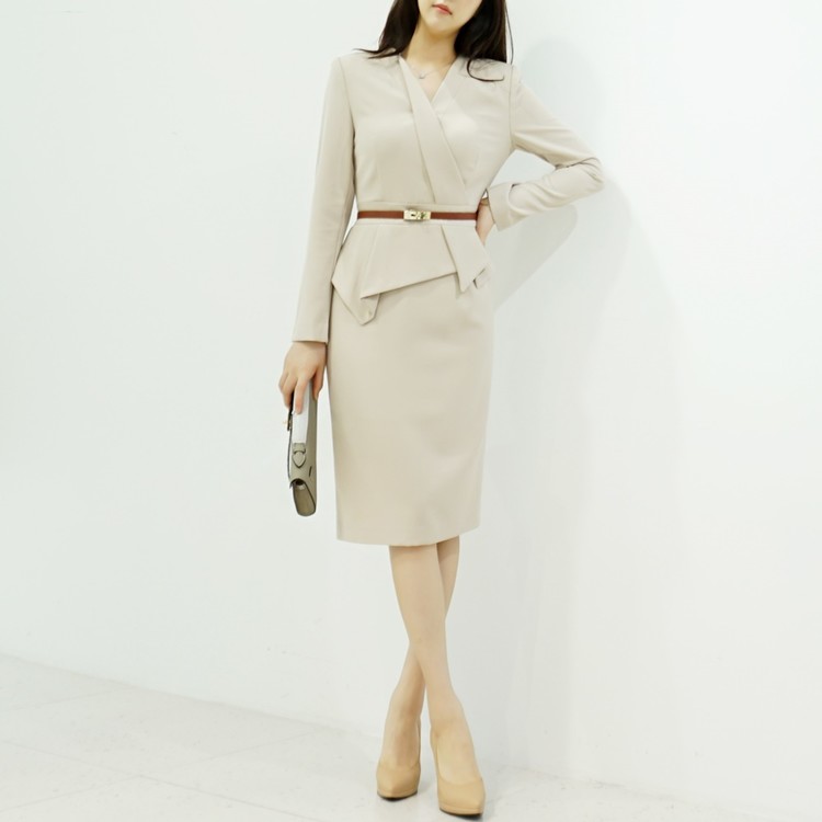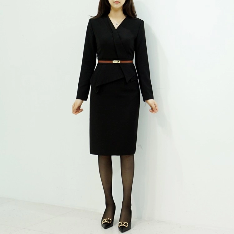 정장원피스 H라인 브이넥 페플럼 미디 원피스