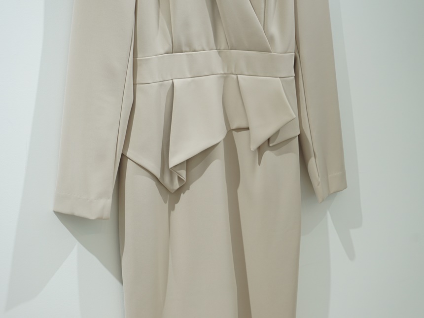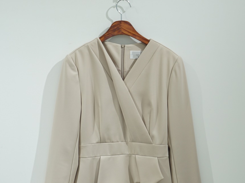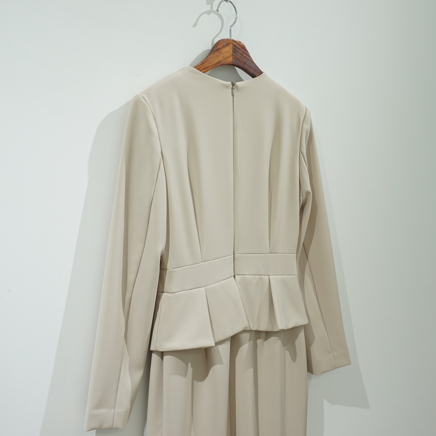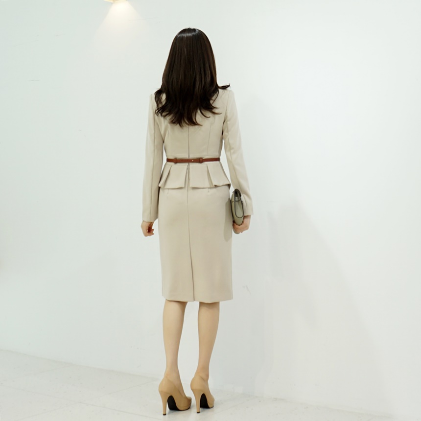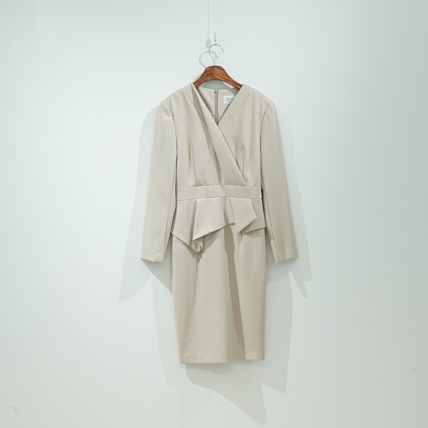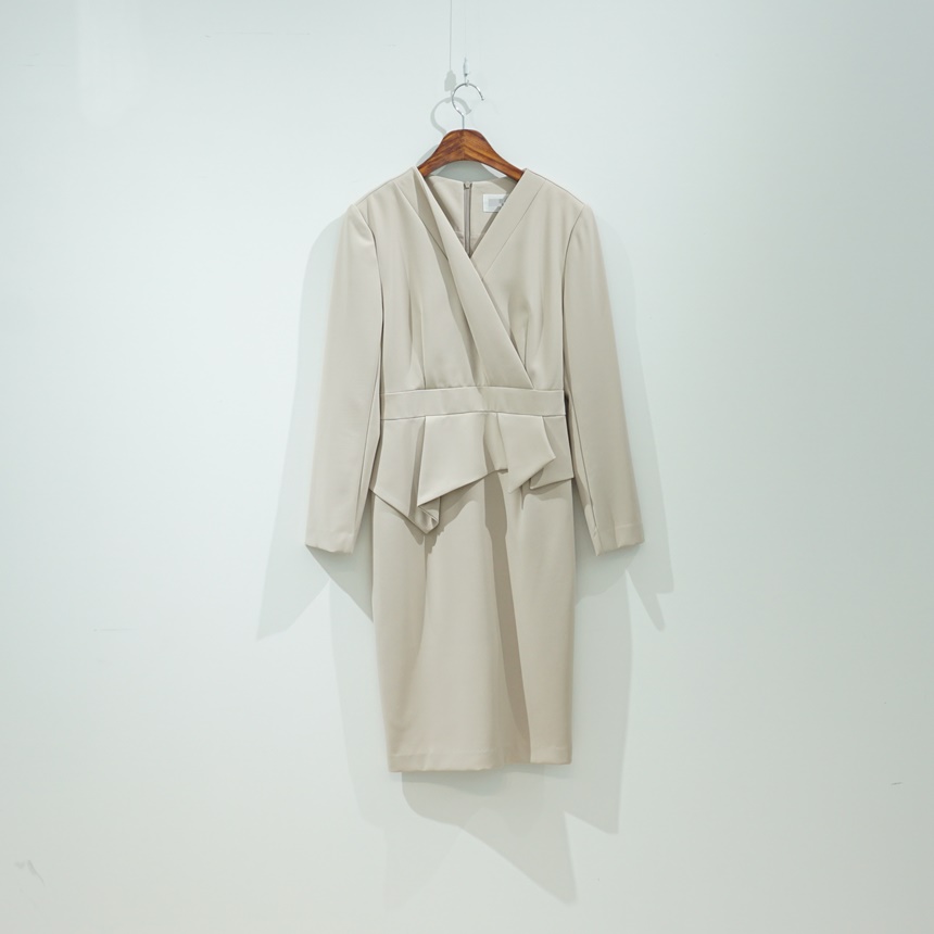 정장원피스 H라인 브이넥 페플럼 미디 원피스