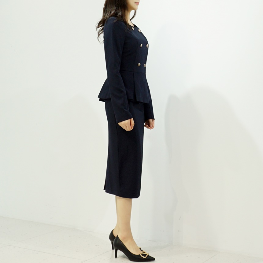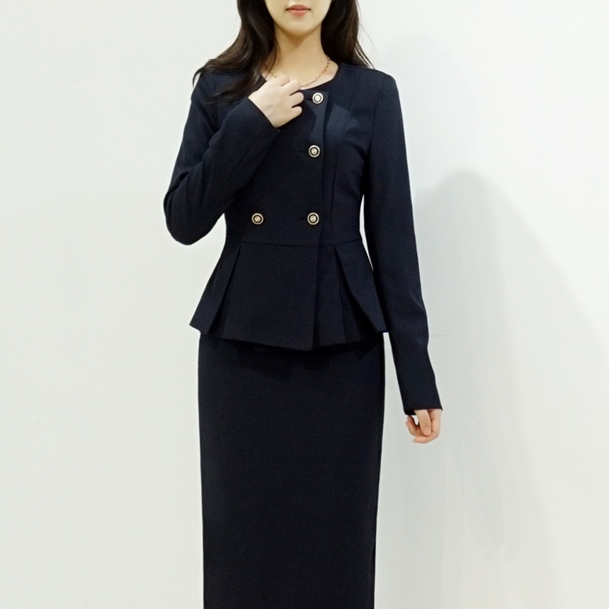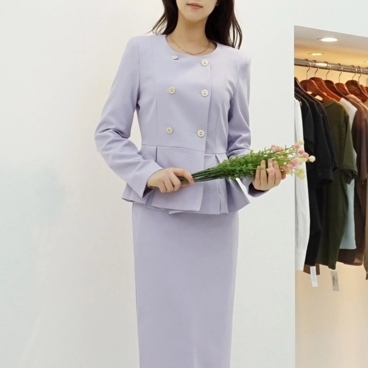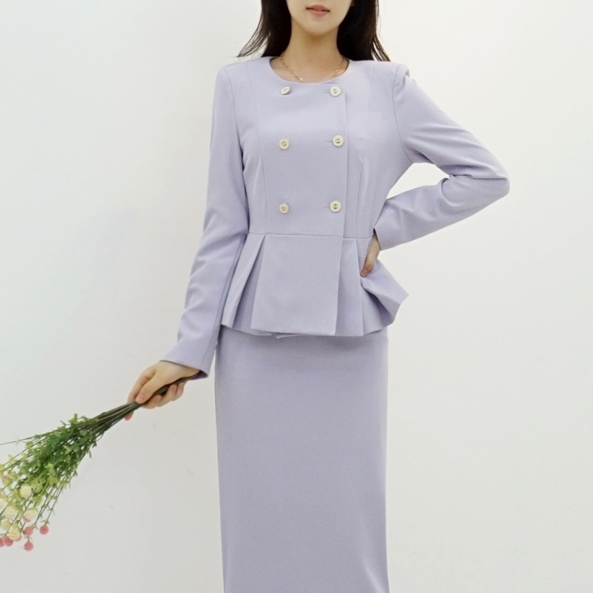 A라인 여성 정장자켓 페플럼 스판 더블 재킷