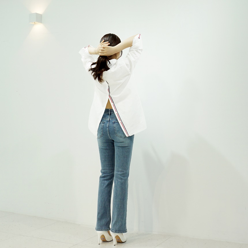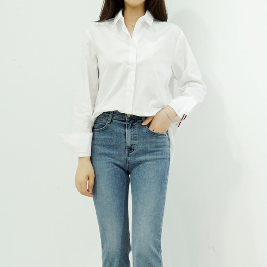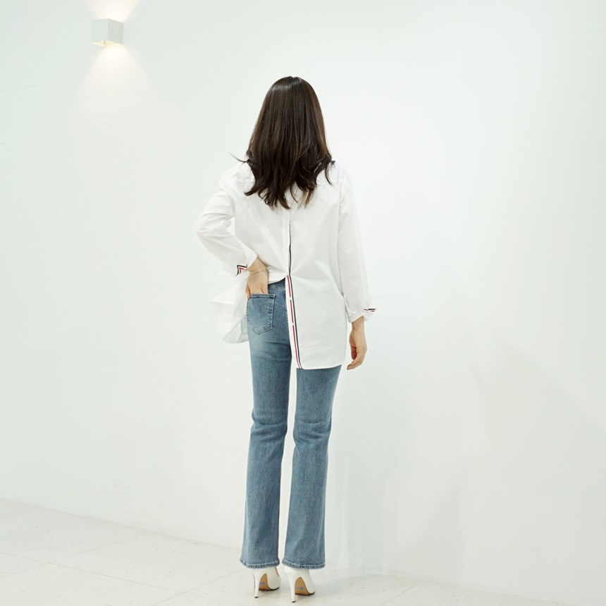 여성 면 남방 뒤트임 삼색 테잎 셔츠 데일리 블라우스