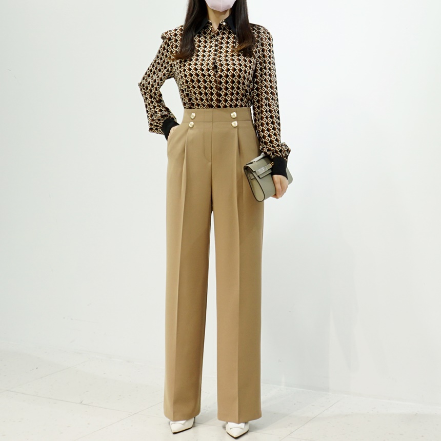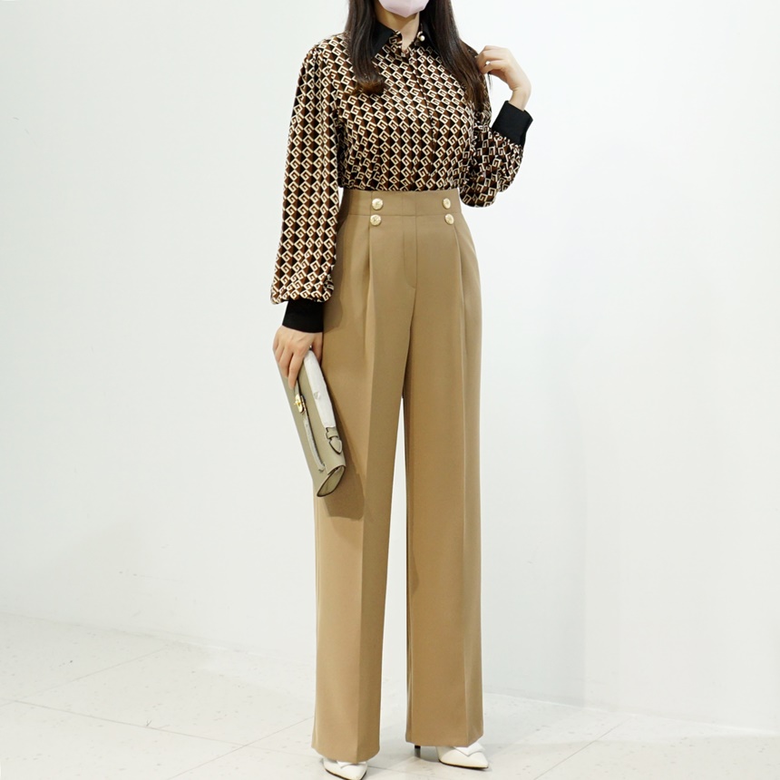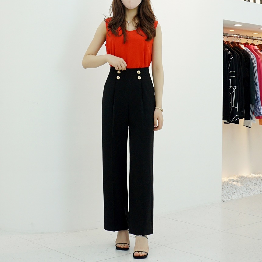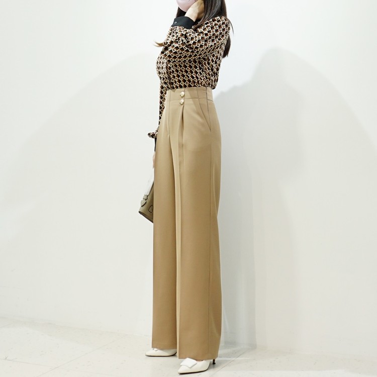 여성 정장바지 듀얼 핀턱 와이드 스판 팬츠