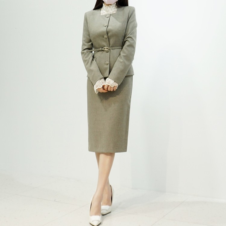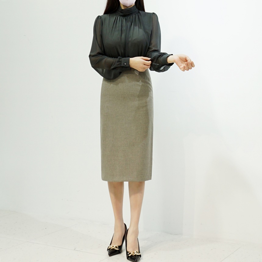 여자 정장치마 심플 H라인 미디 스판 스커트