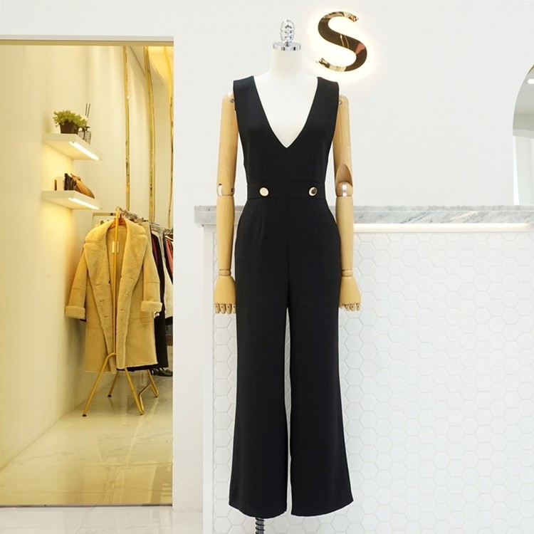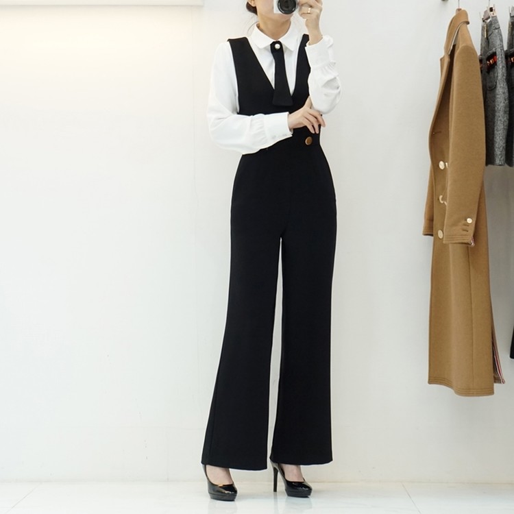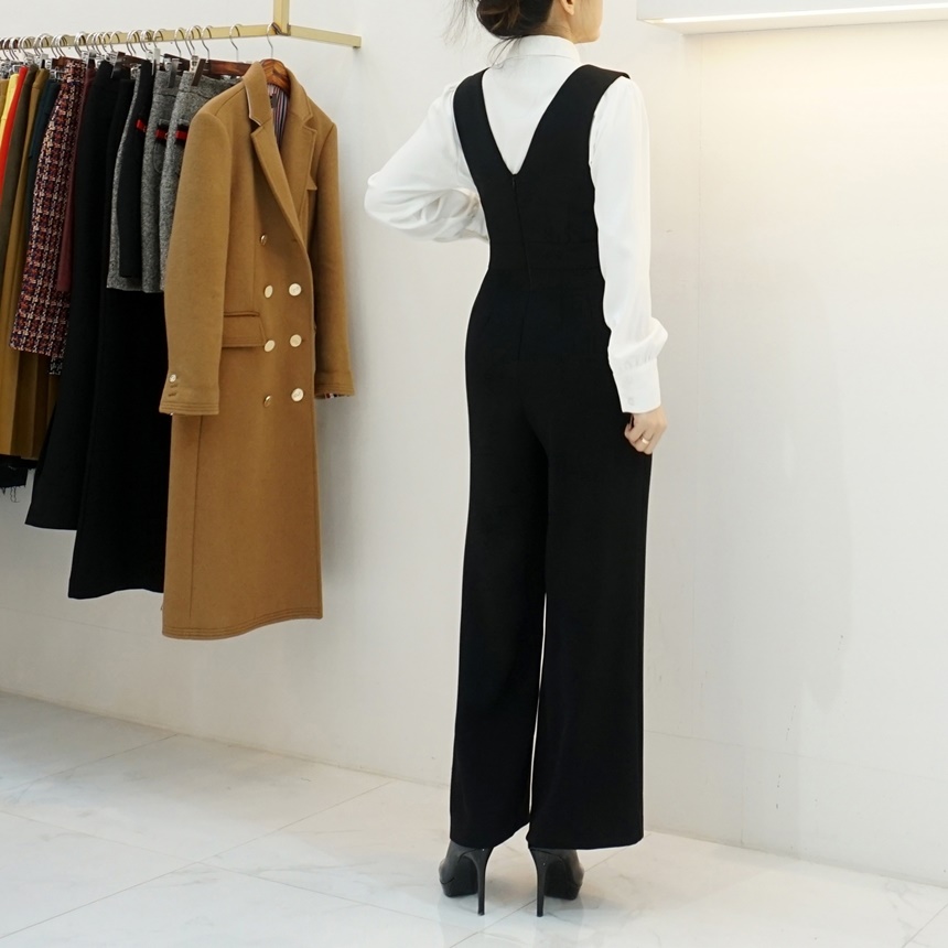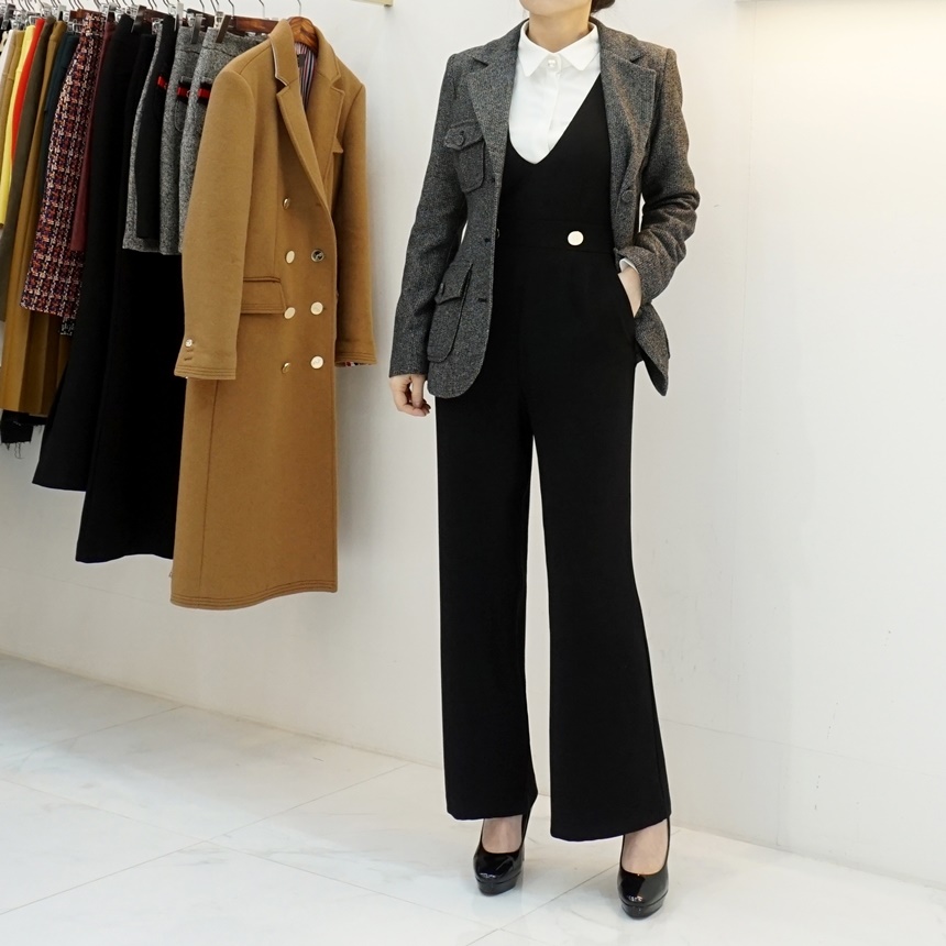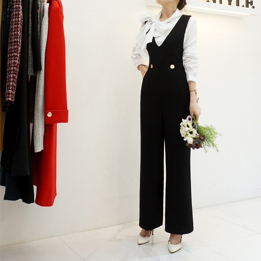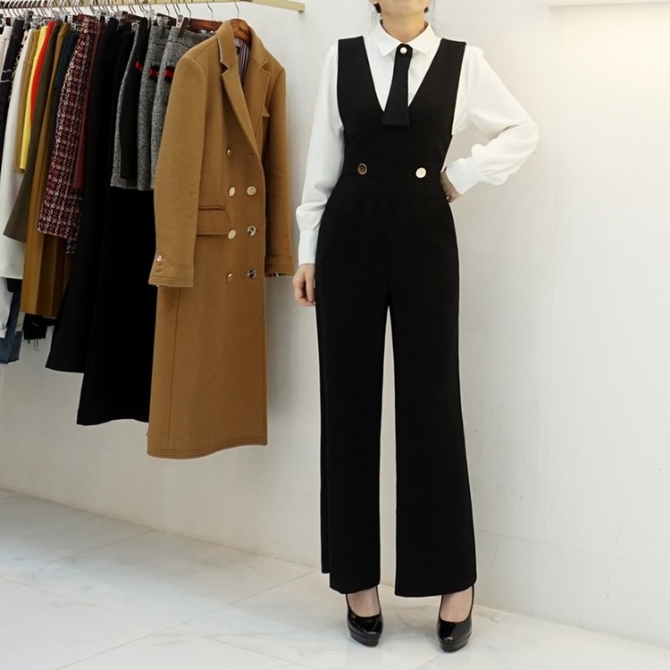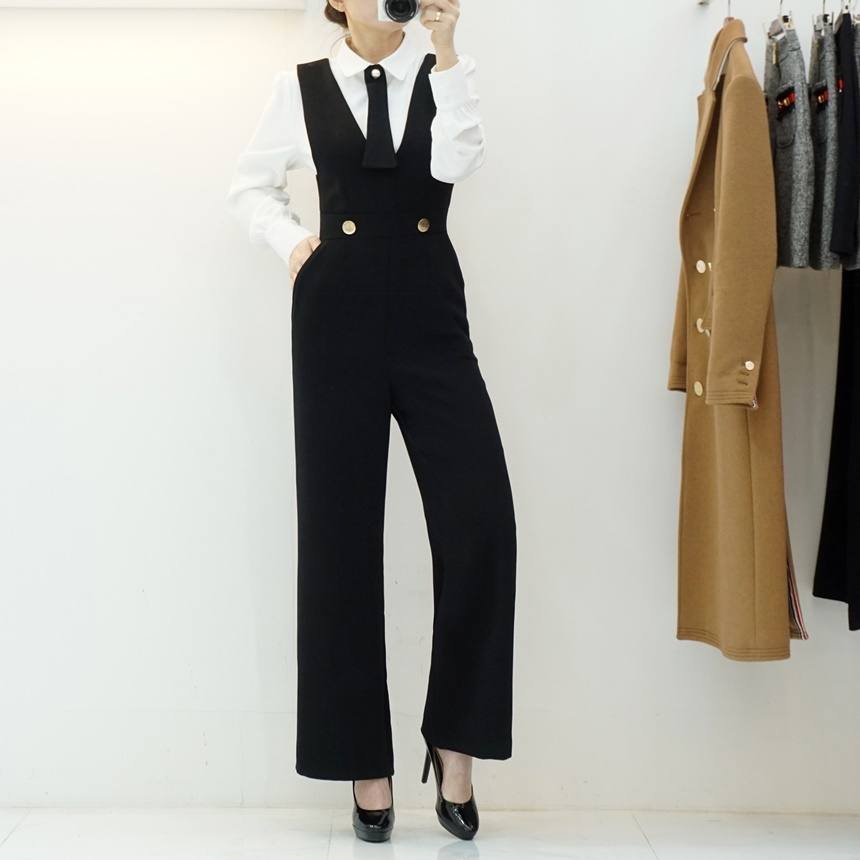 겨울 기모 골드버튼 멜빵 와이드 정장 점프수트