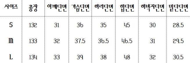 <사이즈> S, M, L