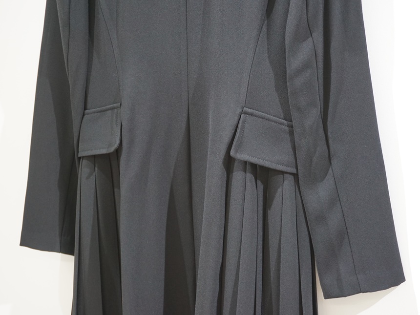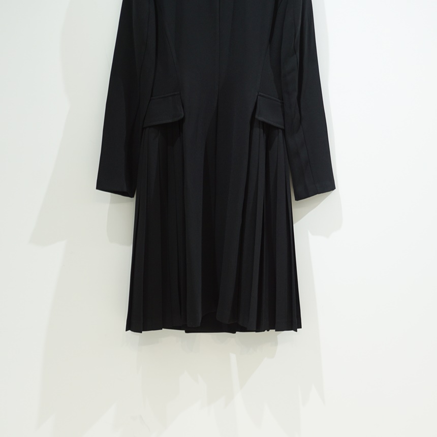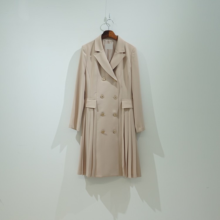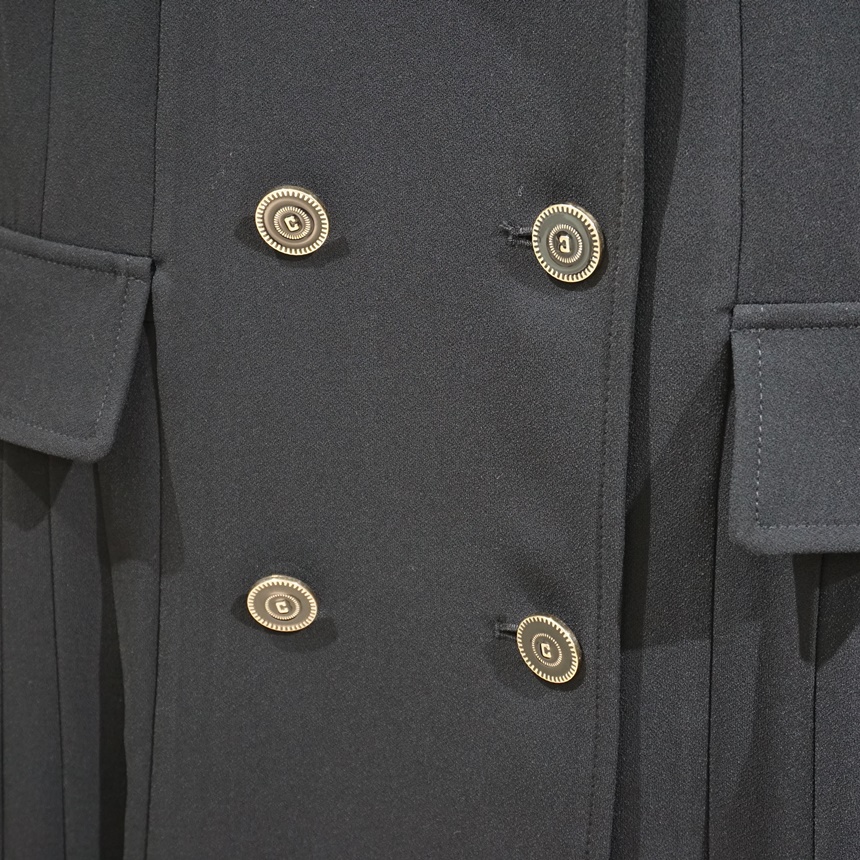 "테일러드 더블버튼 H라인 플리츠 반팔 원피스"