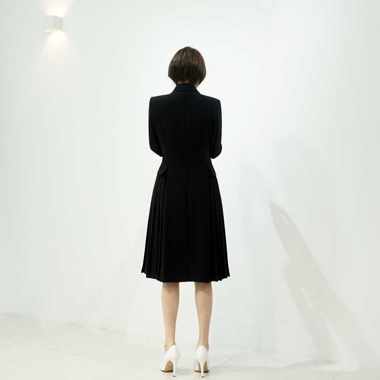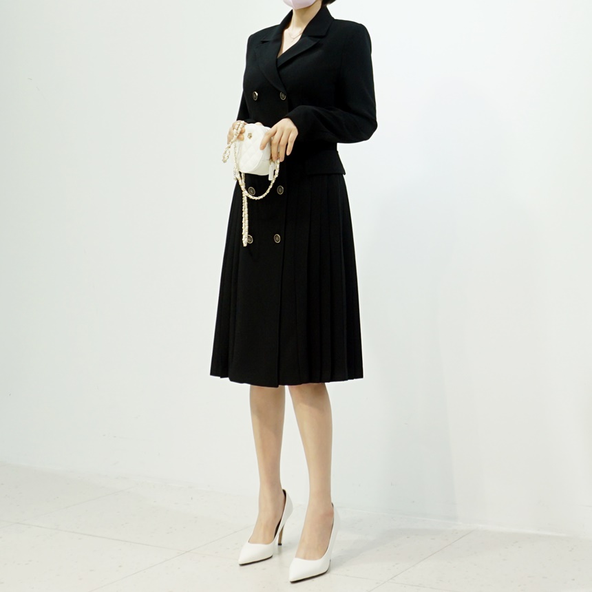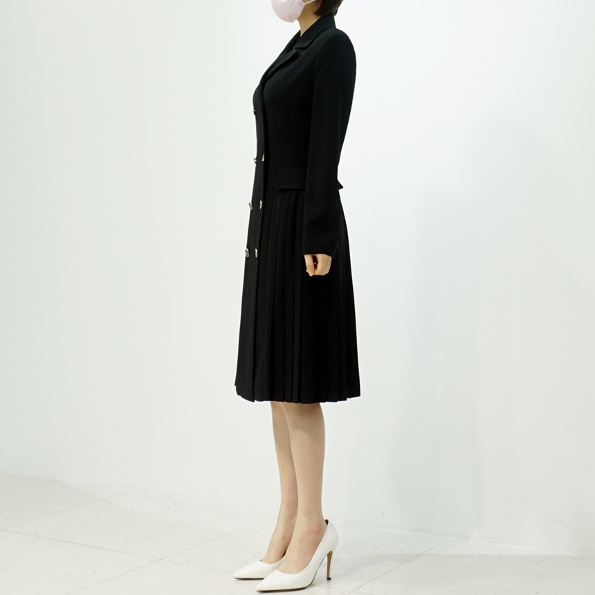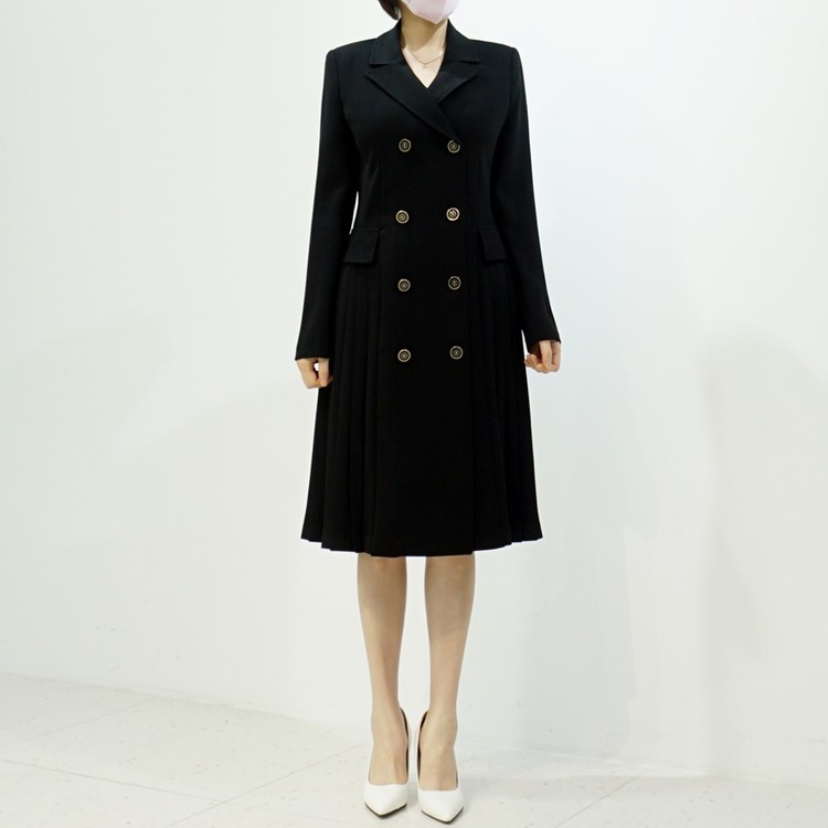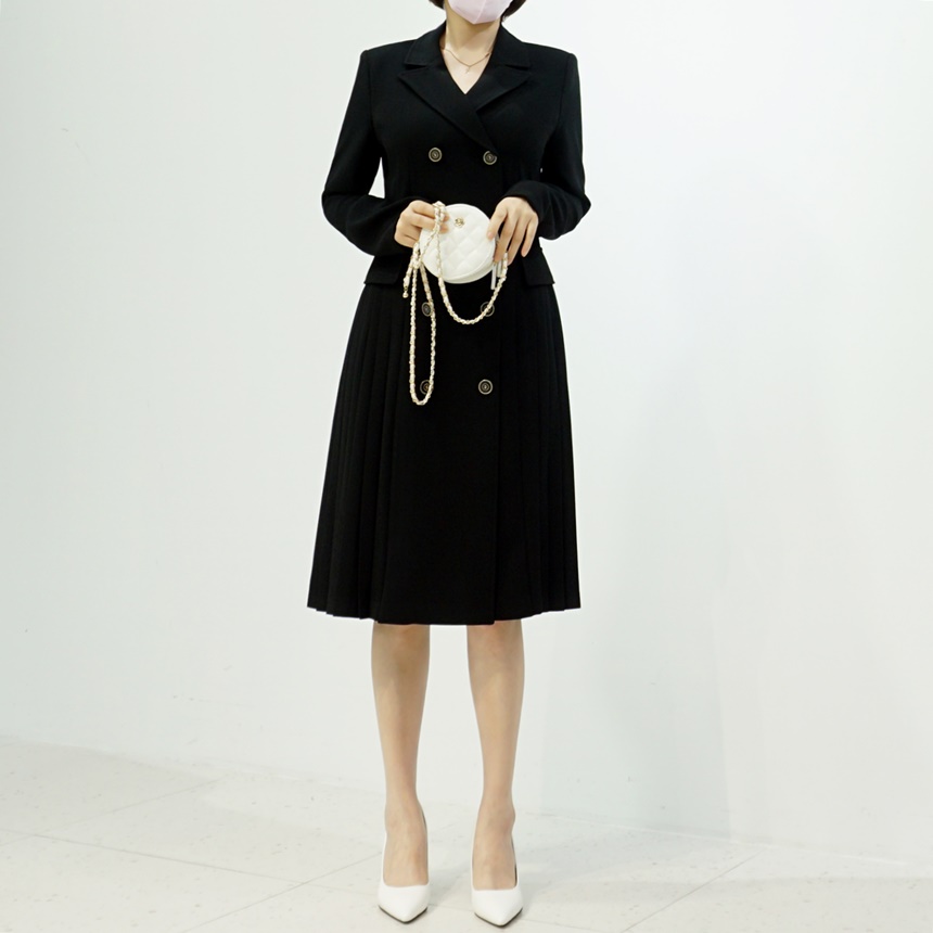 테일러드 더블버튼 옆주름 H라인 정장 원피스
