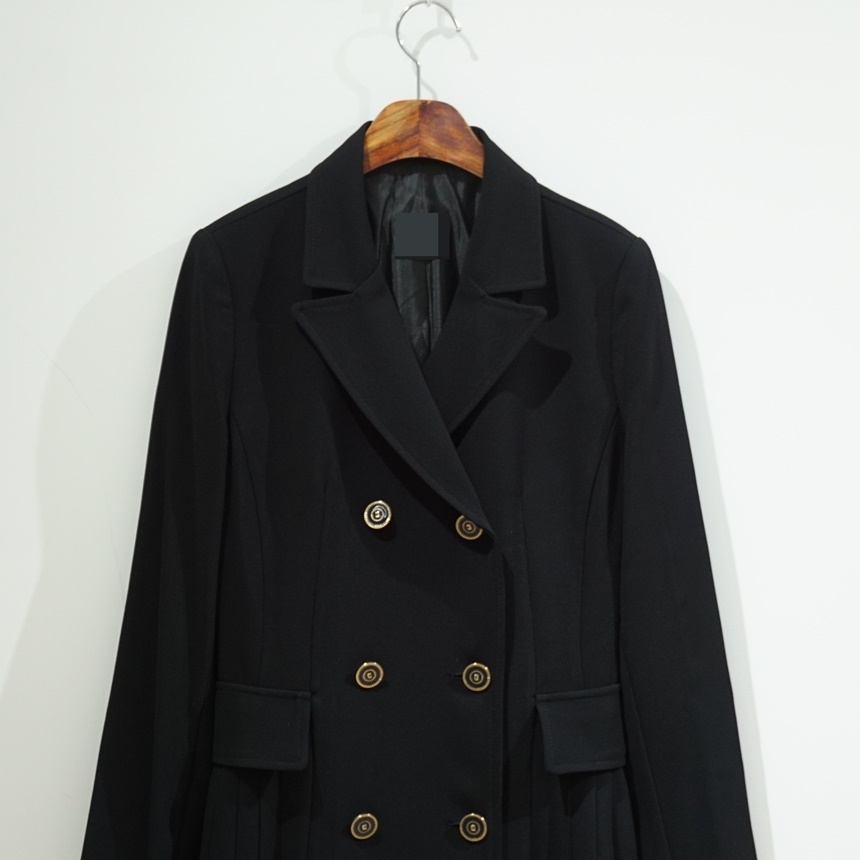 "테일러드 더블버튼 H라인 플리츠 반팔 원피스"