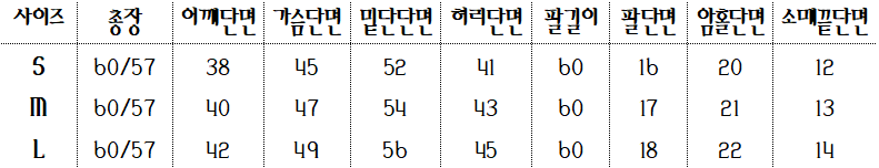 체형, 취향에 따라 사이즈가 다를 수 있습니다.