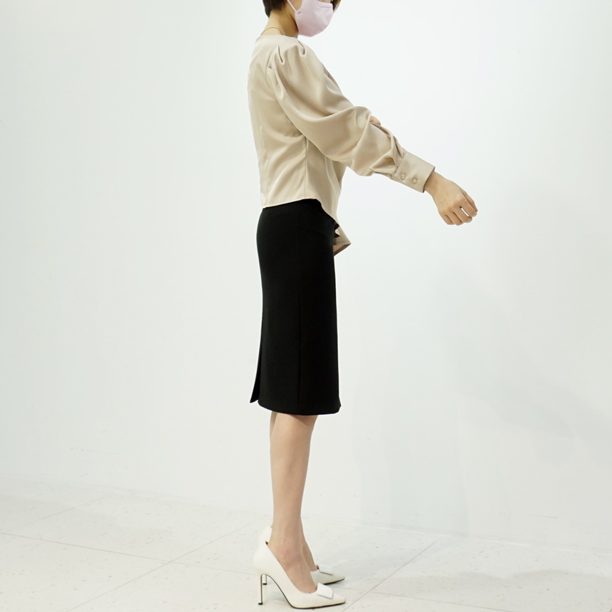 허리 사이드 라인에 더해진 핀턱 디테일로