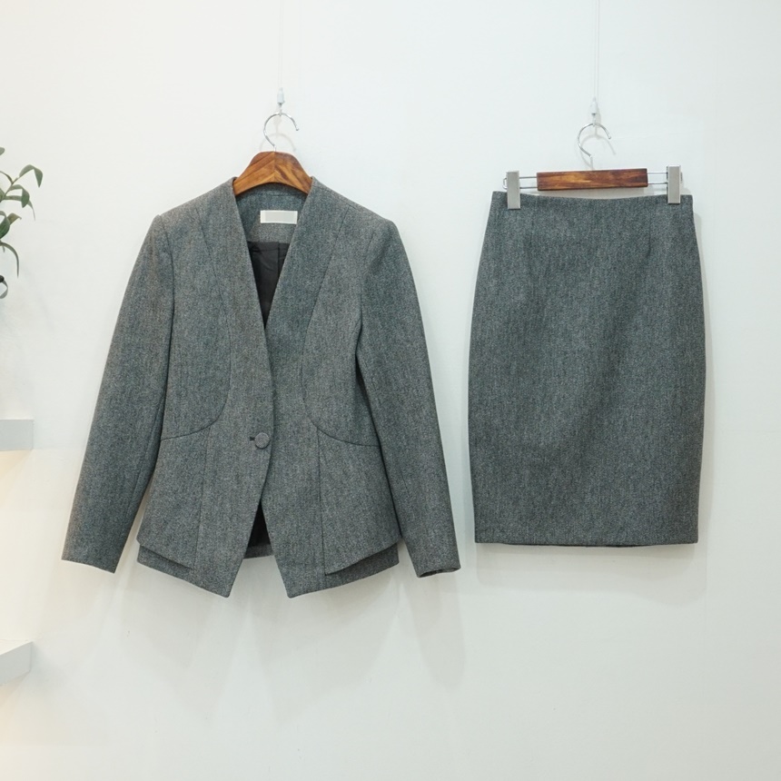 겨울 치마정장 보카시 노카라 자켓 스커트