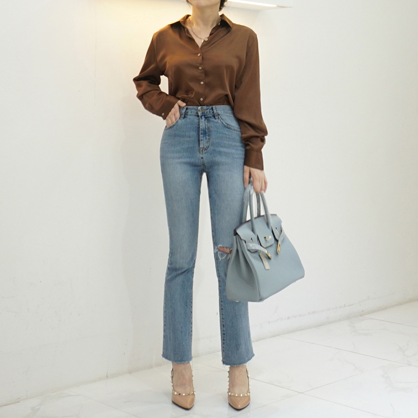 부담없이 입기 좋은 샤틴 셔츠 블라우스입니다