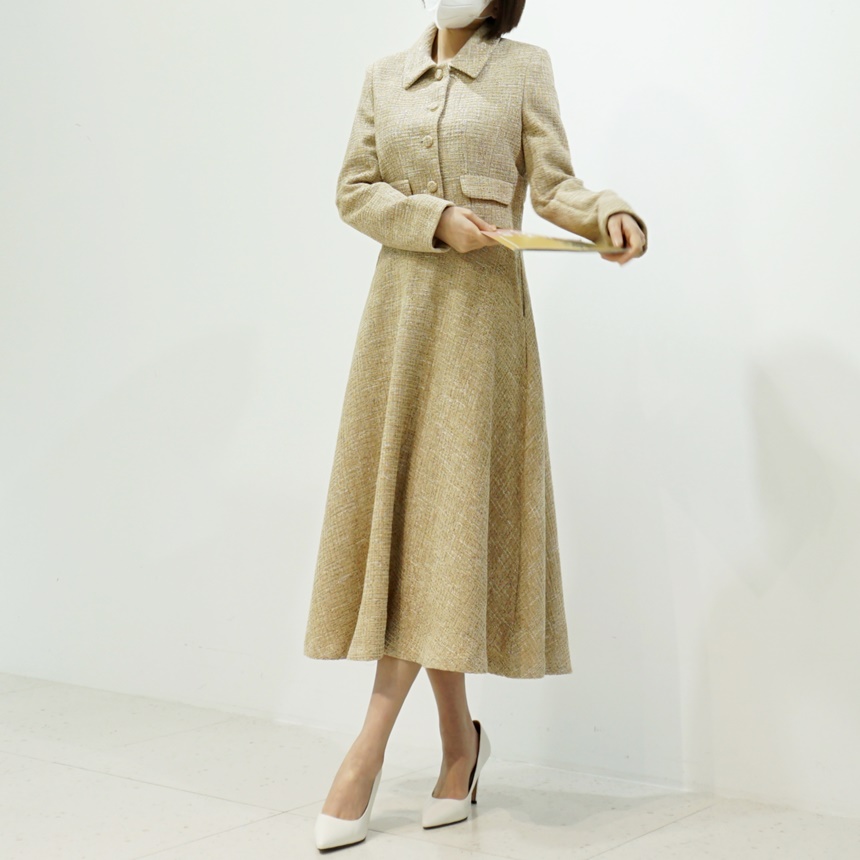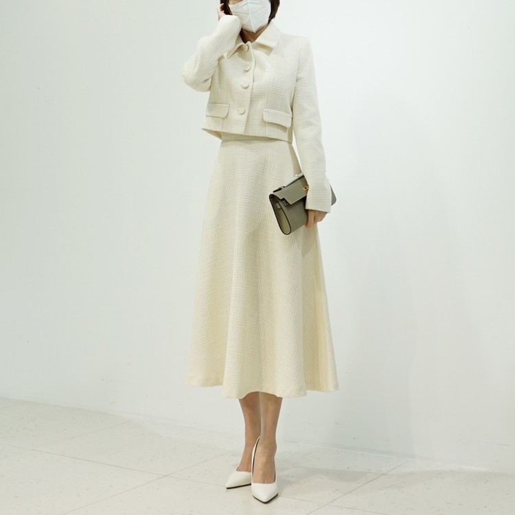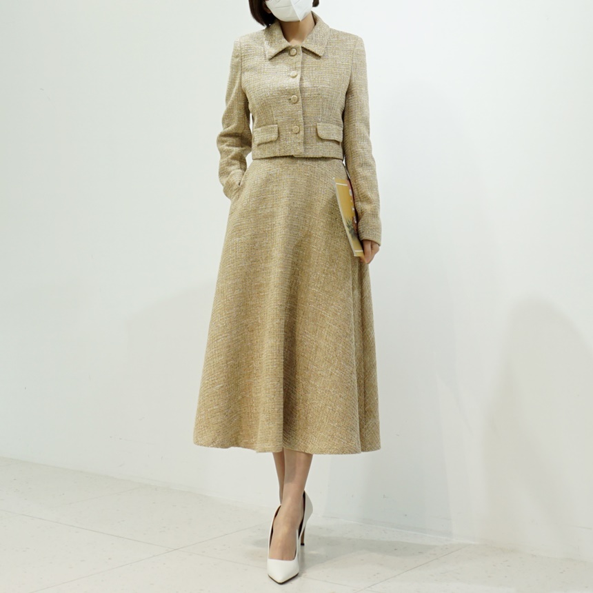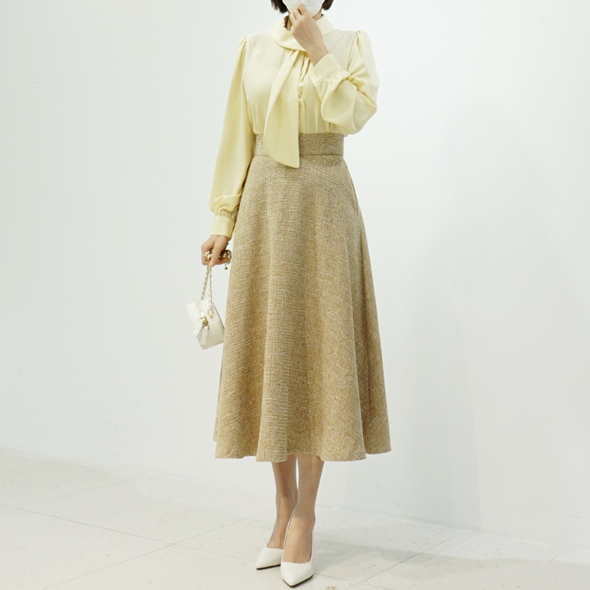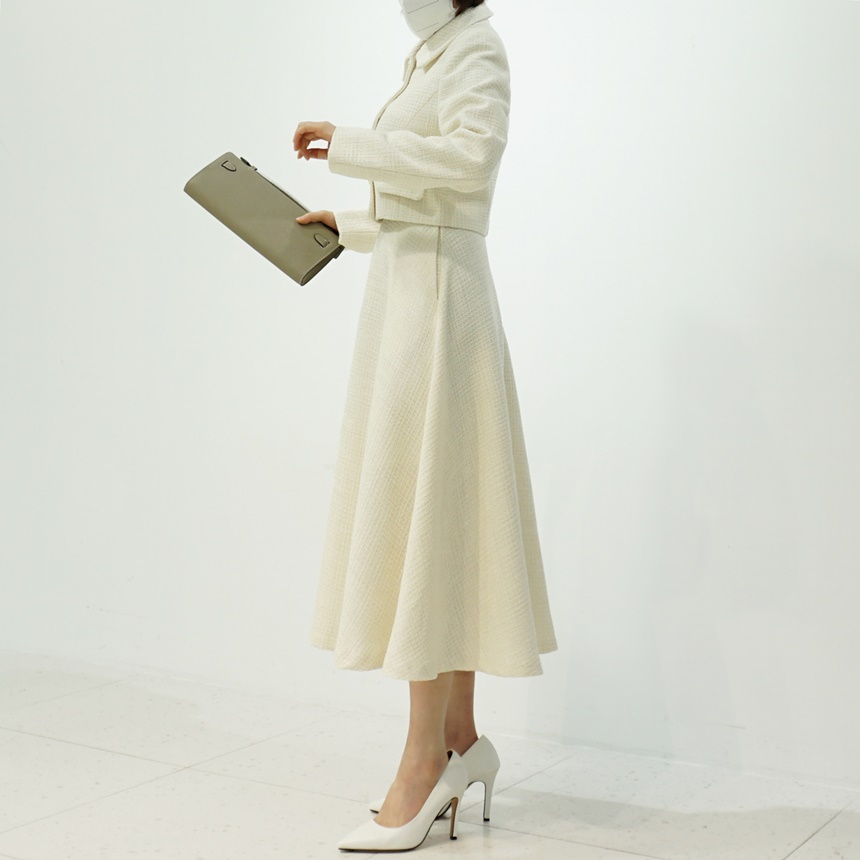 트위드 플레어 하이웨스트 스커트 하객룩
