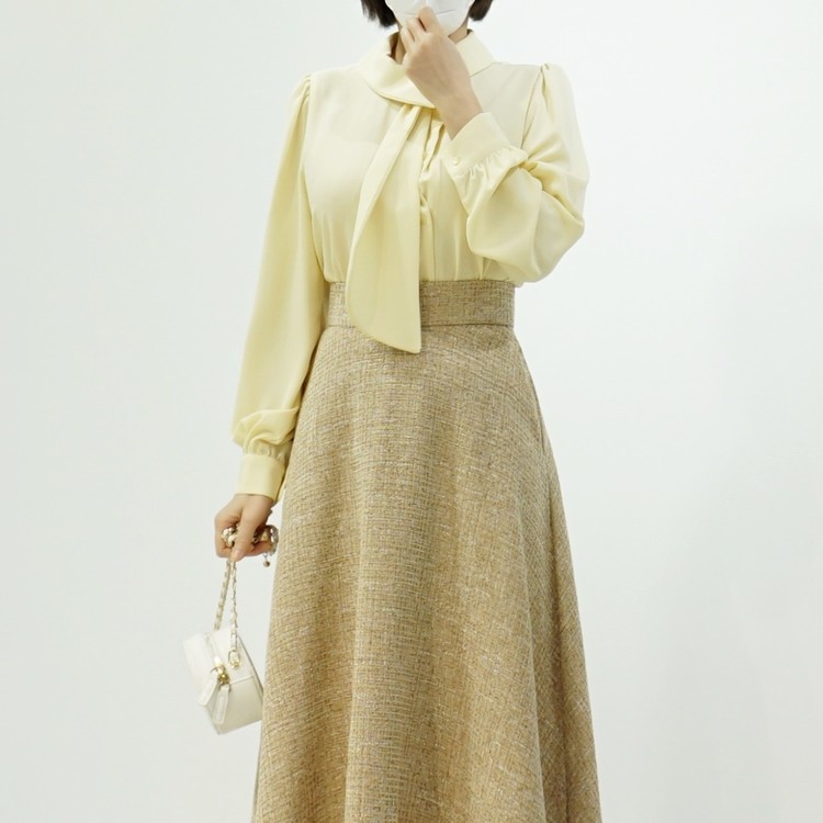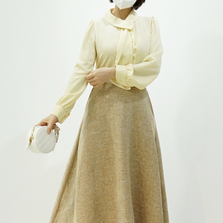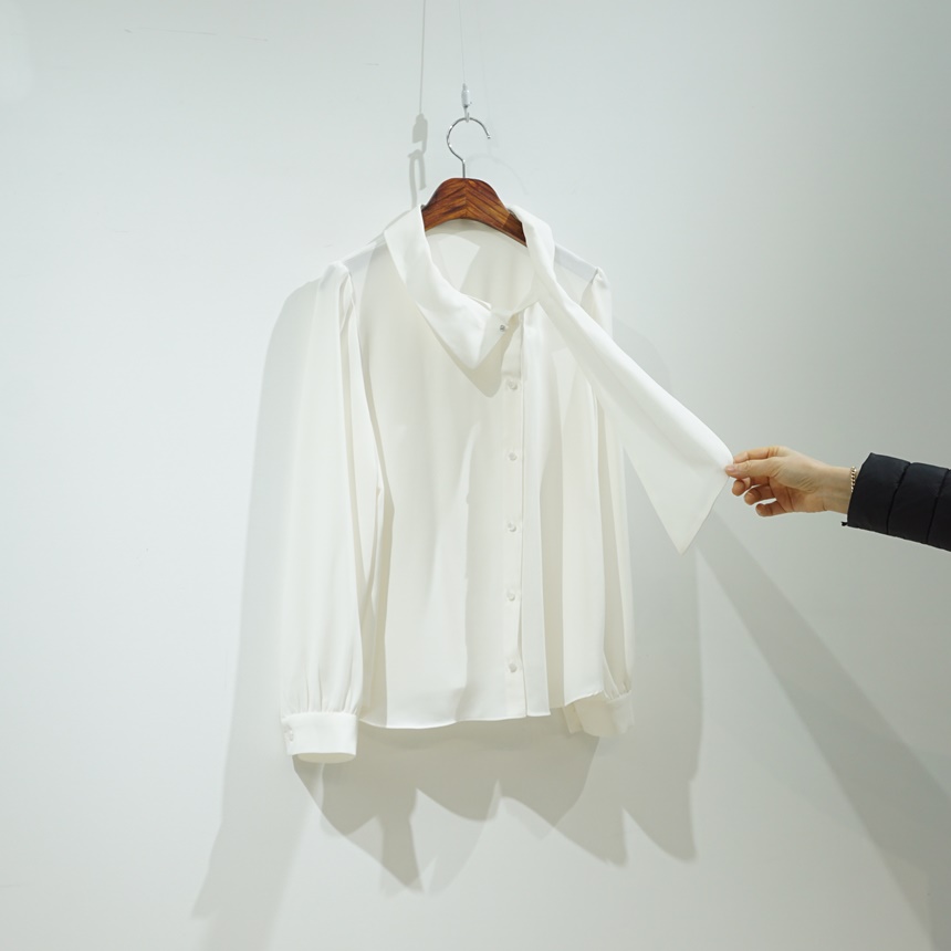 우아한 롱 스카프 쉬폰 블라우스 출근룩