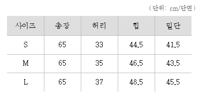 체형, 취향에 따라 사이즈가 다를 수 있습니다.
