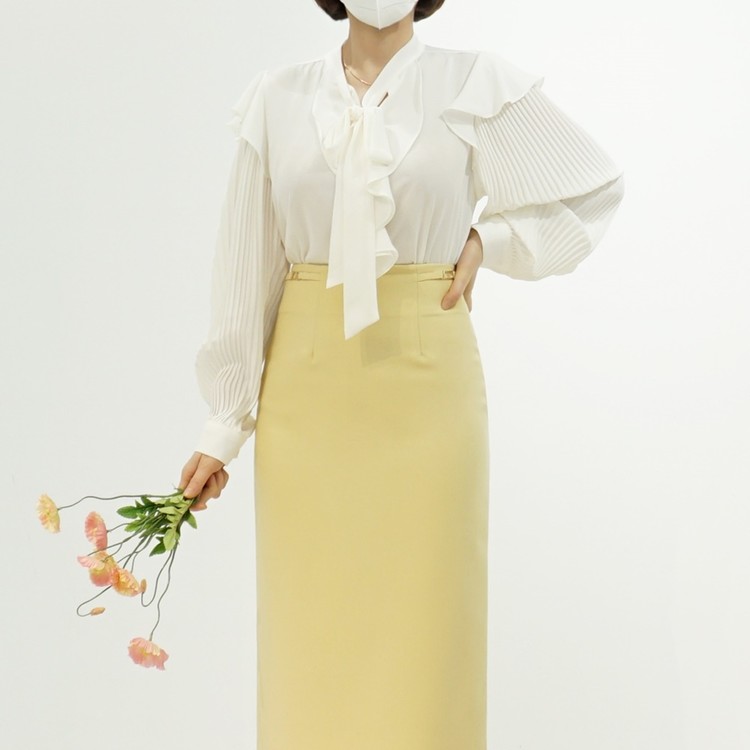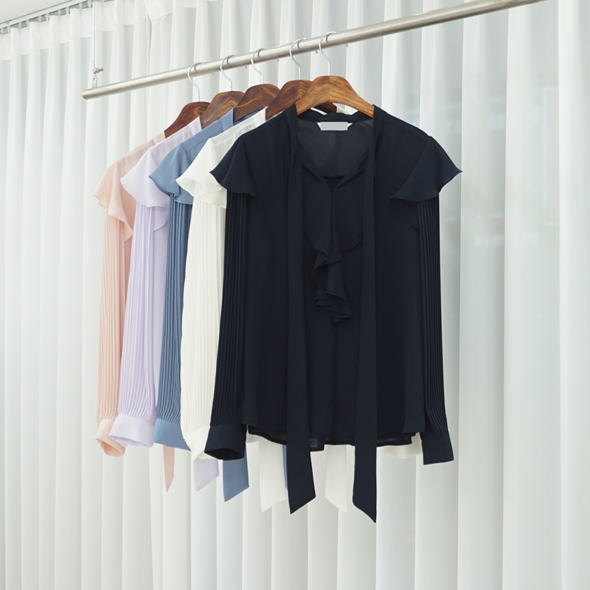 리본 롱 타이 쉬폰 블라우스 데일리 오피스룩