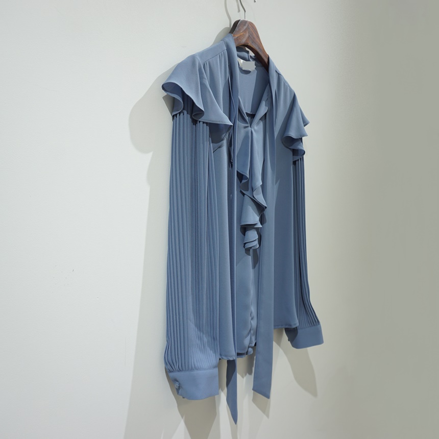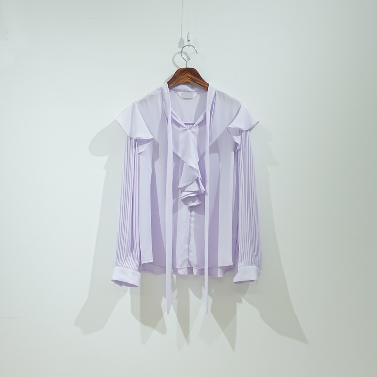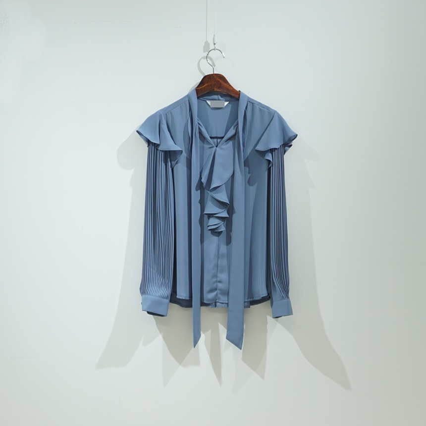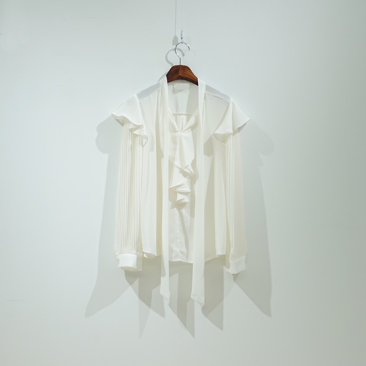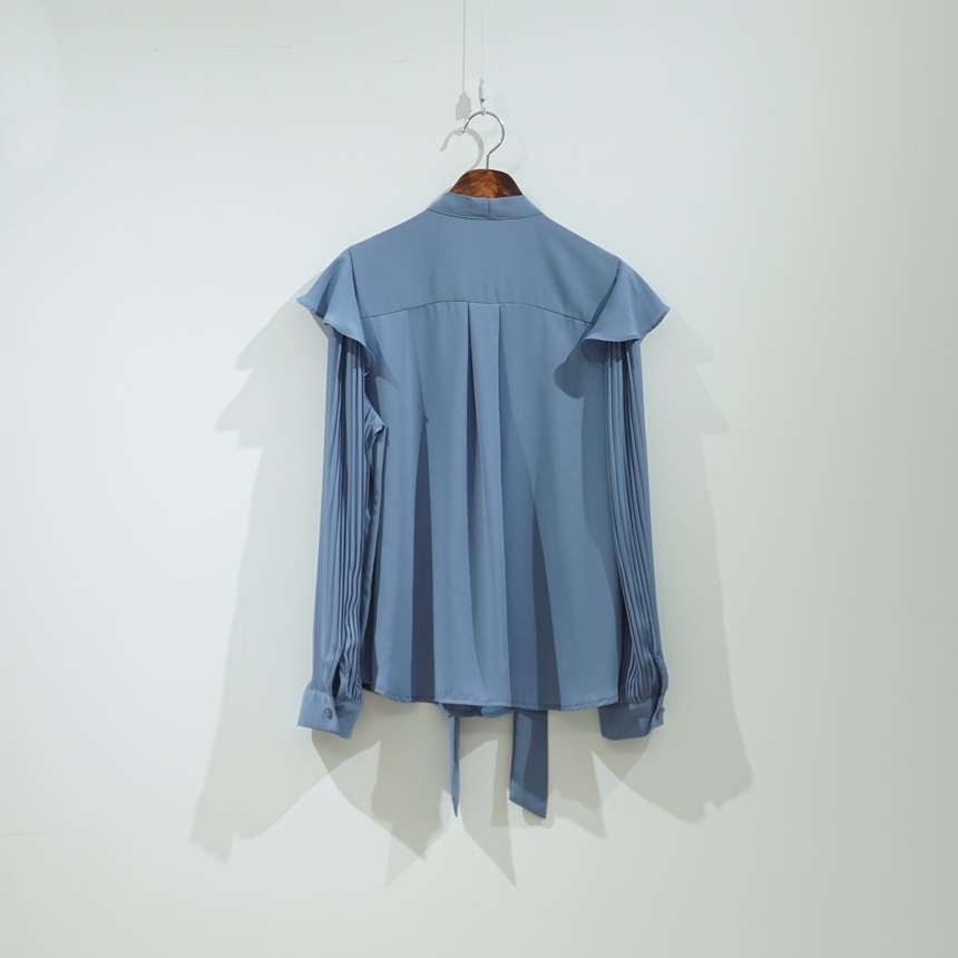 여성스러운 플리츠 주름 소매 러플 브라우스
