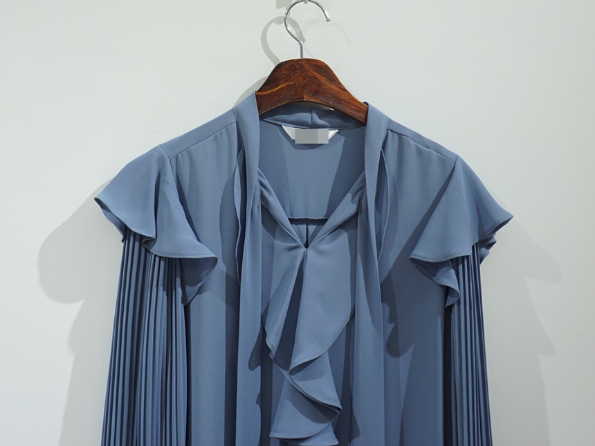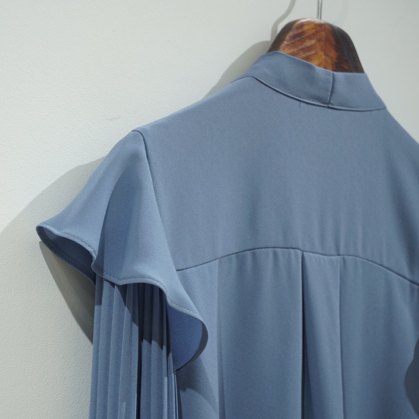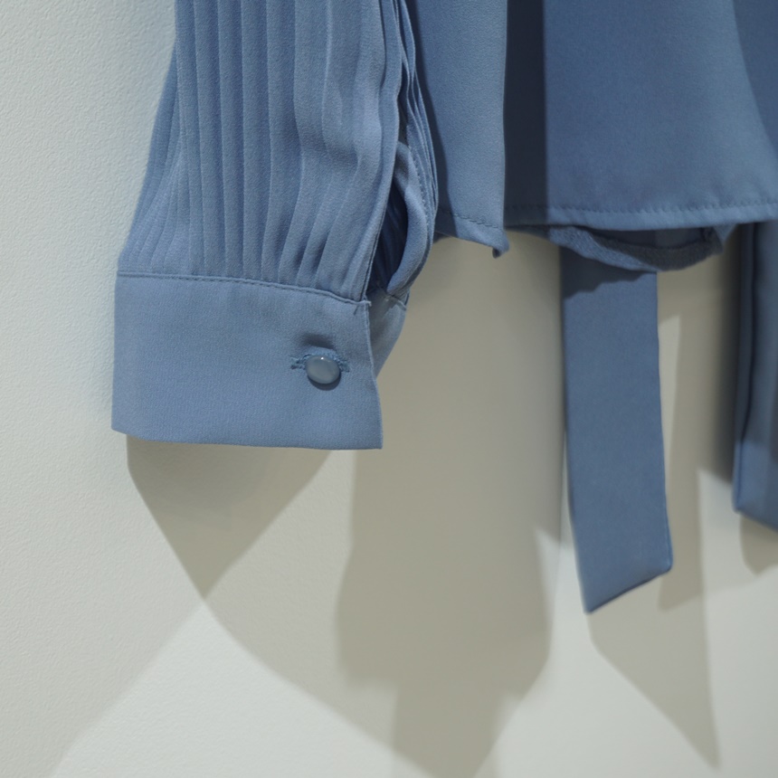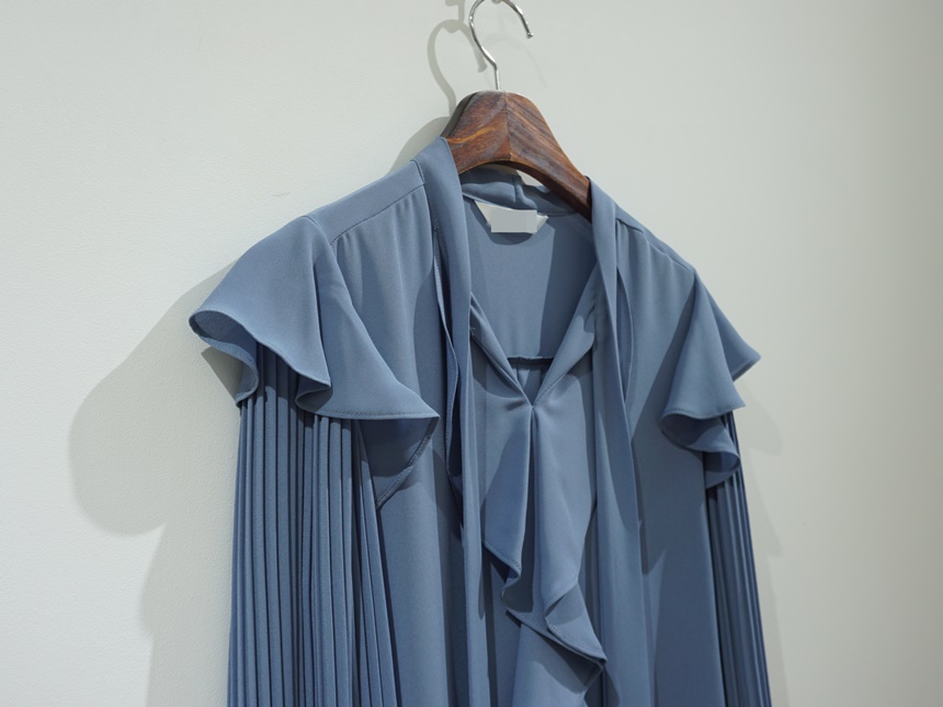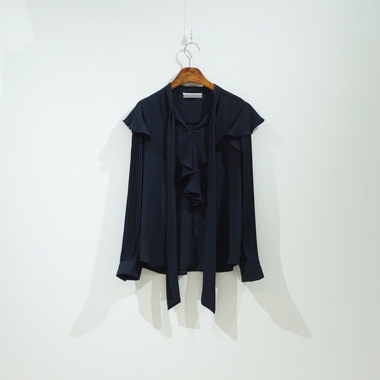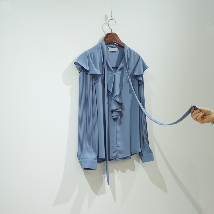 여성스러운 플리츠 주름 소매 러플 브라우스
