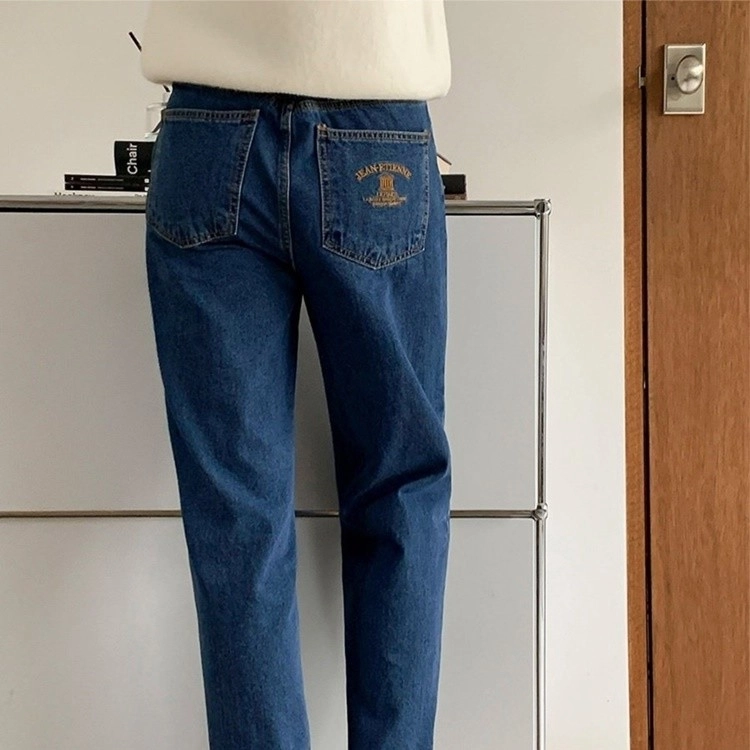 뒤포켓 자수 보이핏 청바지 일상코디