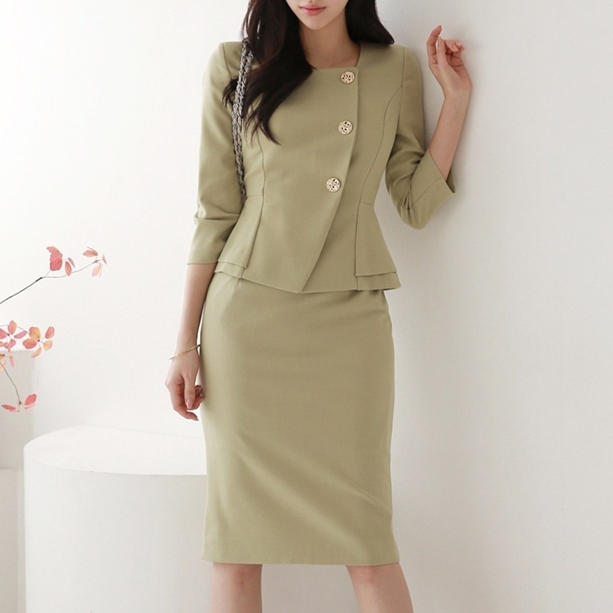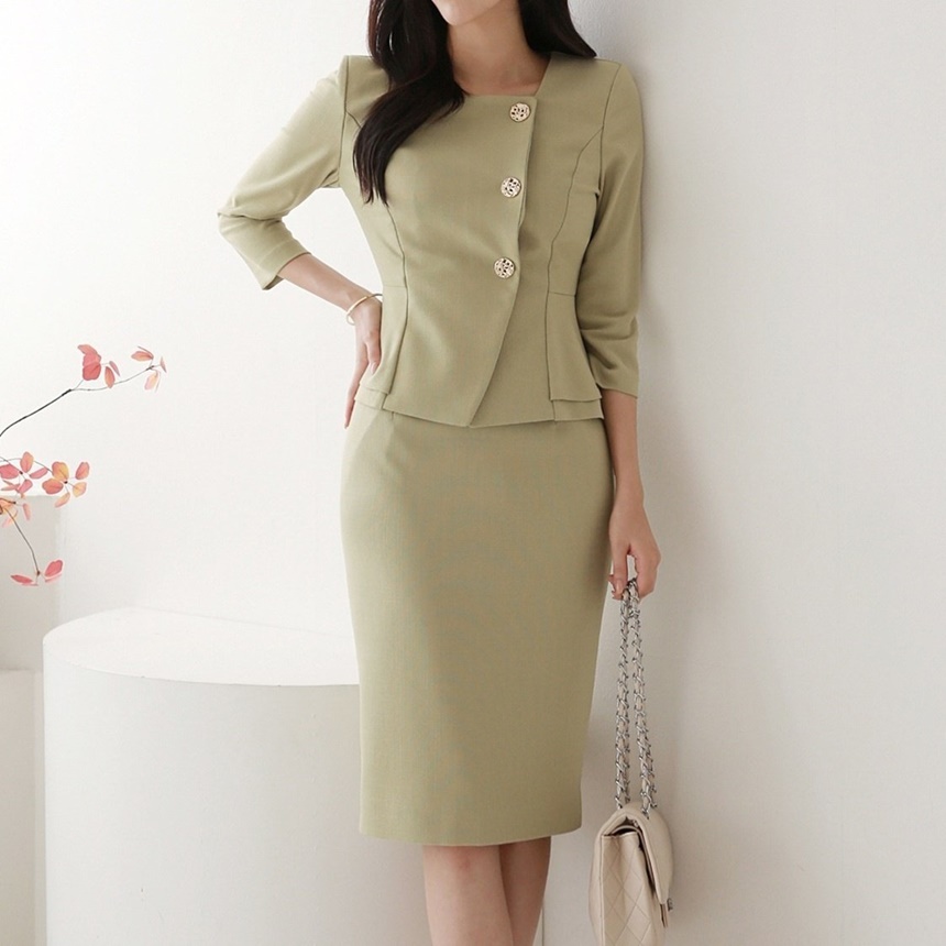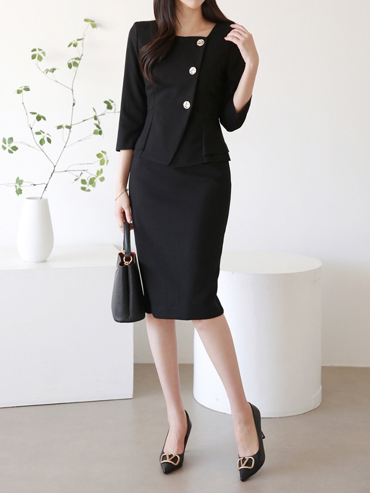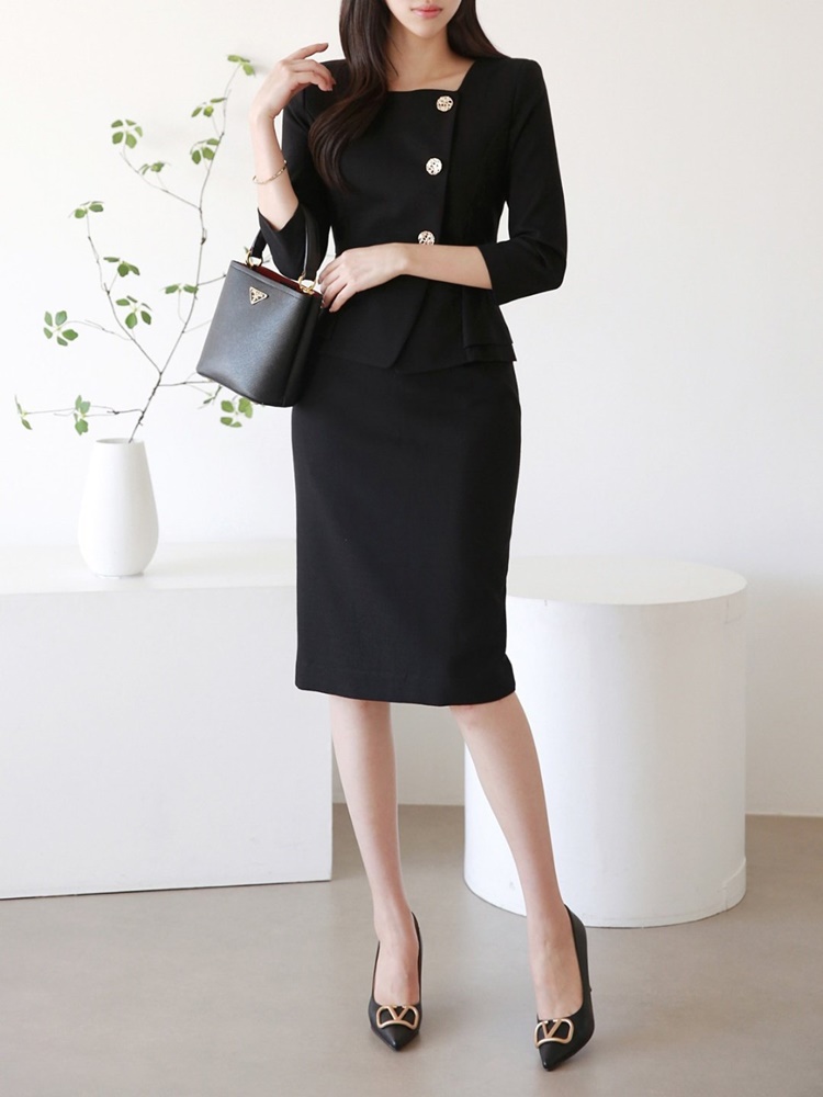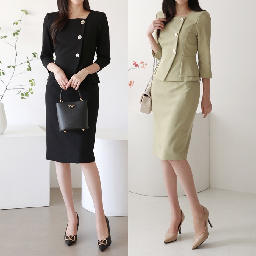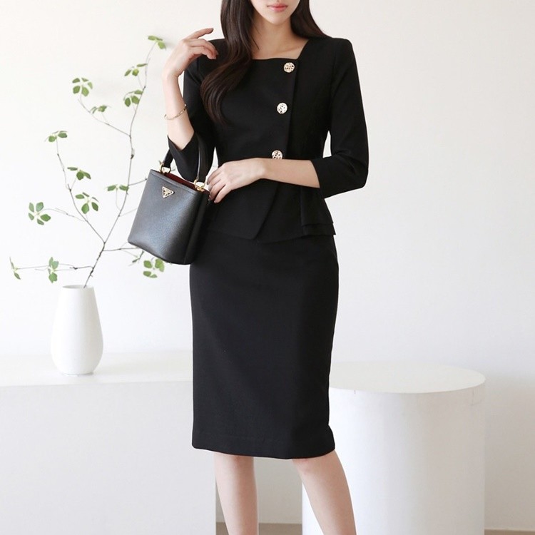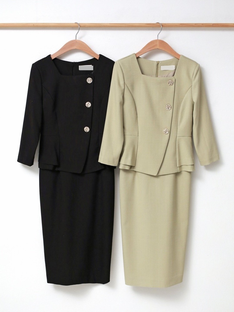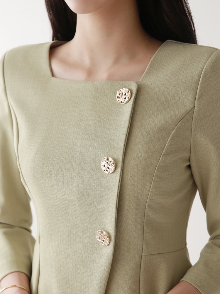 스퀘어넥 골드버튼 페플럼 7부 원피스