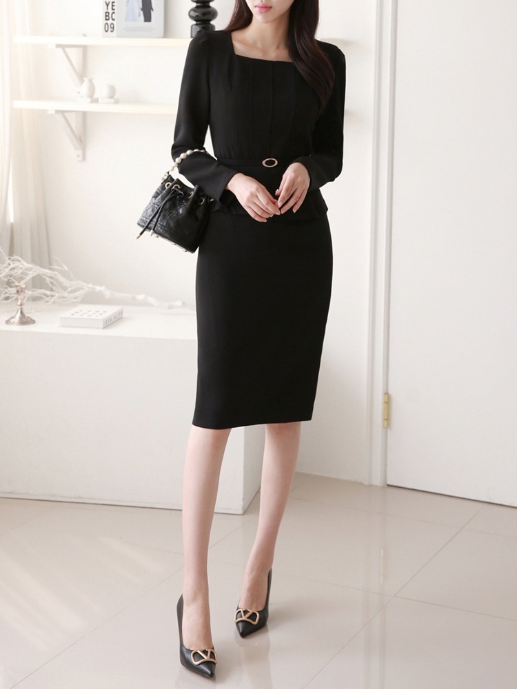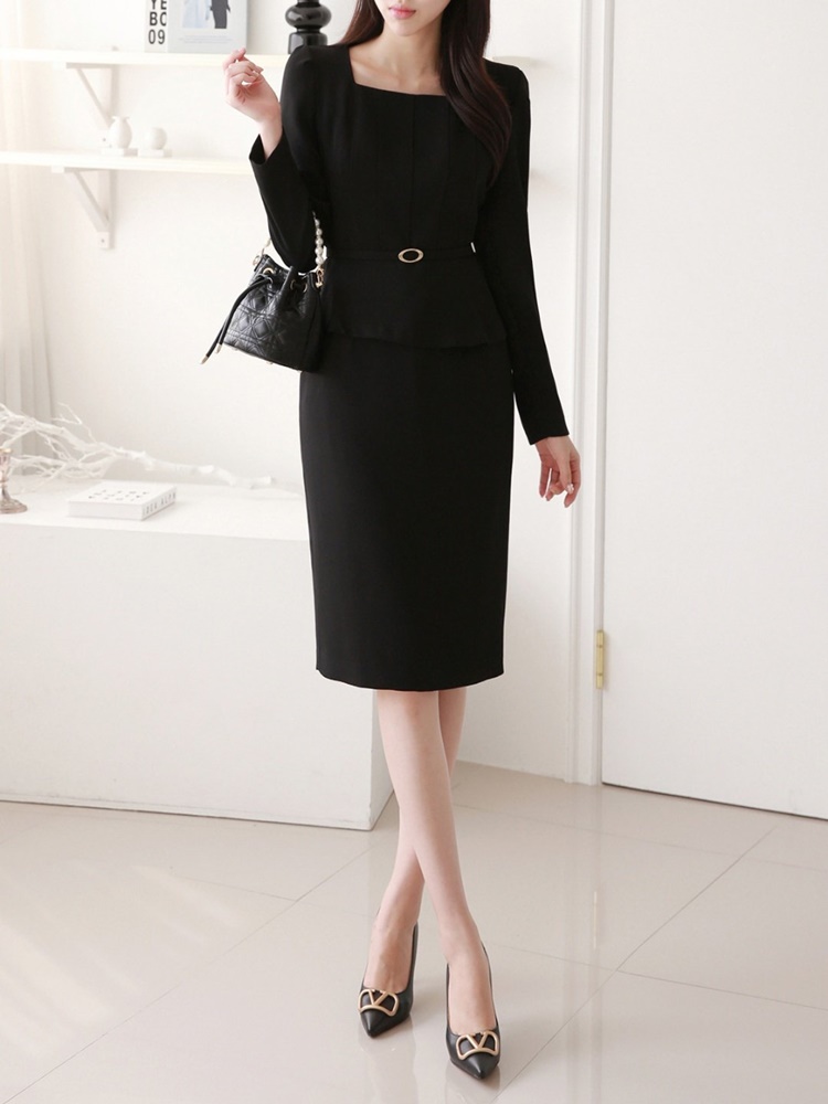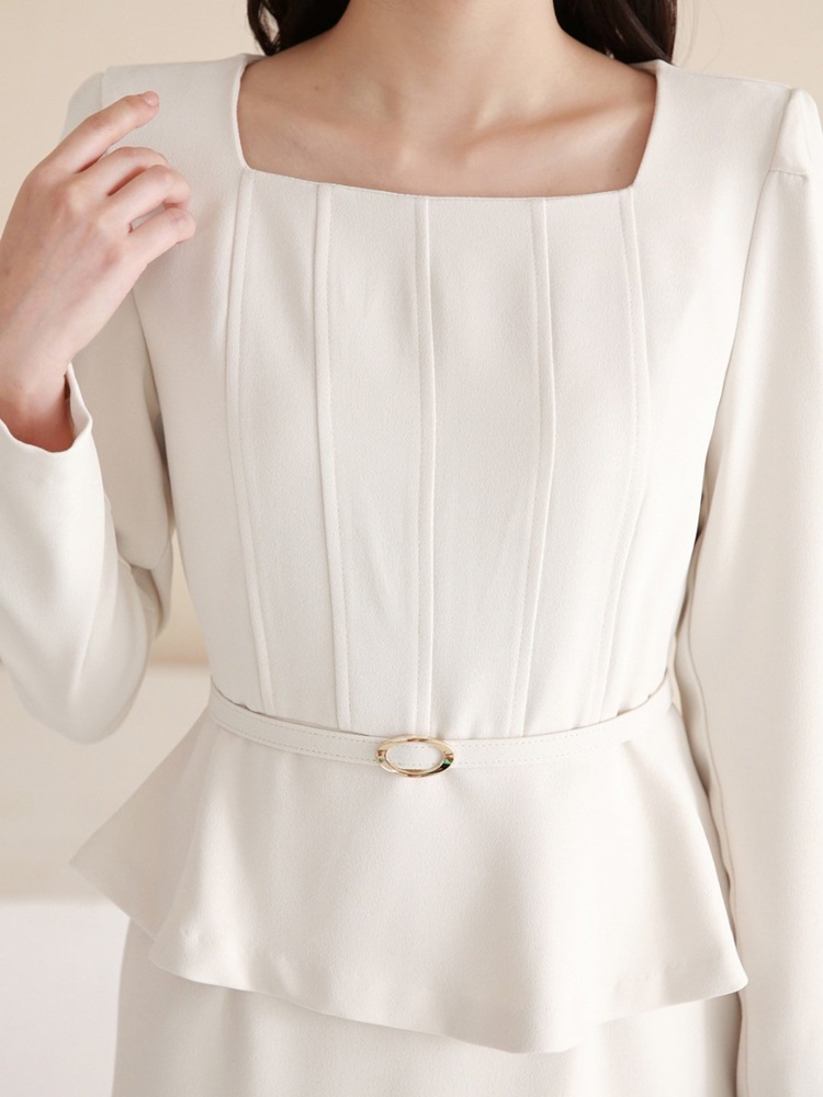 벨트set 스퀘어넥 페플럼 원피스 하객룩