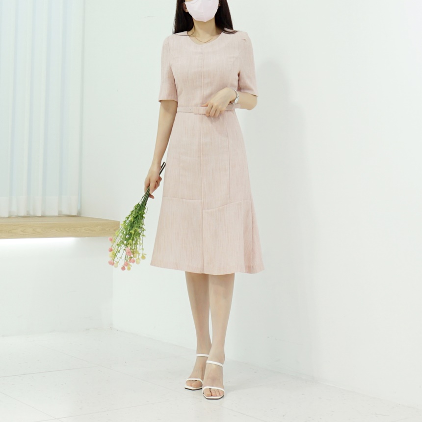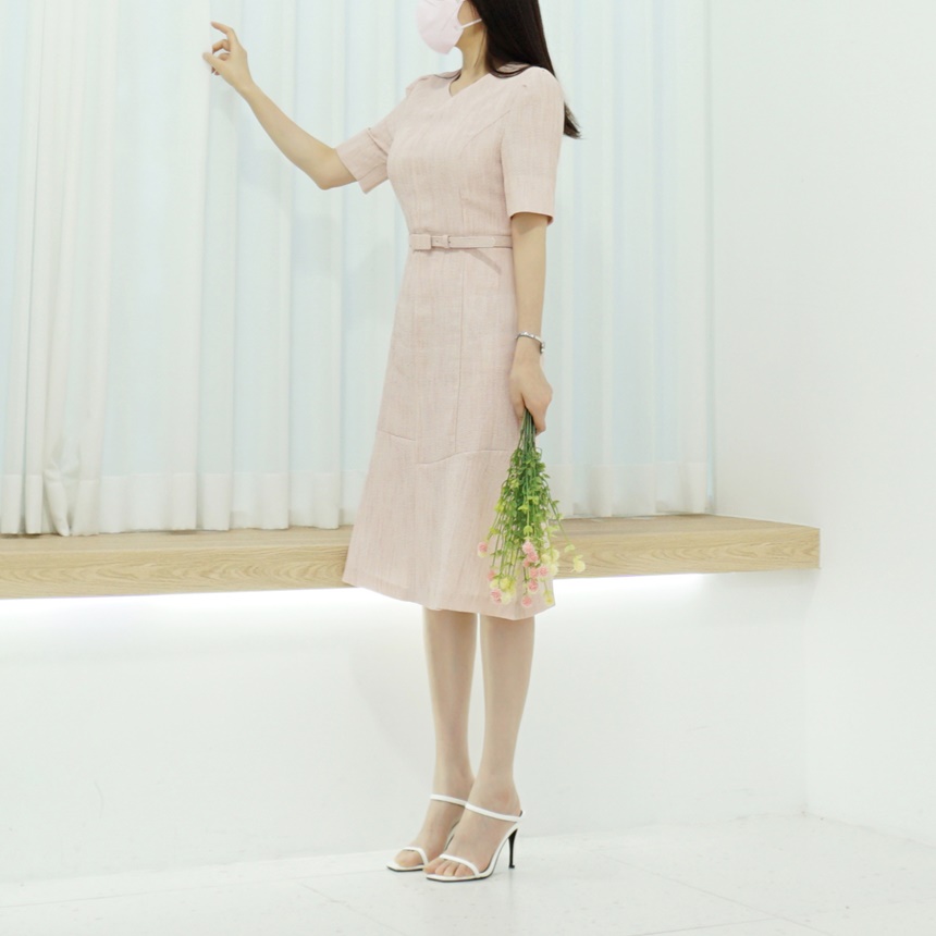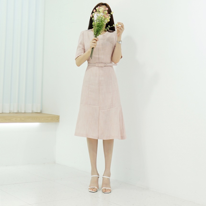 벨트set 반팔 머메이드 트위드 원피스
