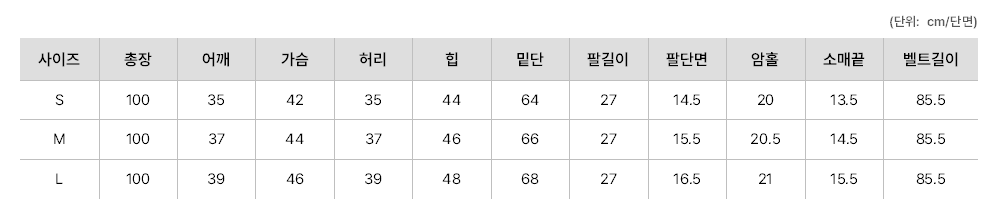 실측 사이즈 표는 단면 사이즈로