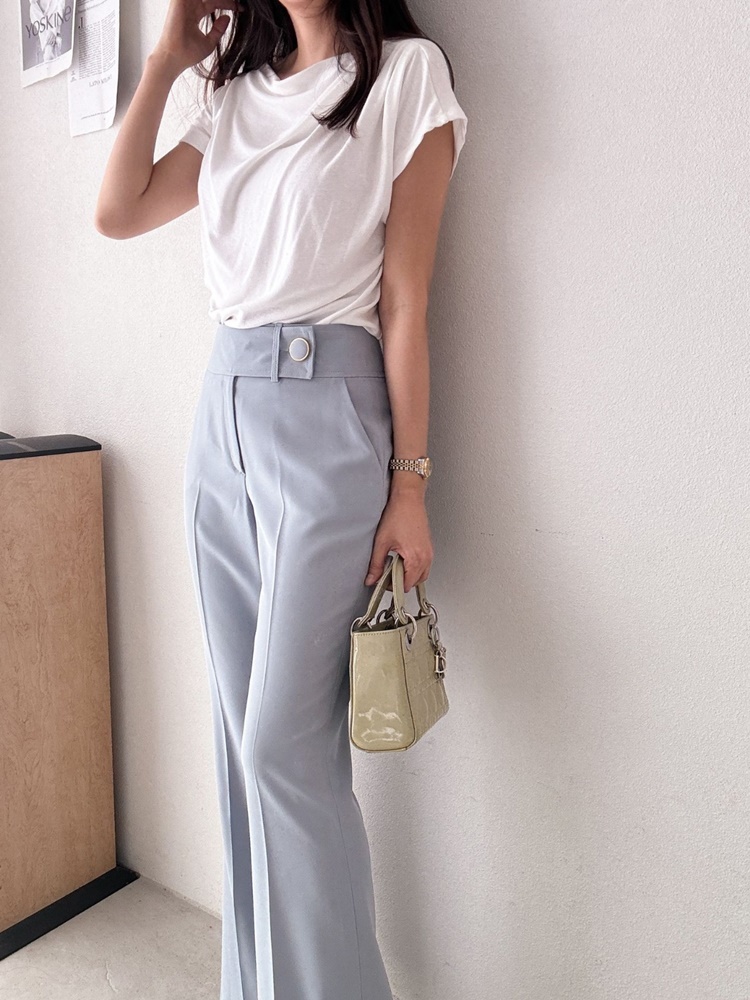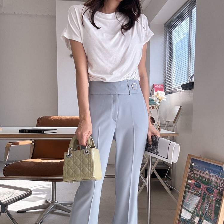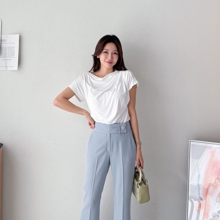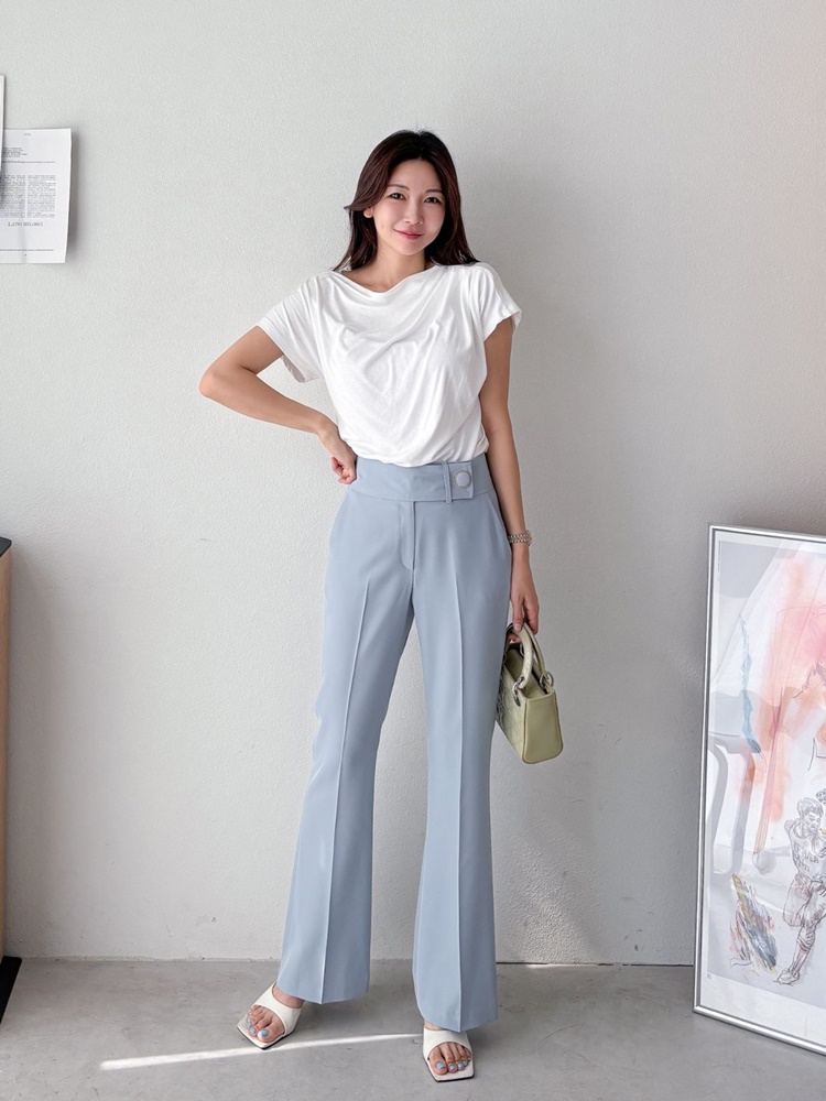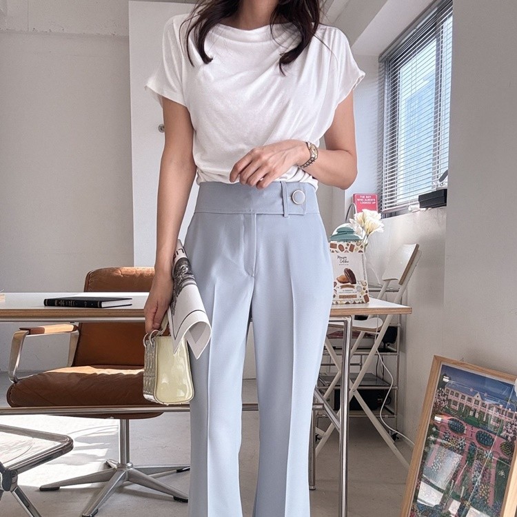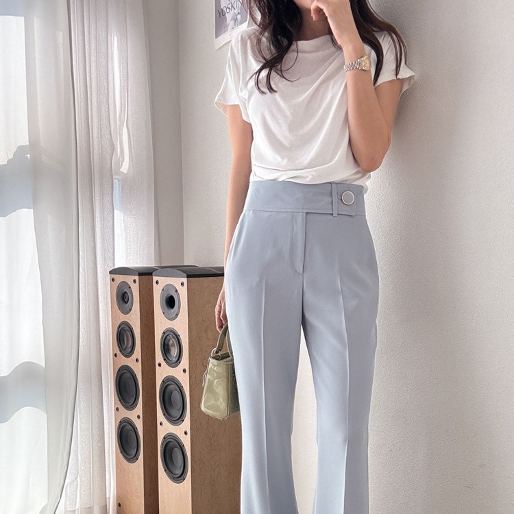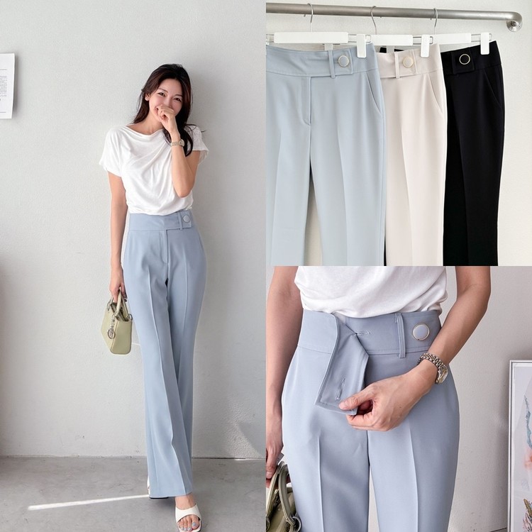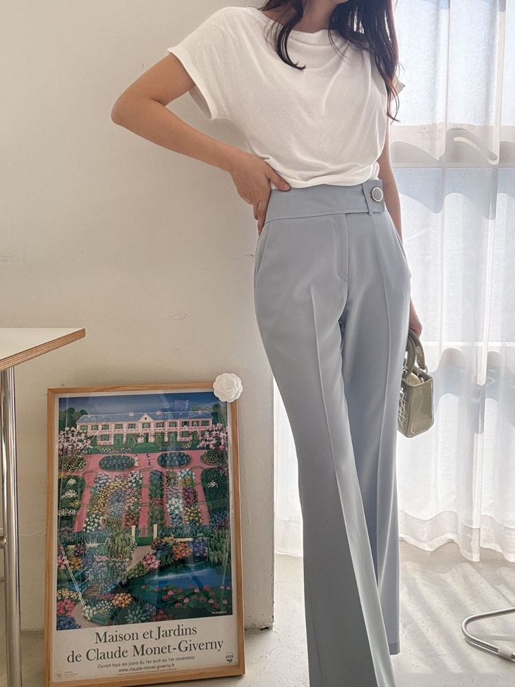 허리 비죠 골드써클버튼 하이웨스트 팬츠