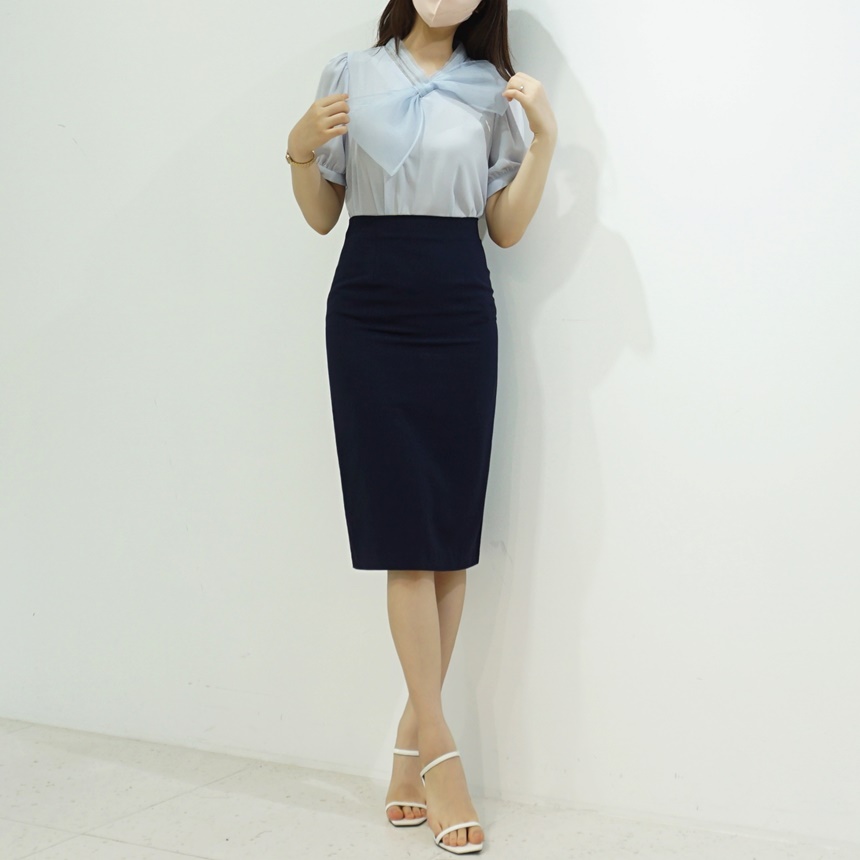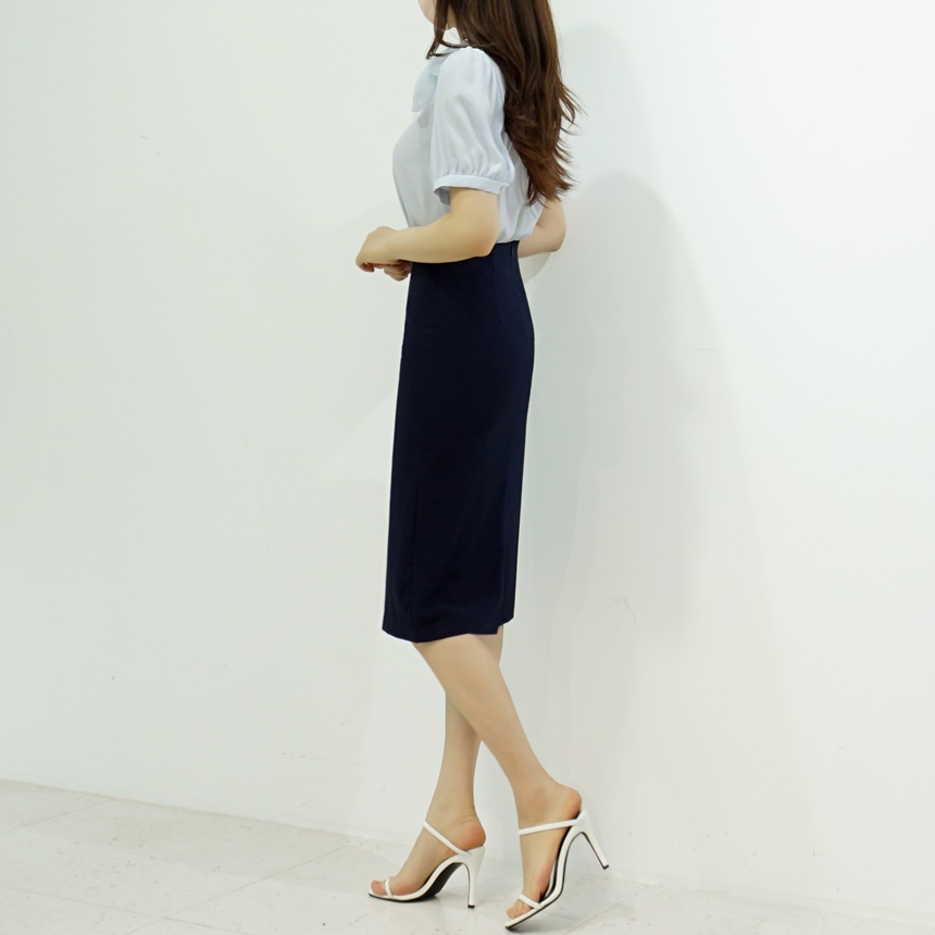 썸머 하이웨스트 슬림 스판 H라인 미디 스커트